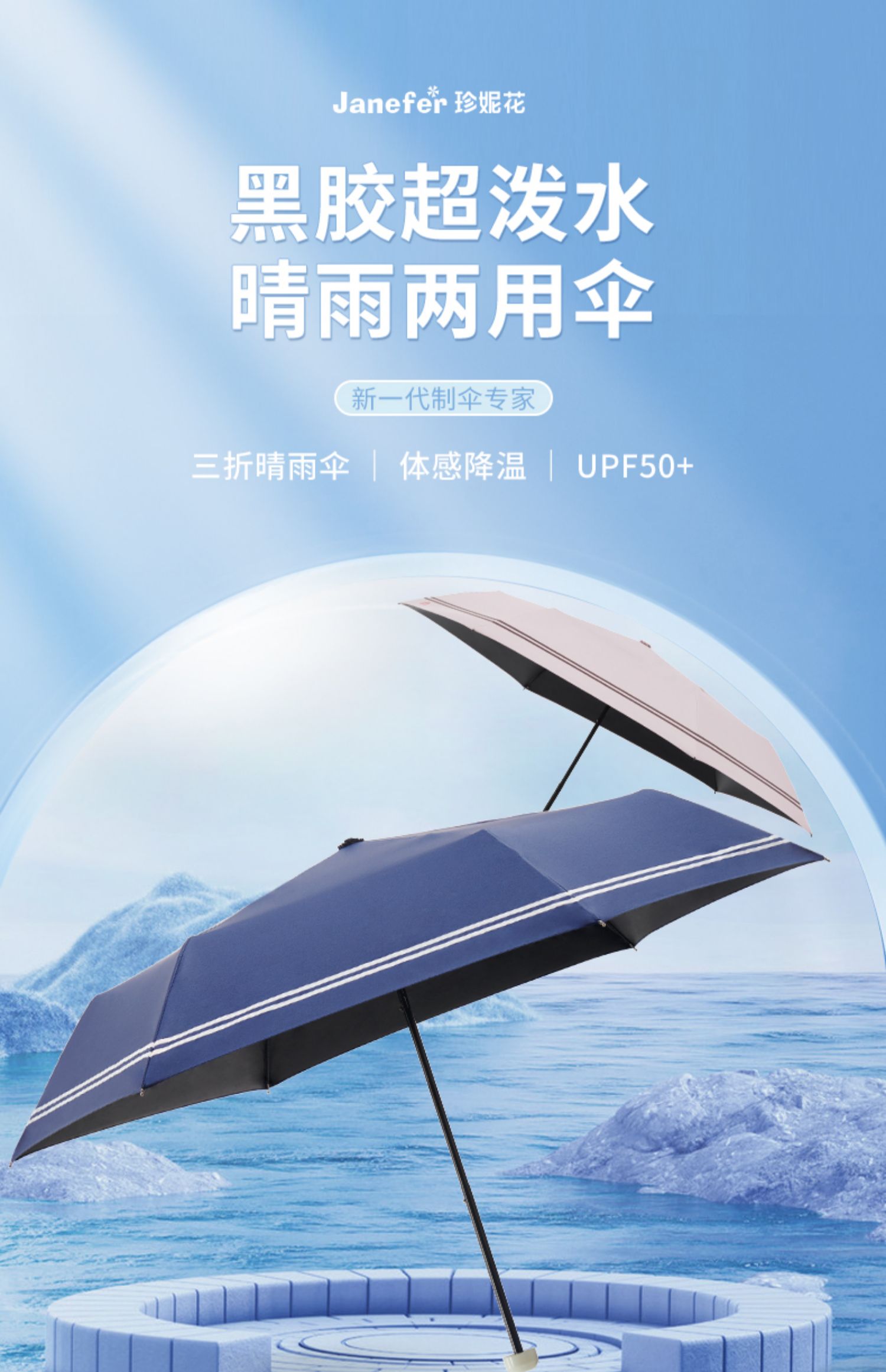 珍妮花黑胶超泼水晴雨两用伞