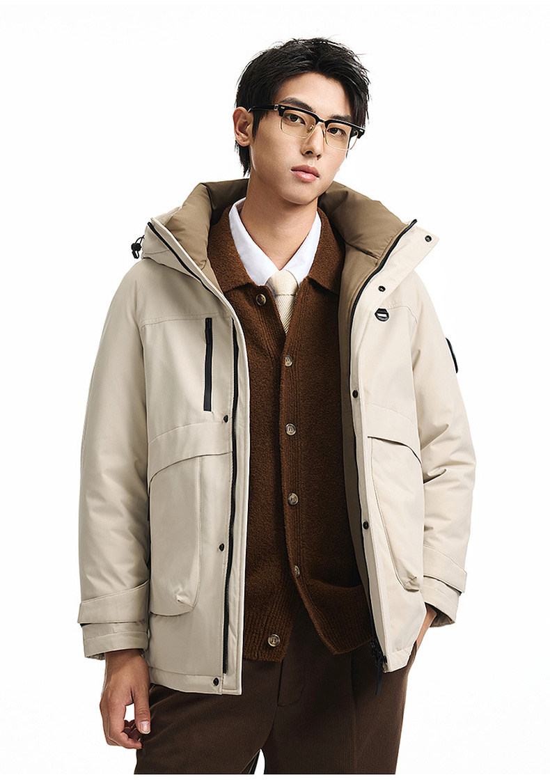 GXG男装【90%鸭绒】冬季工装大口袋户外保暖连帽男式羽绒服K&C