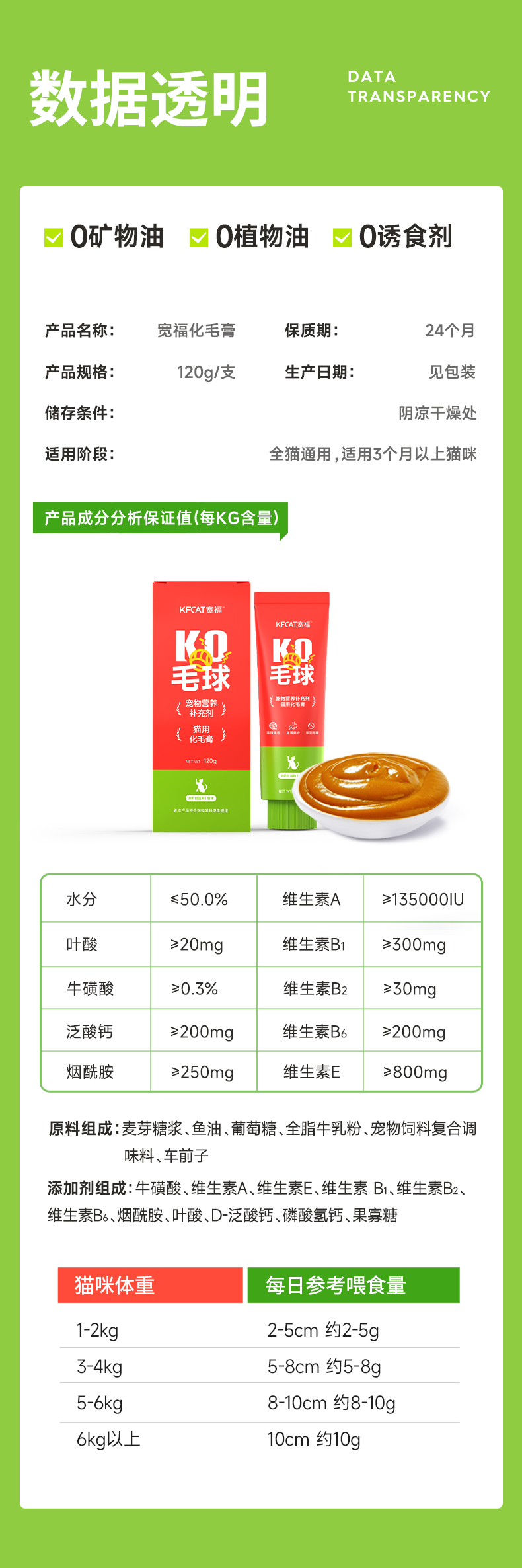 【化毛膏】宽福 猫咪化毛膏 植物配方 辅助温和排毛 多重维生素+鱼油 温润肠道 添加牛磺酸助益呵护眼睛