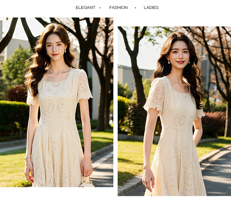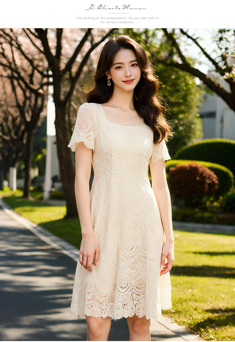 奢姿大码女装2025夏季温柔风蕾丝连衣裙胖妹妹方领法式气质裙子9952853248