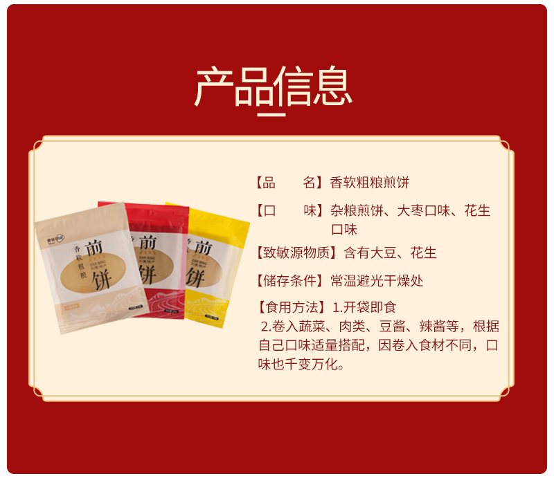 【山东沂蒙杂粮煎饼】精选粗粮制作!软糯喷香,小孩老人都爱吃!万物皆可卷,吃法多多!独立袋装,易保存!0添加,有三种口味可选!