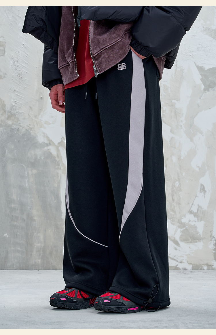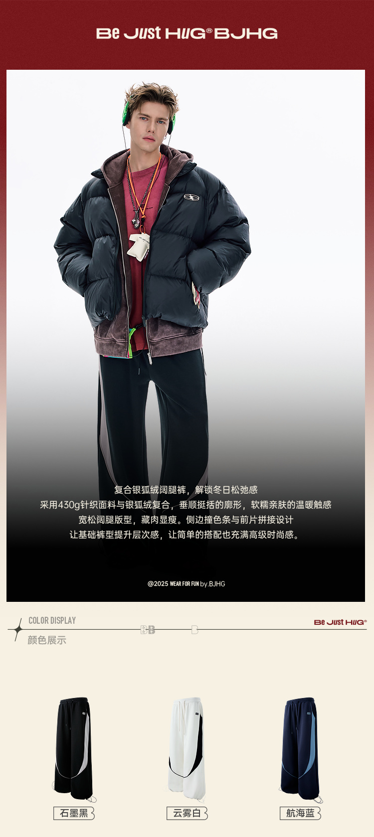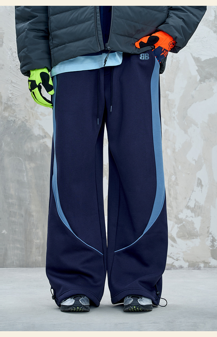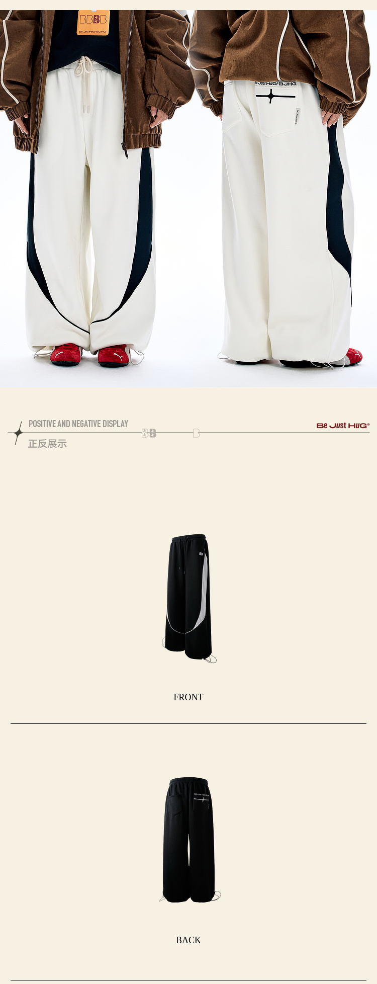 BJHG不计后果阔腿休闲裤男款秋季宽松撞色拼接设计感针织长裤女