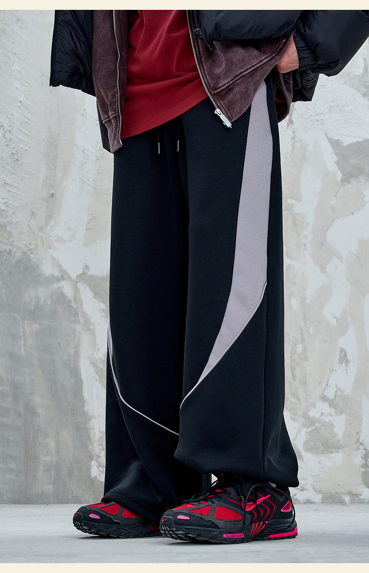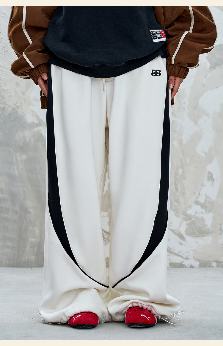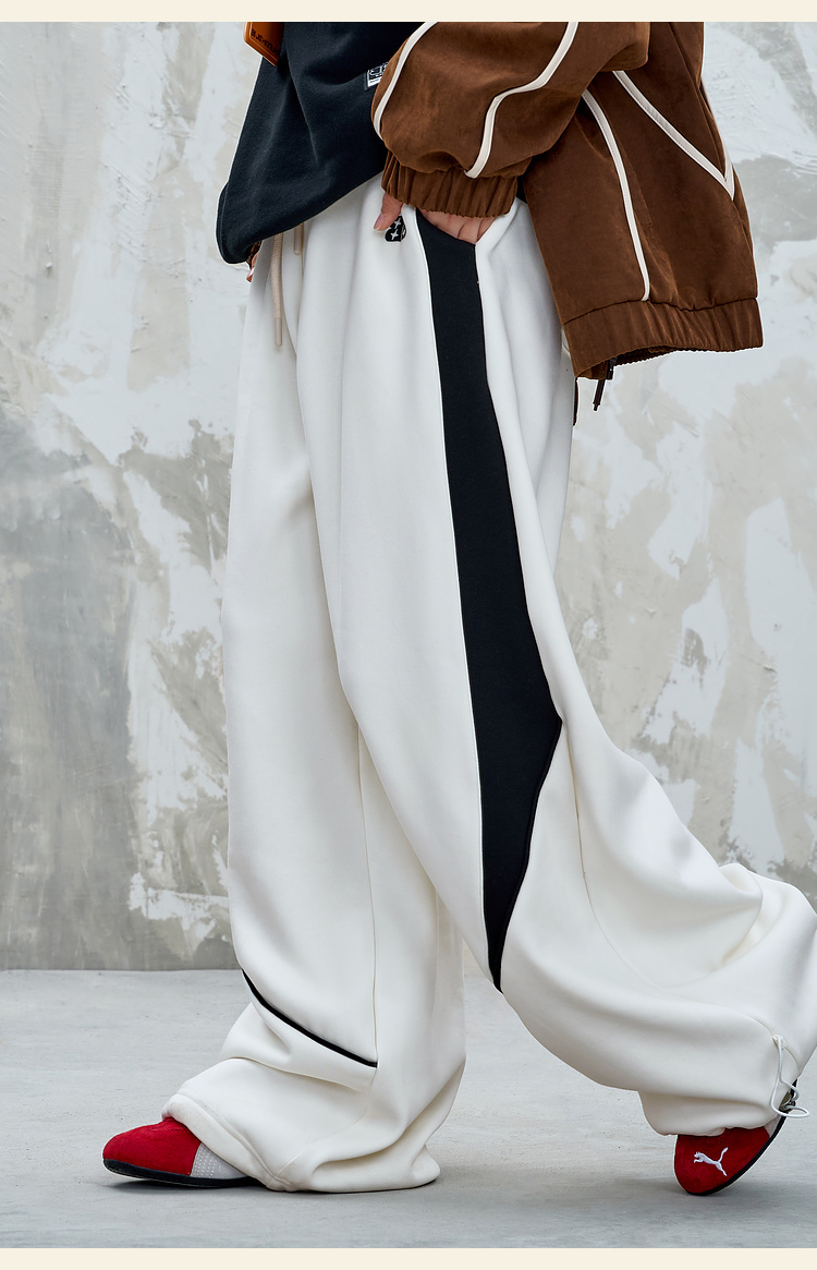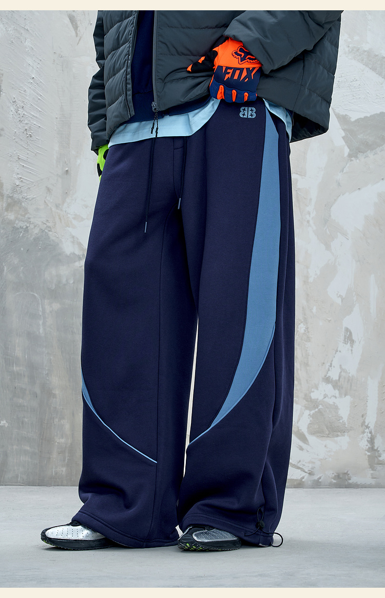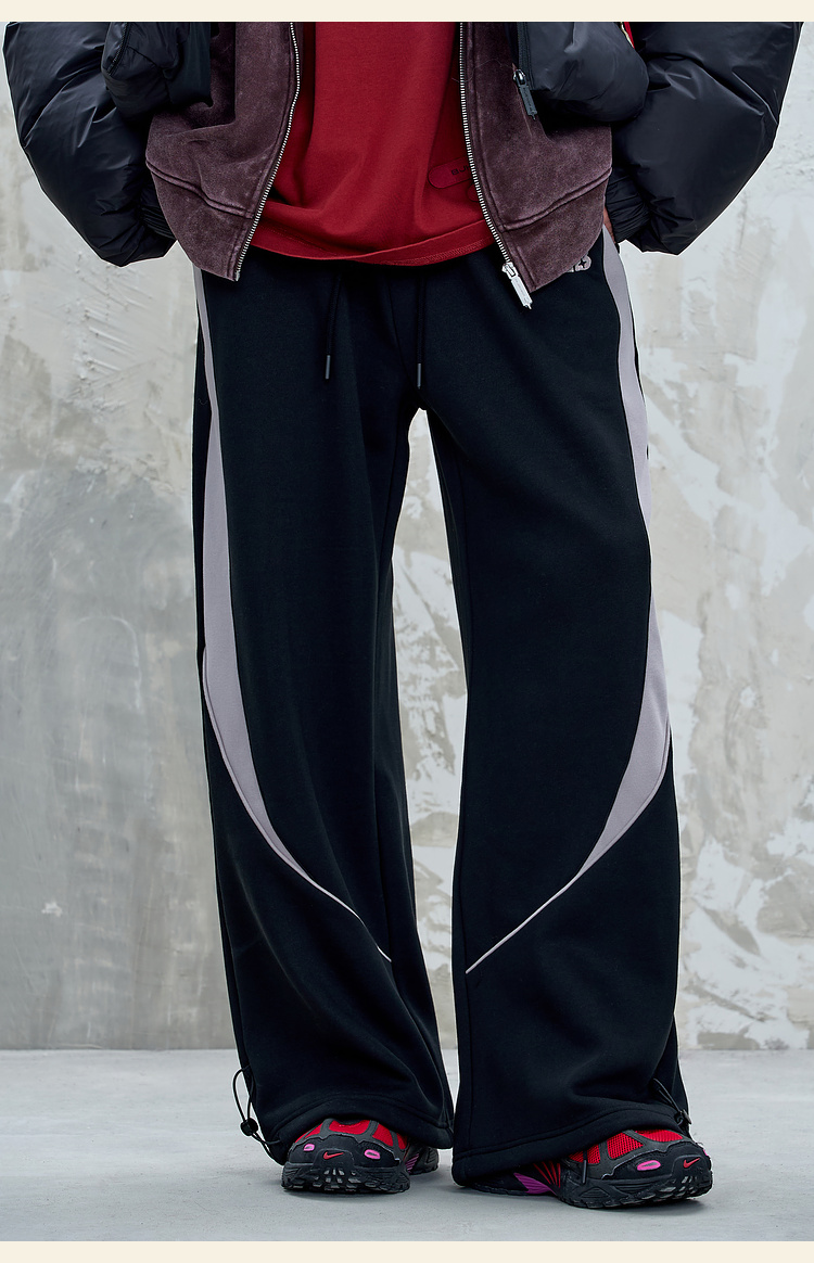 BJHG不计后果阔腿休闲裤男款秋季宽松撞色拼接设计感针织长裤女