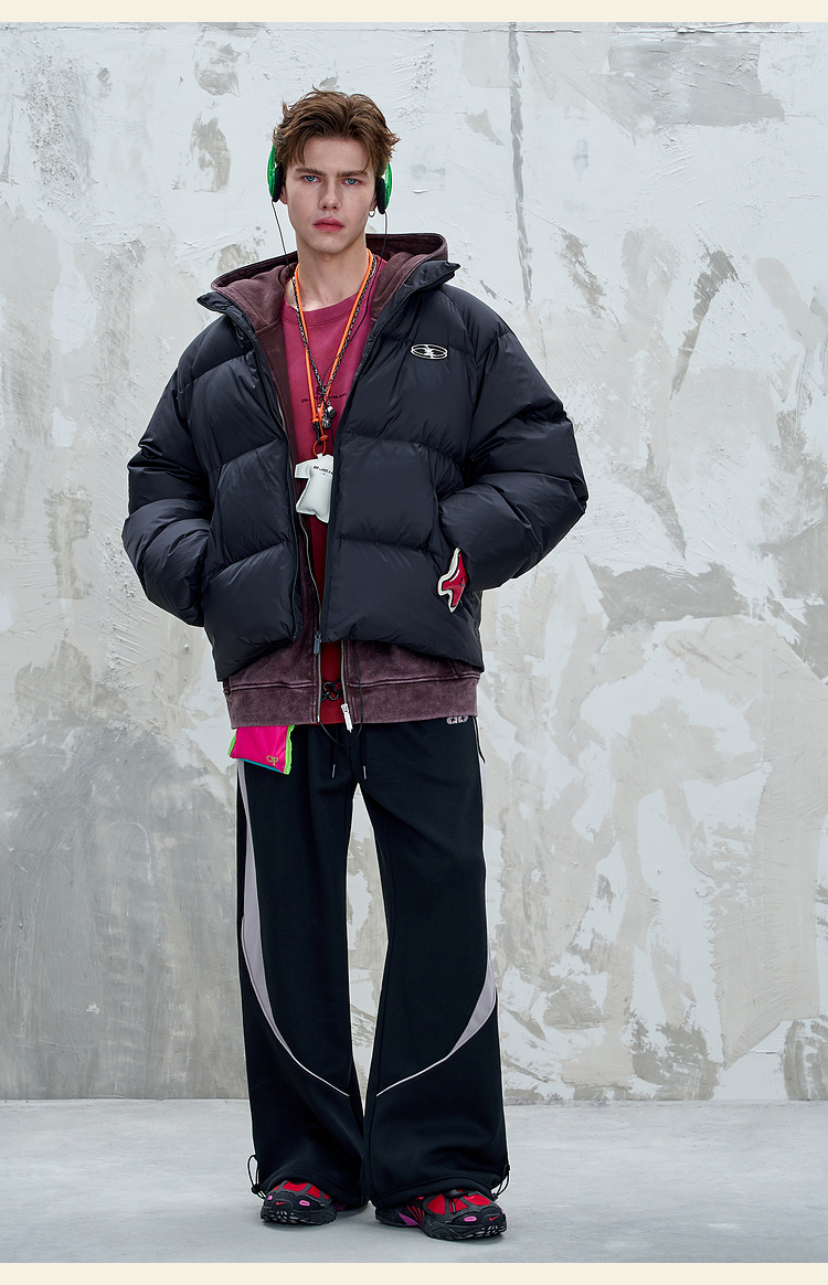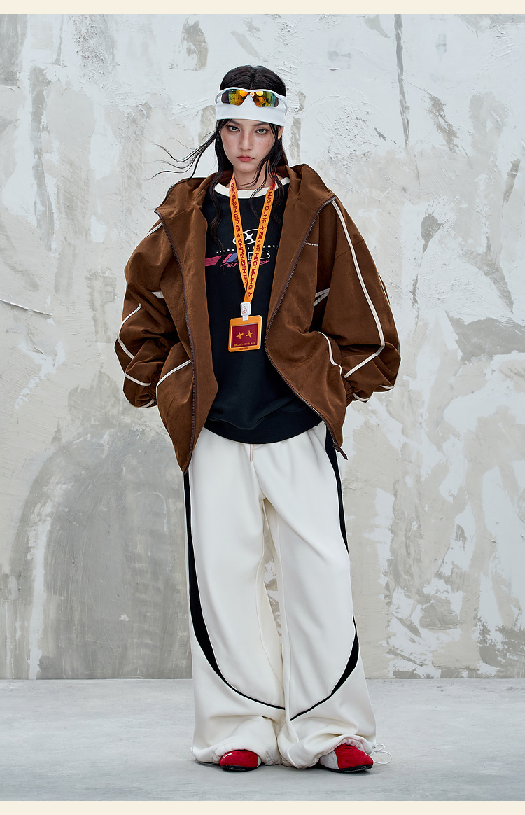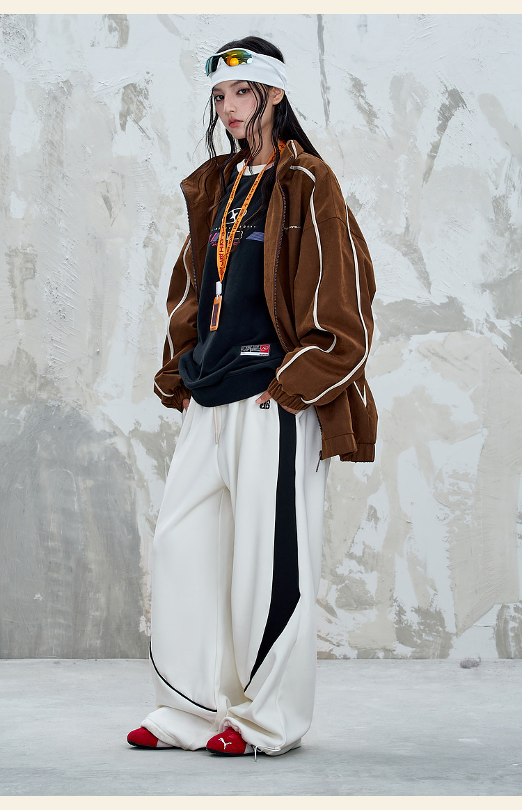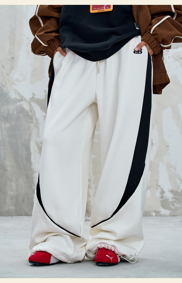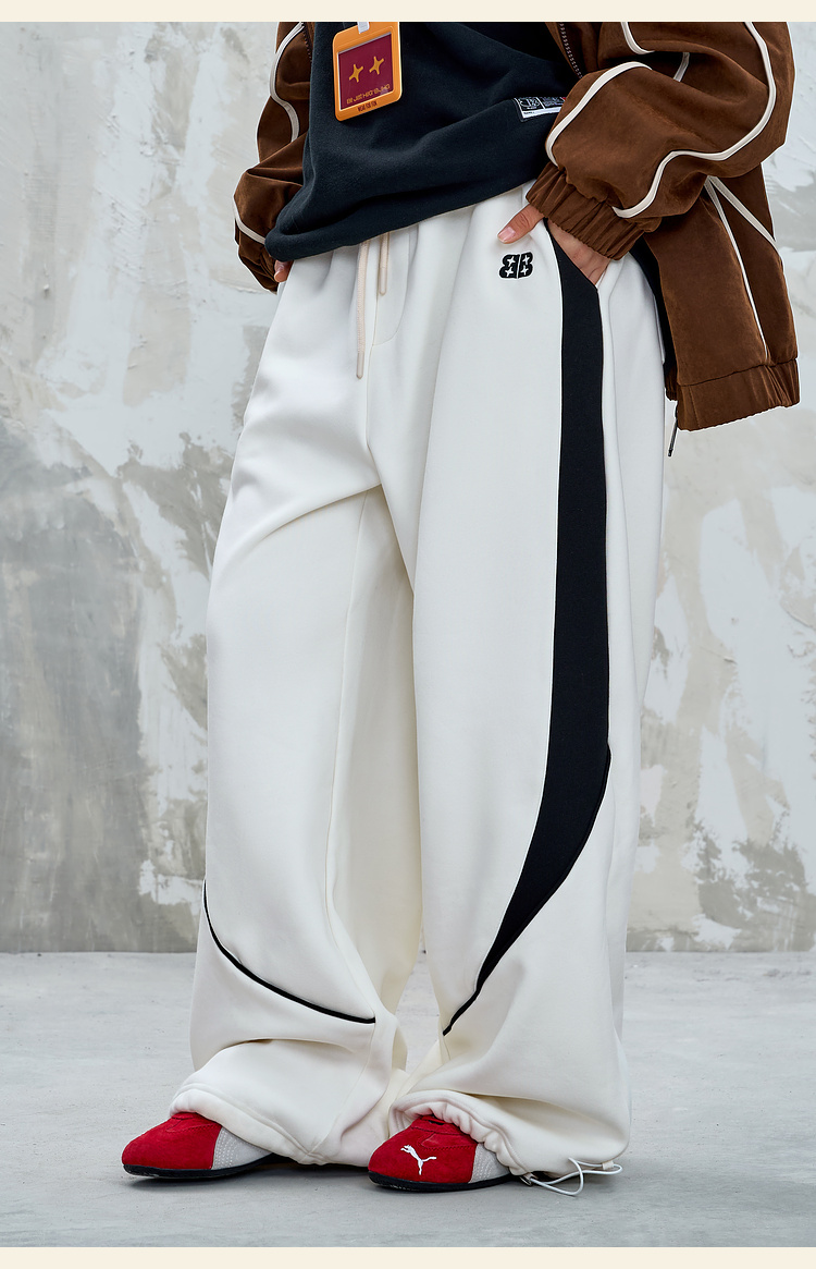 BJHG不计后果阔腿休闲裤男款秋季宽松撞色拼接设计感针织长裤女