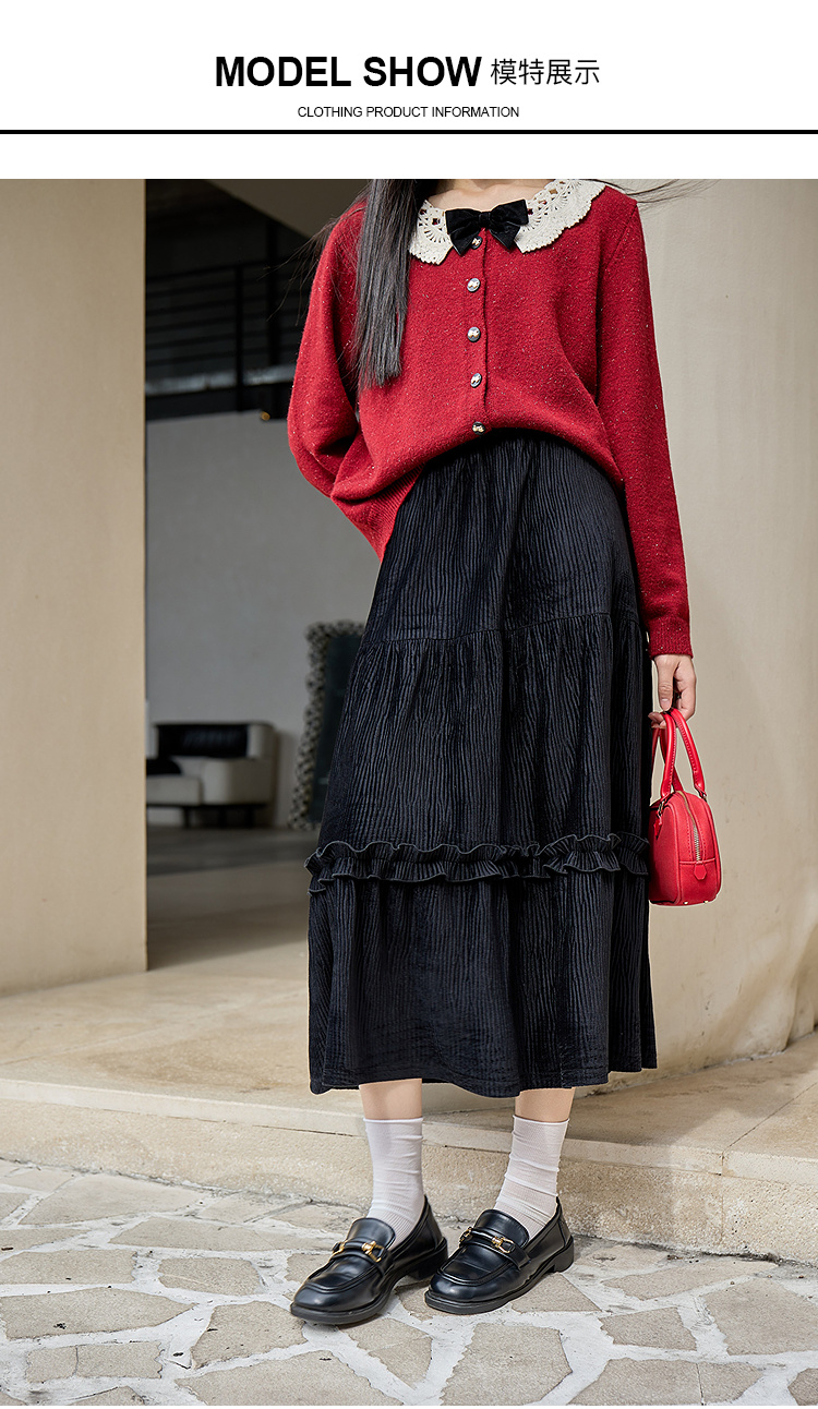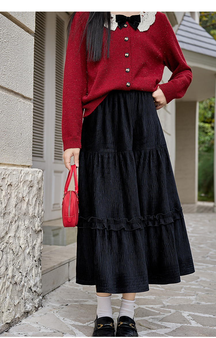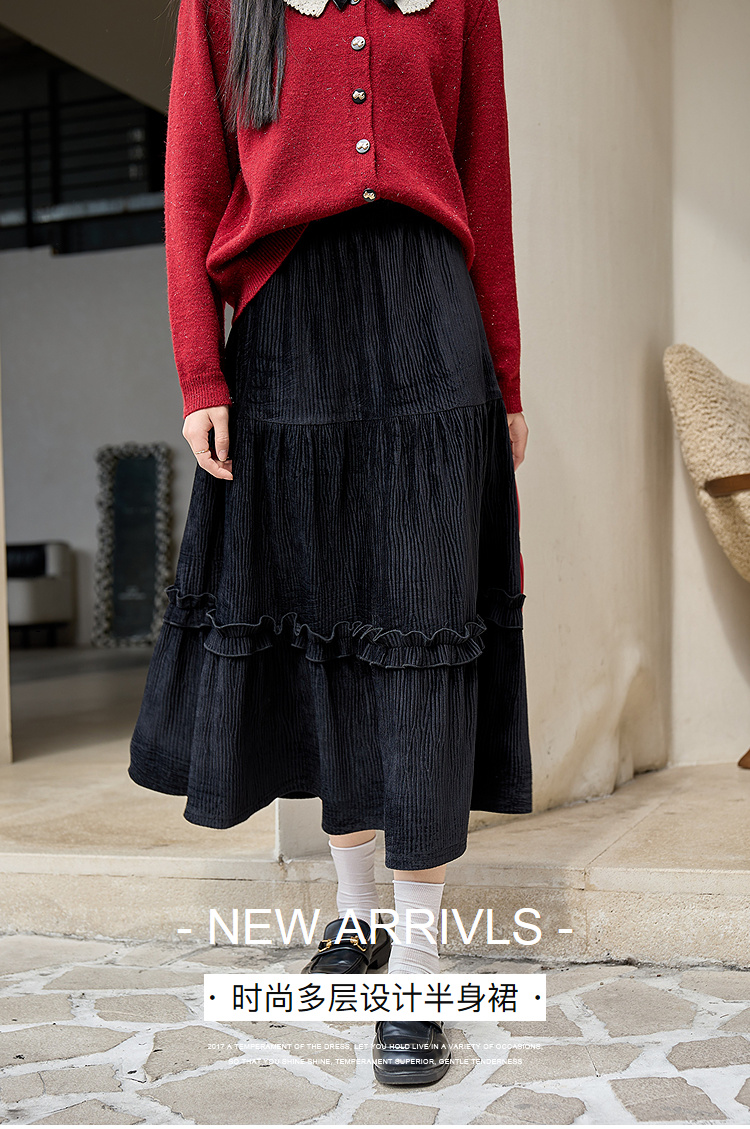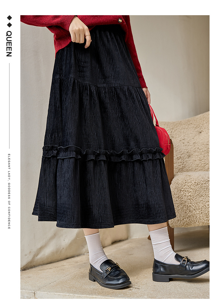 奢姿大码女装2025冬季胖妹妹时尚减龄灯芯绒荷叶边多层设计半身裙9954470630
