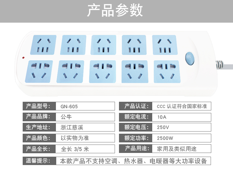 公牛插线板(3米)GN-605-3M