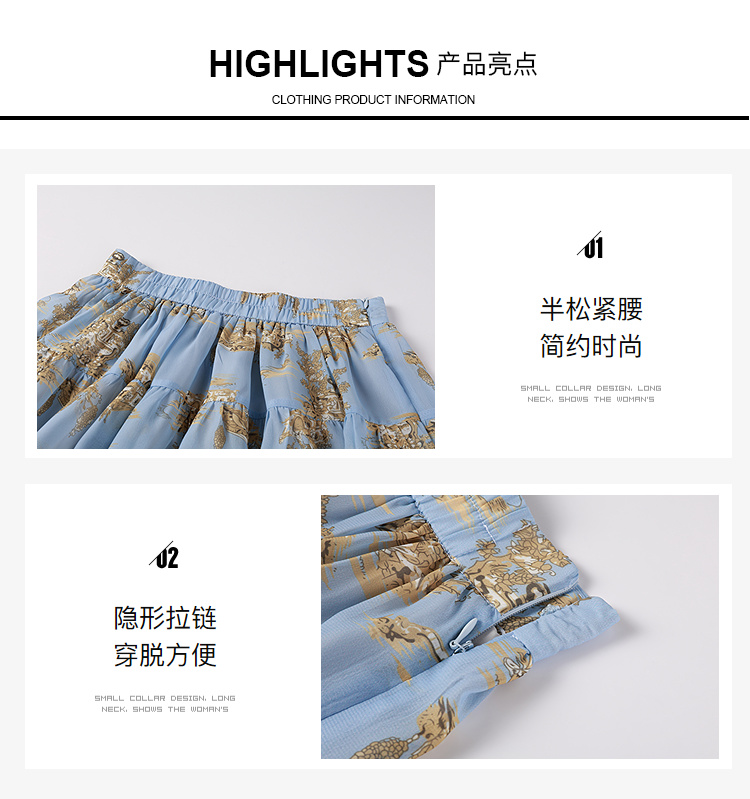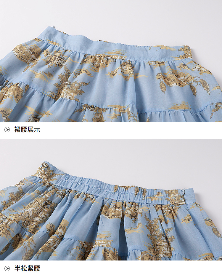 奢姿大码女装2025秋季减龄半松紧印花半身裙胖妹妹时尚简约短裙