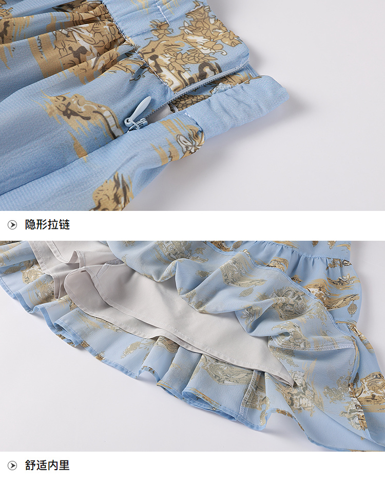 奢姿2025年夏季新款大码女装减龄印花拼接裙子胖妹妹方领连衣裙9932852792