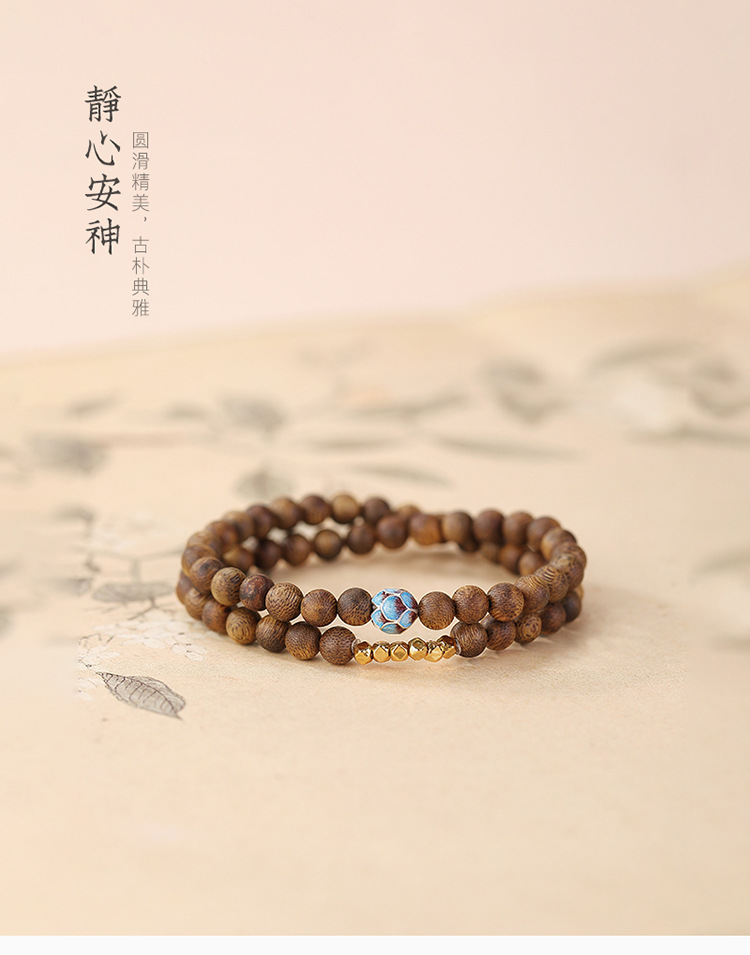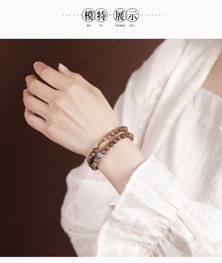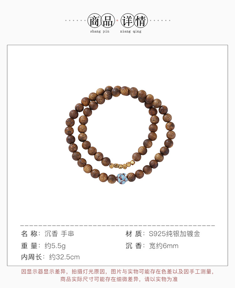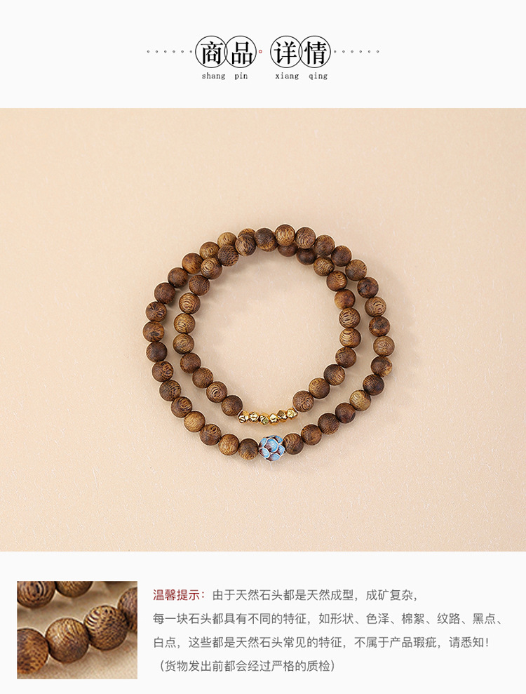 【莲香层染】S925纯银镀金沉香珐琅碎银莲花两圈叠戴圆珠弹力绳手串【CW-SL11805】
