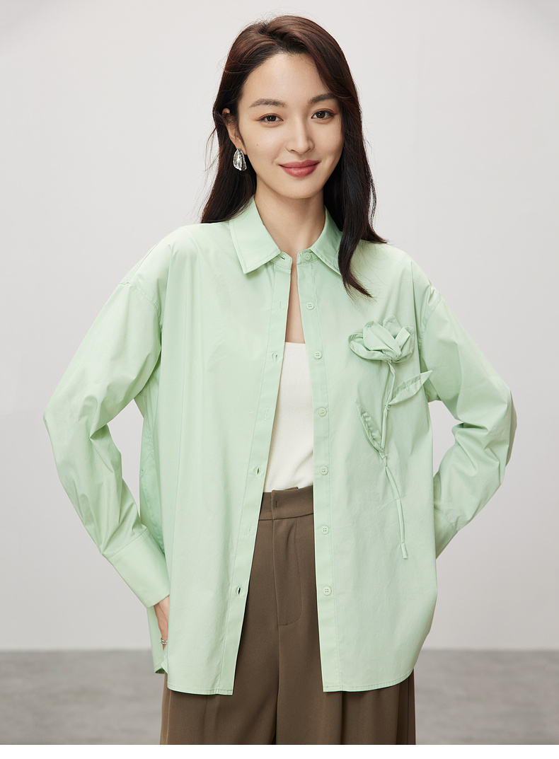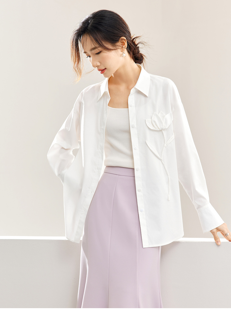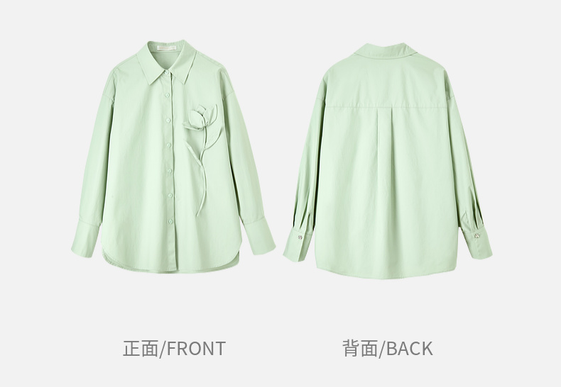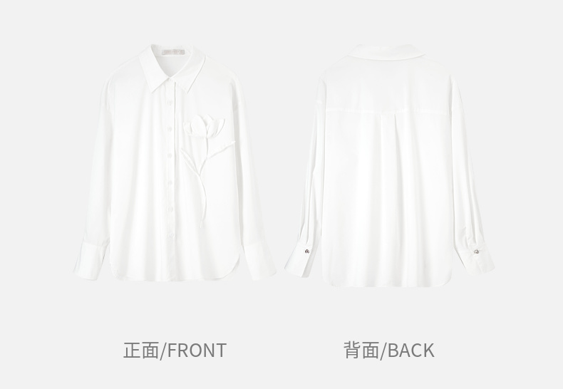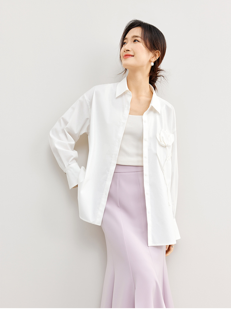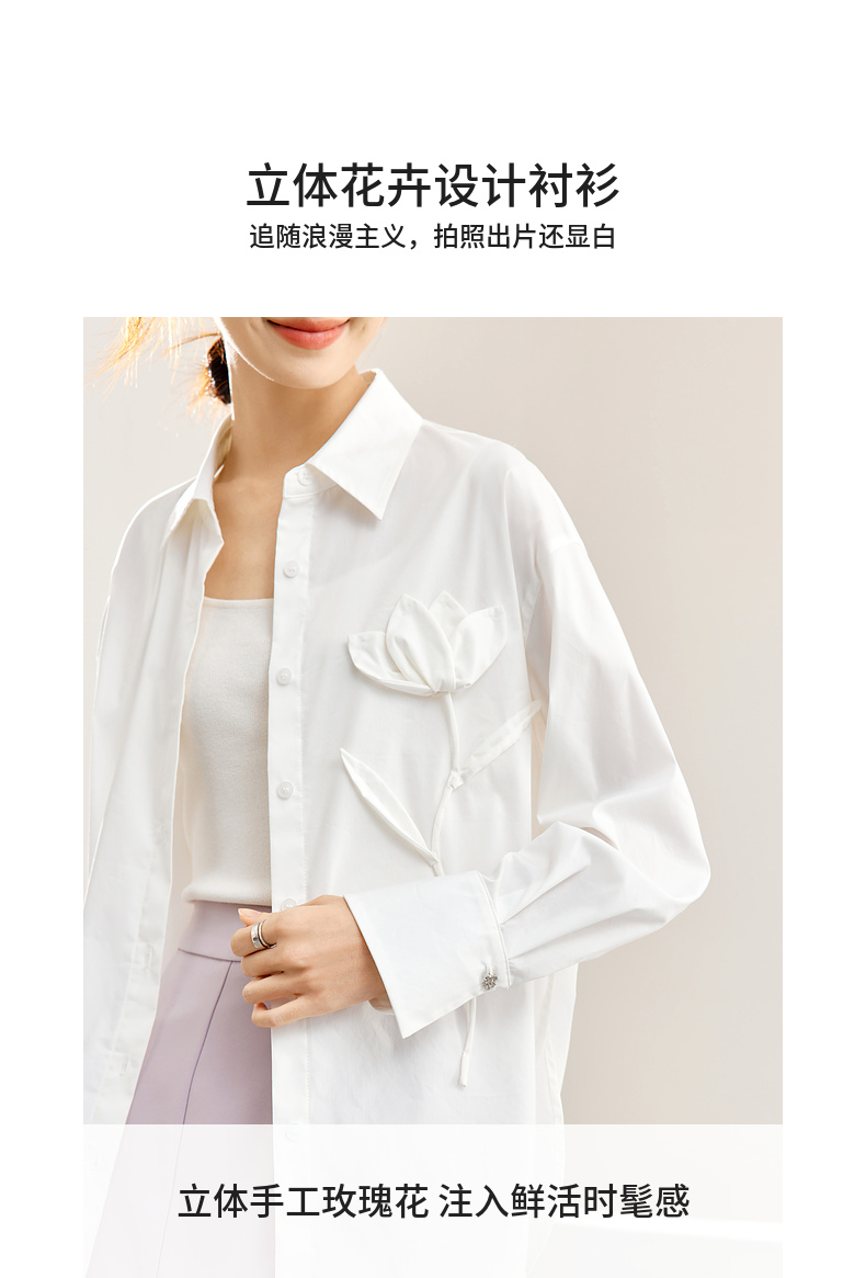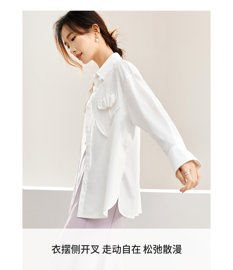 【内购】【立体玫瑰花设计衬衣】手工立体玫瑰花侧开叉宽松休闲长袖衬衫-151C80078X