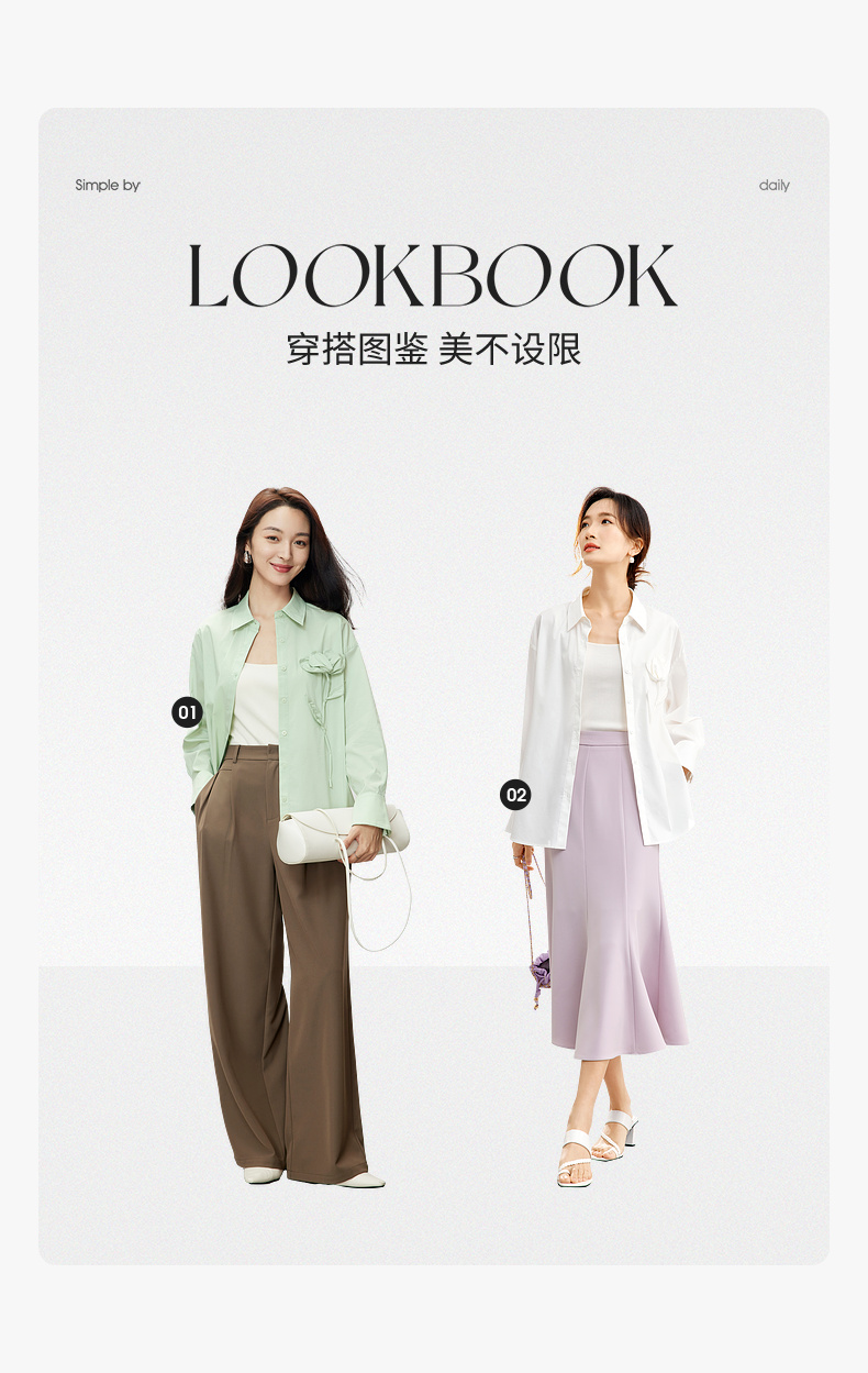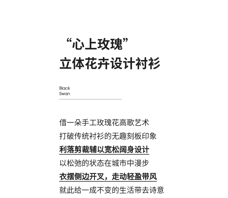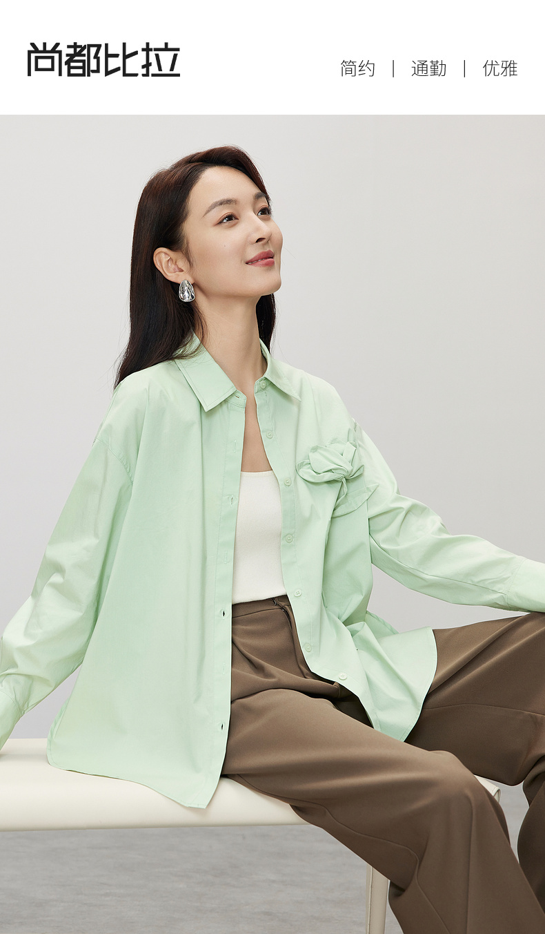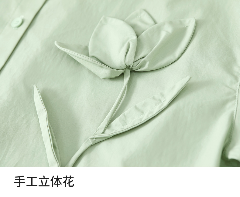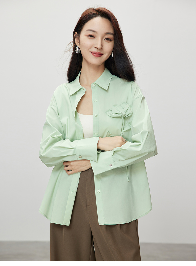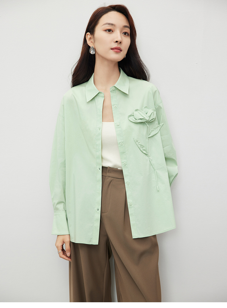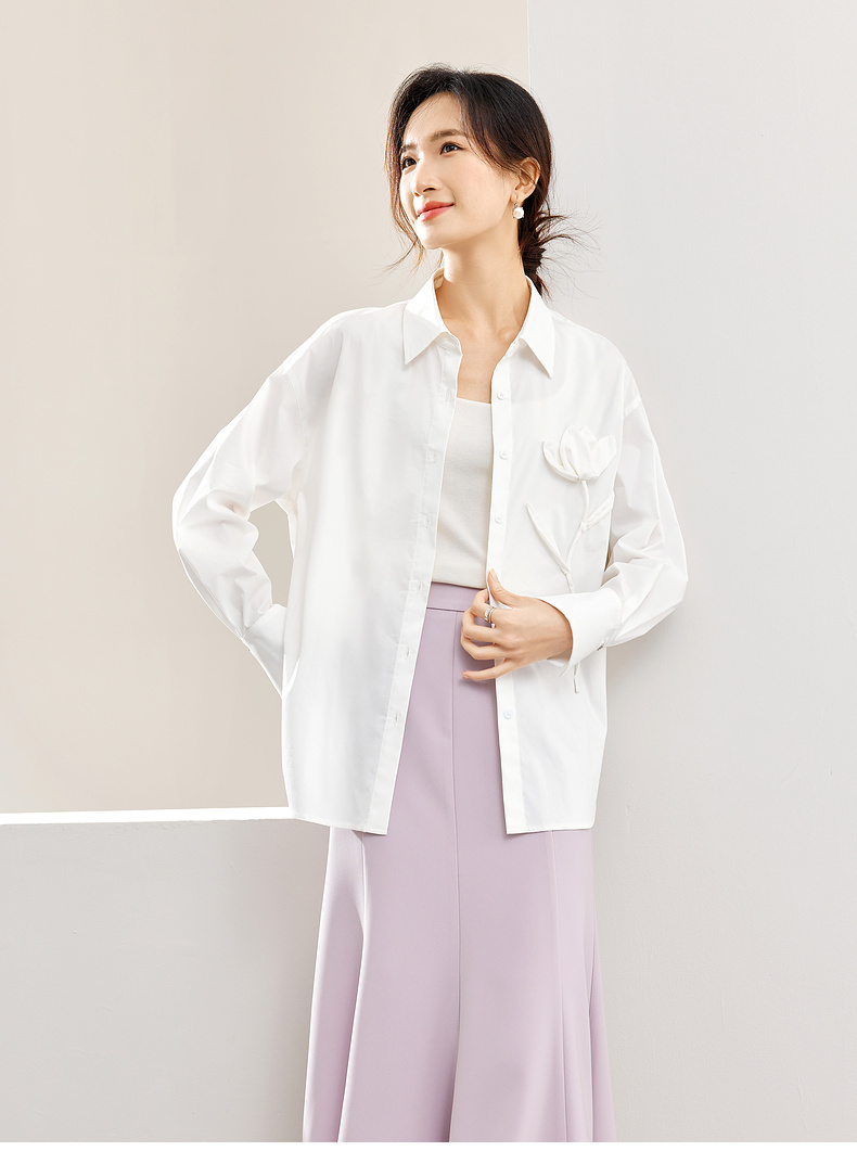 【内购】【立体玫瑰花设计衬衣】手工立体玫瑰花侧开叉宽松休闲长袖衬衫-151C80078X