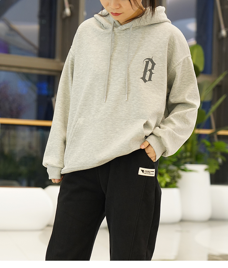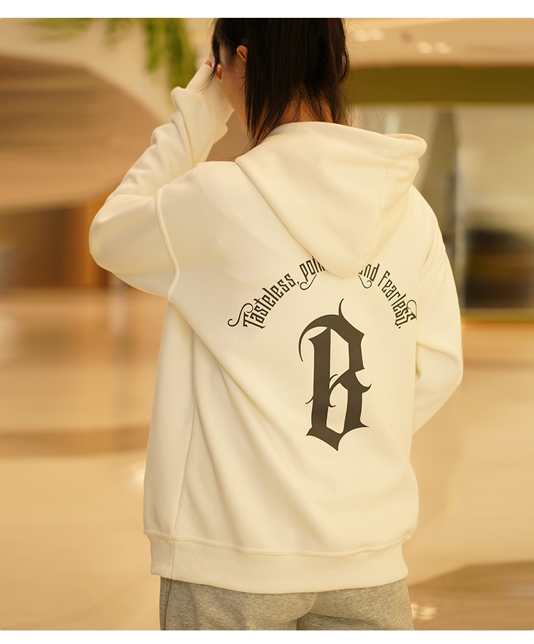 SZ2665秋款薄绒卫衣连帽情侣款字母印花纯棉宽松时尚上衣