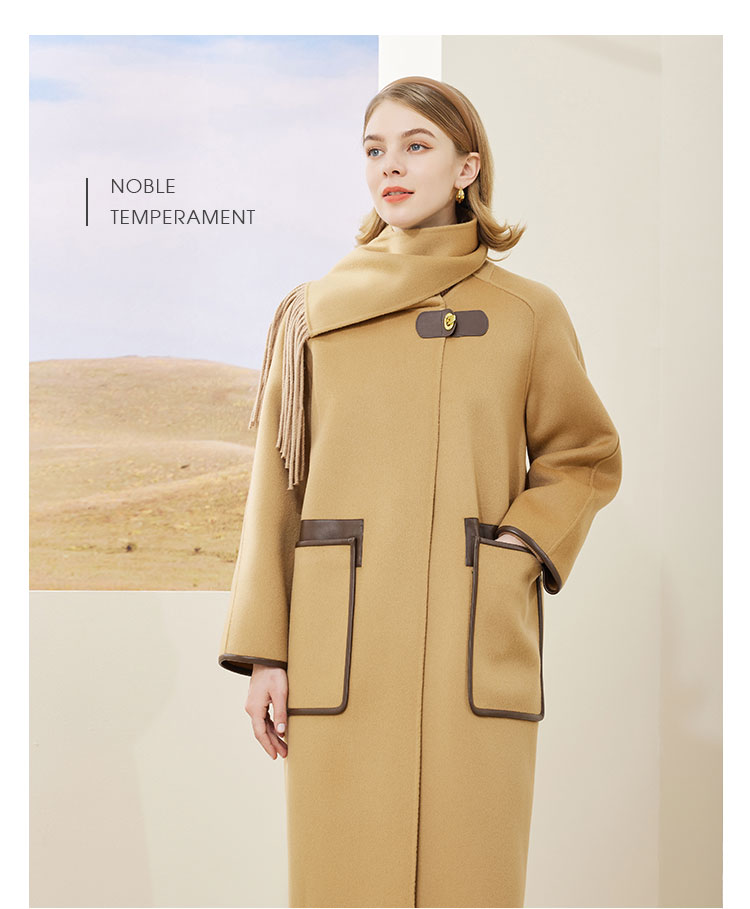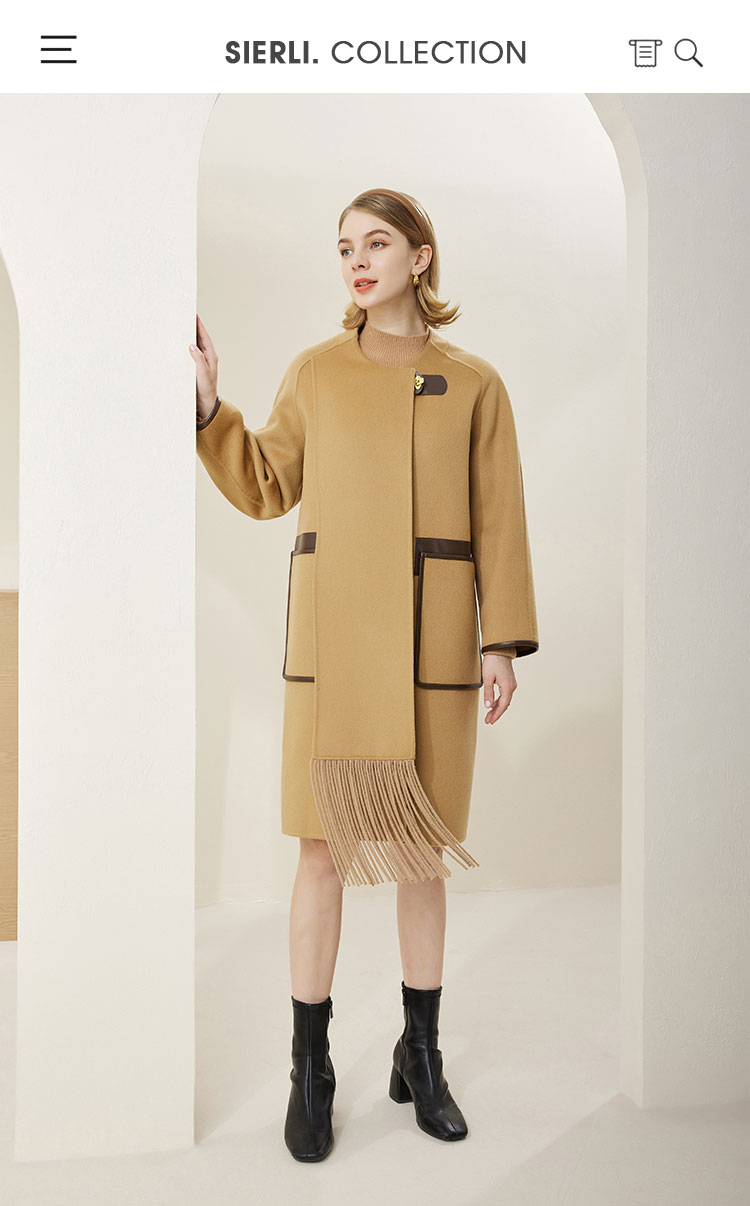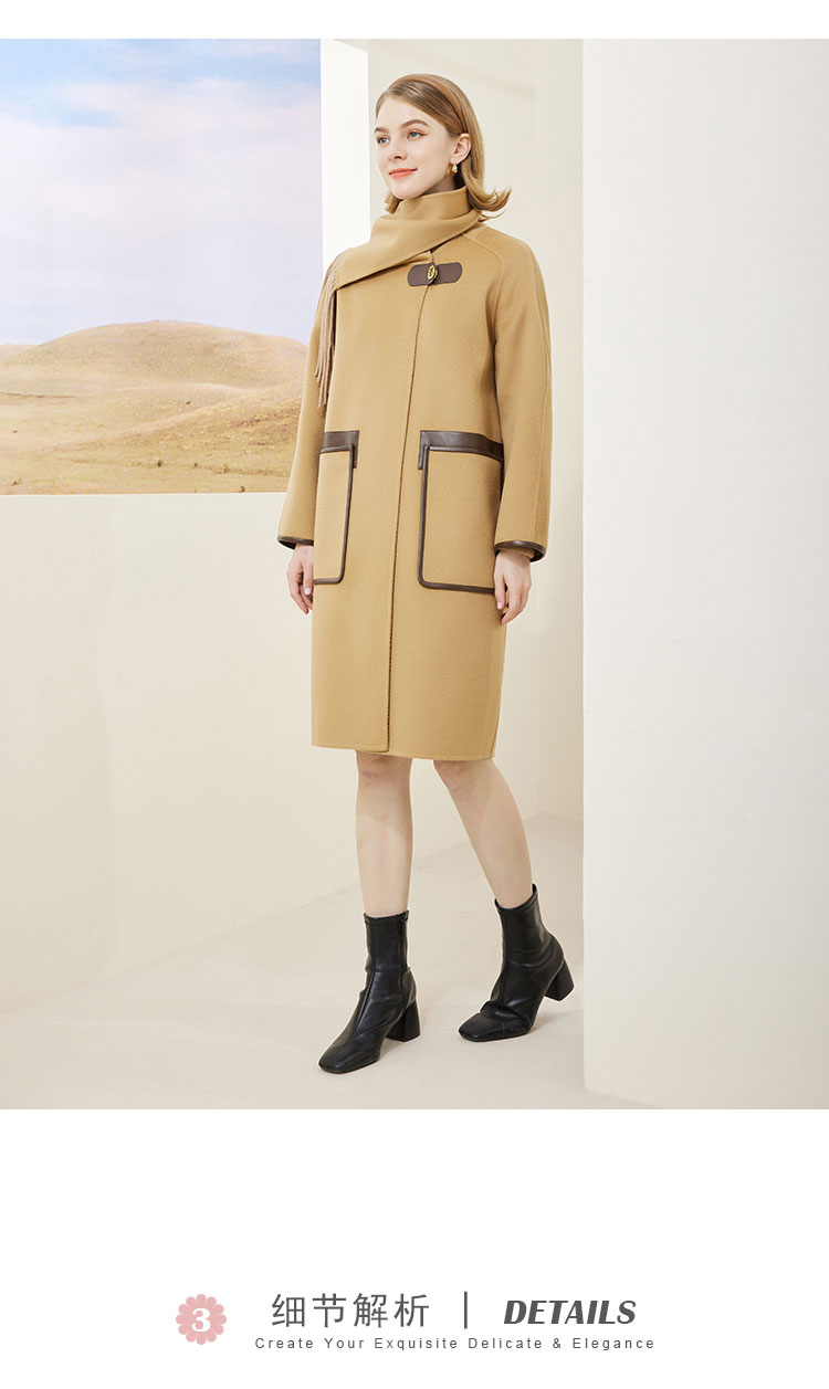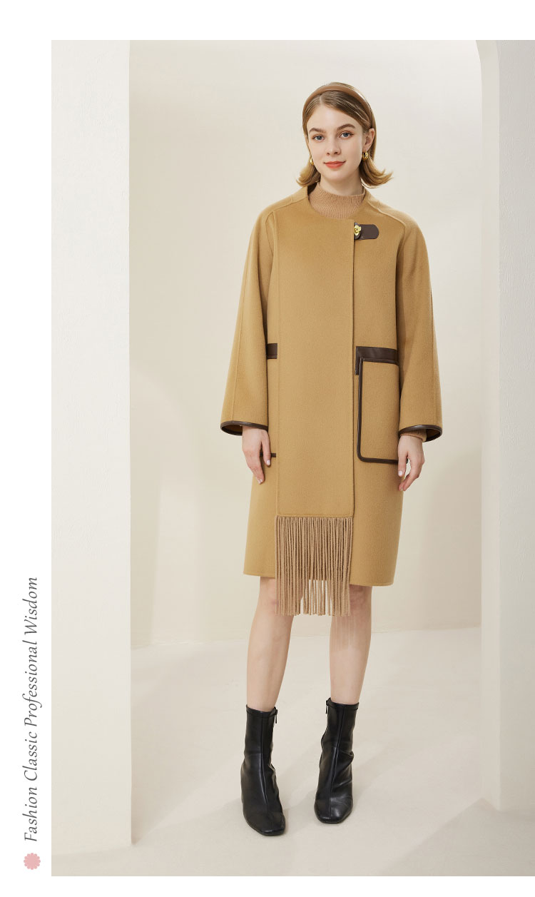 MD913斯尔丽瑟俪2022年冬季新款商场同款流苏围脖领长款大衣