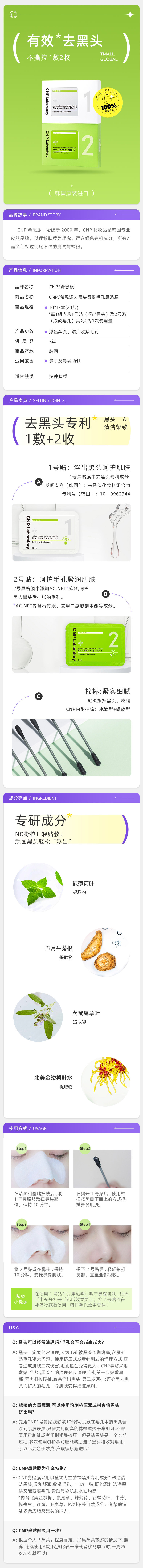 CNP/希恩派去黑头鼻贴导出液3ml*12对24片 深层清洁收缩毛孔面膜
