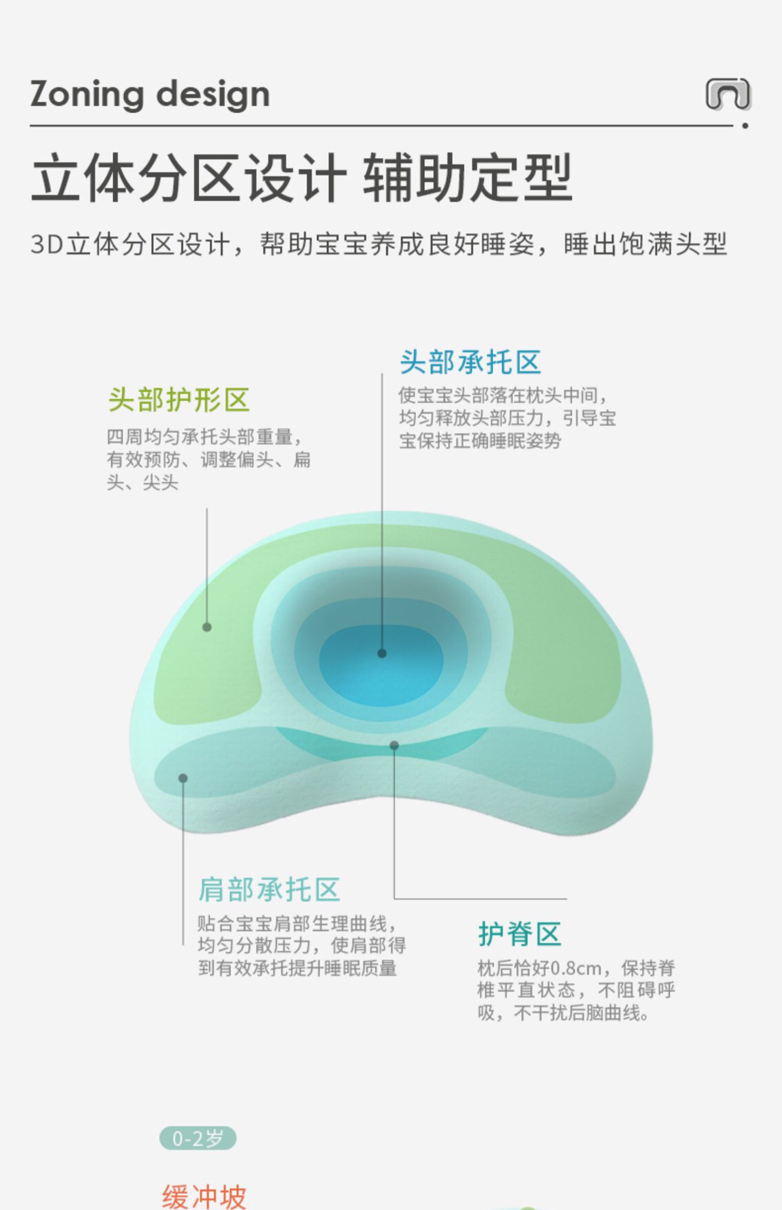 【2021新品】ibaby恒温定型枕小月亮儿童枕头春夏婴儿枕宝宝防摔护脊透气睡枕【ibaby系列】