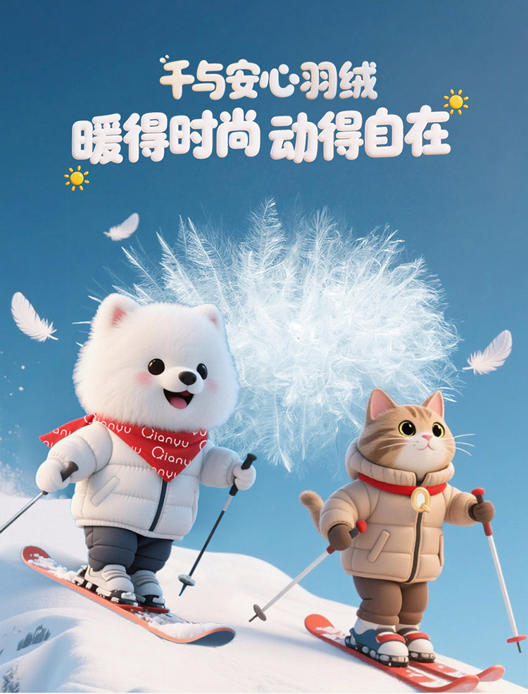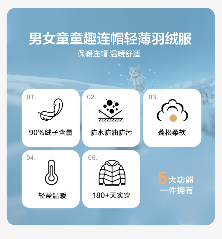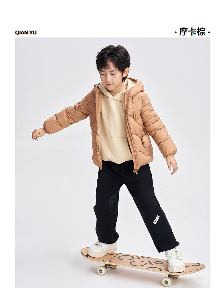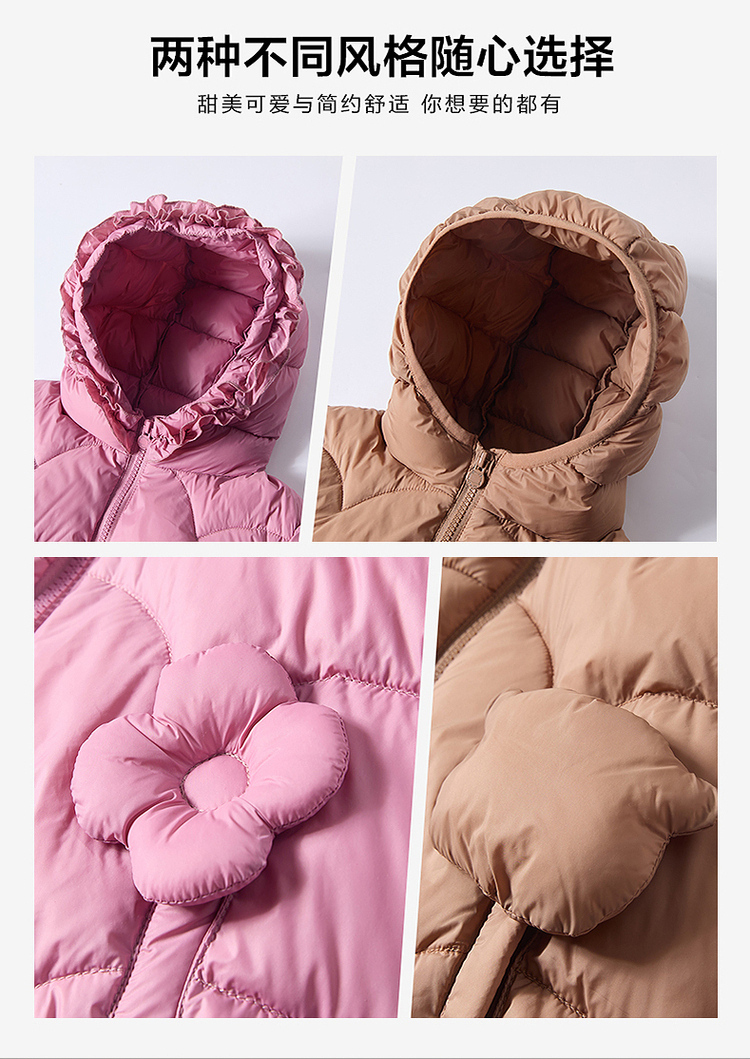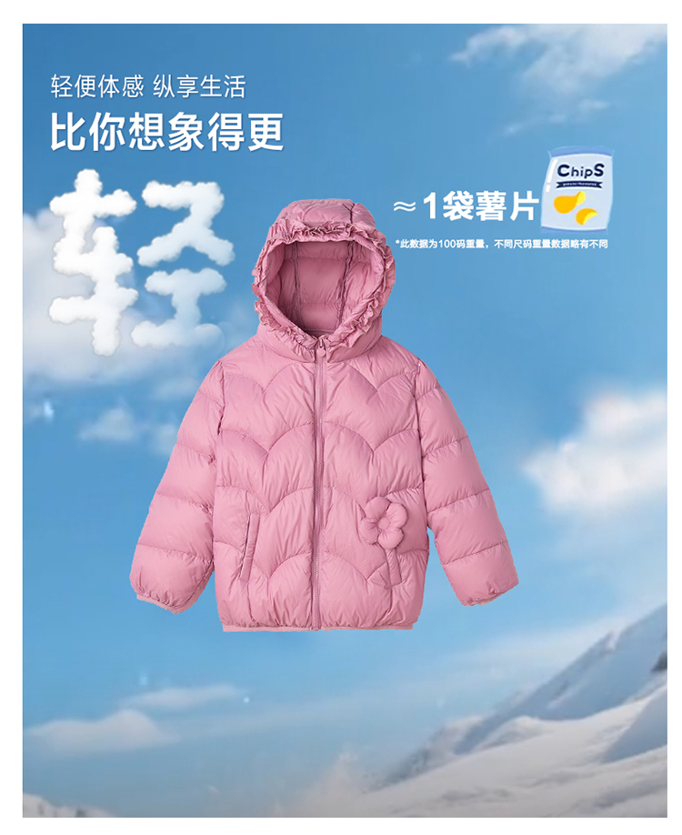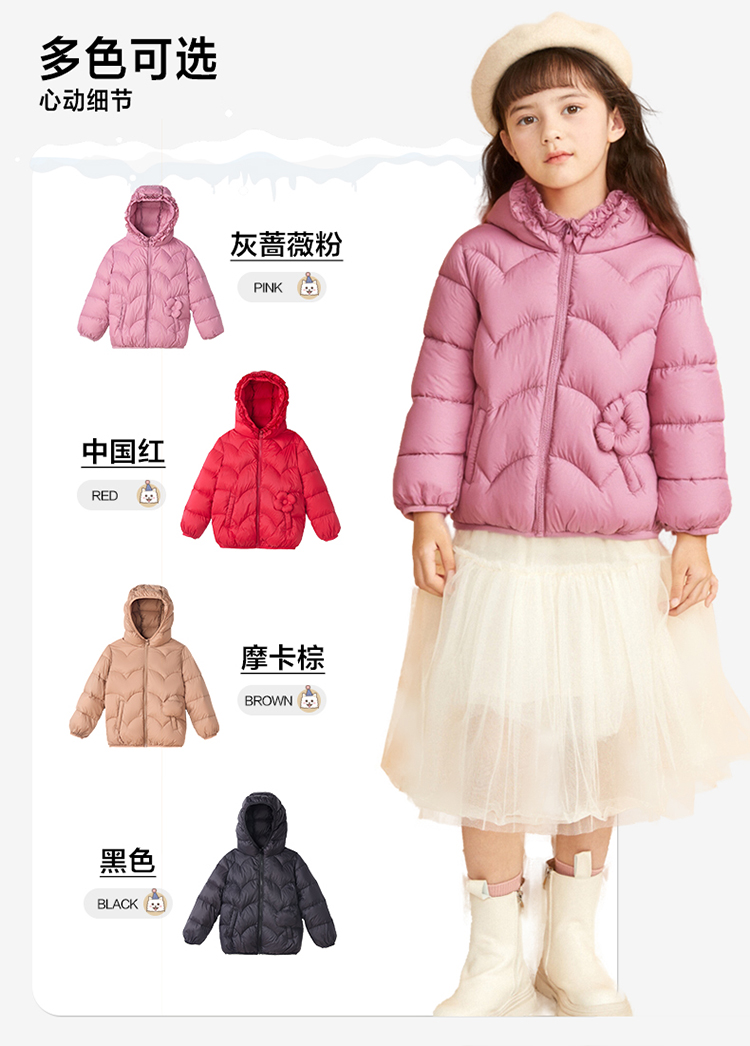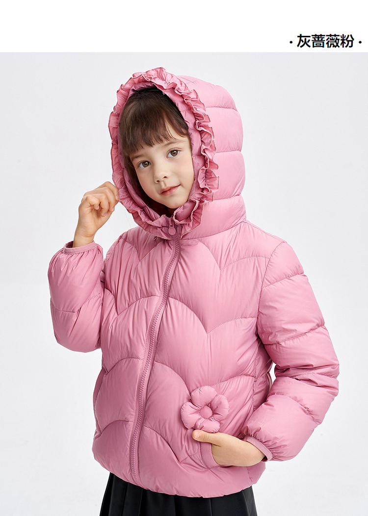 笛莎千与2025冬季新款女童童趣连帽轻薄羽绒服