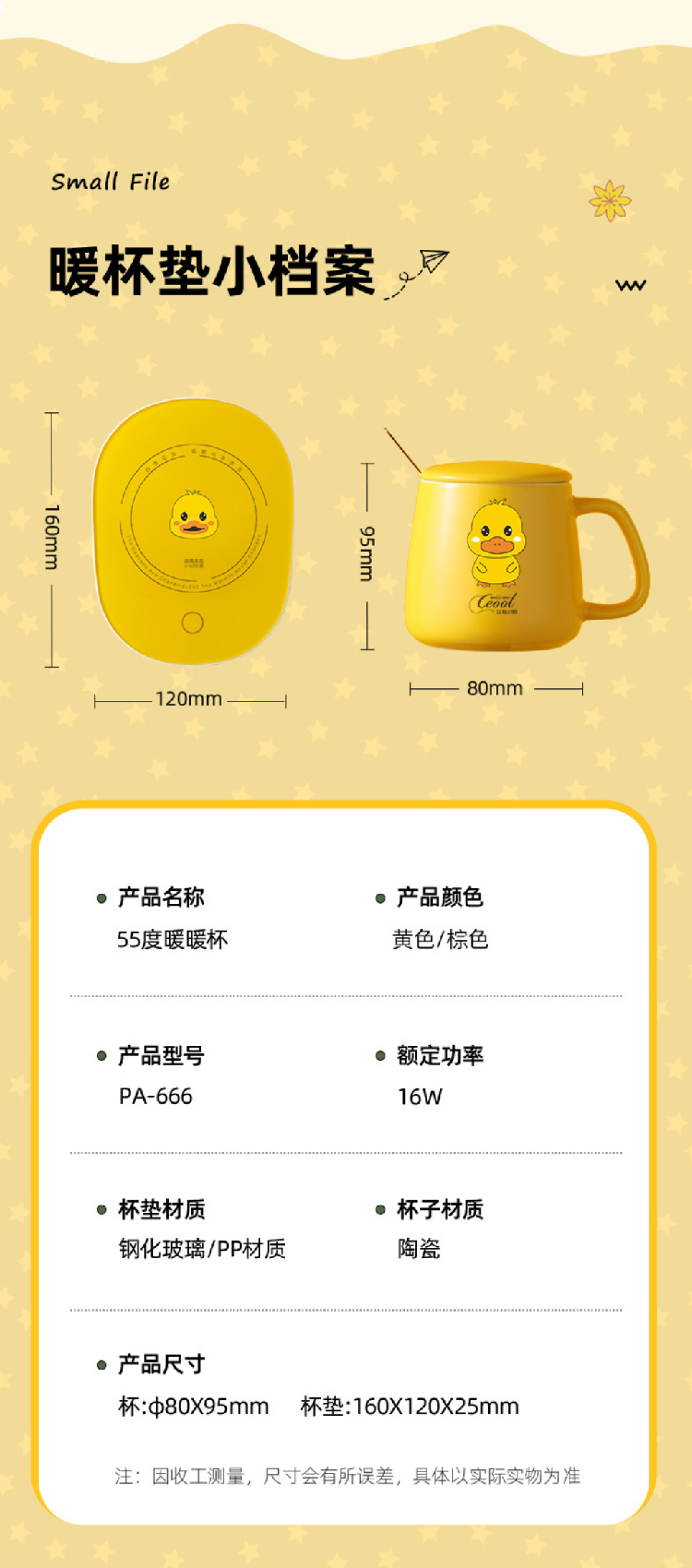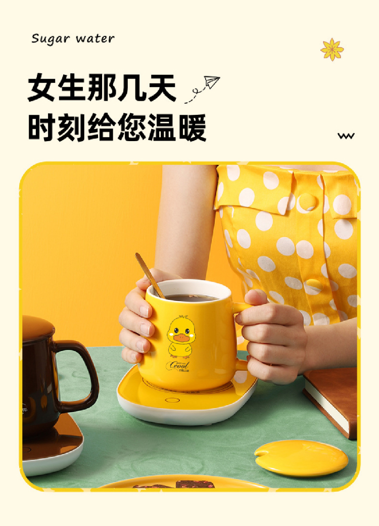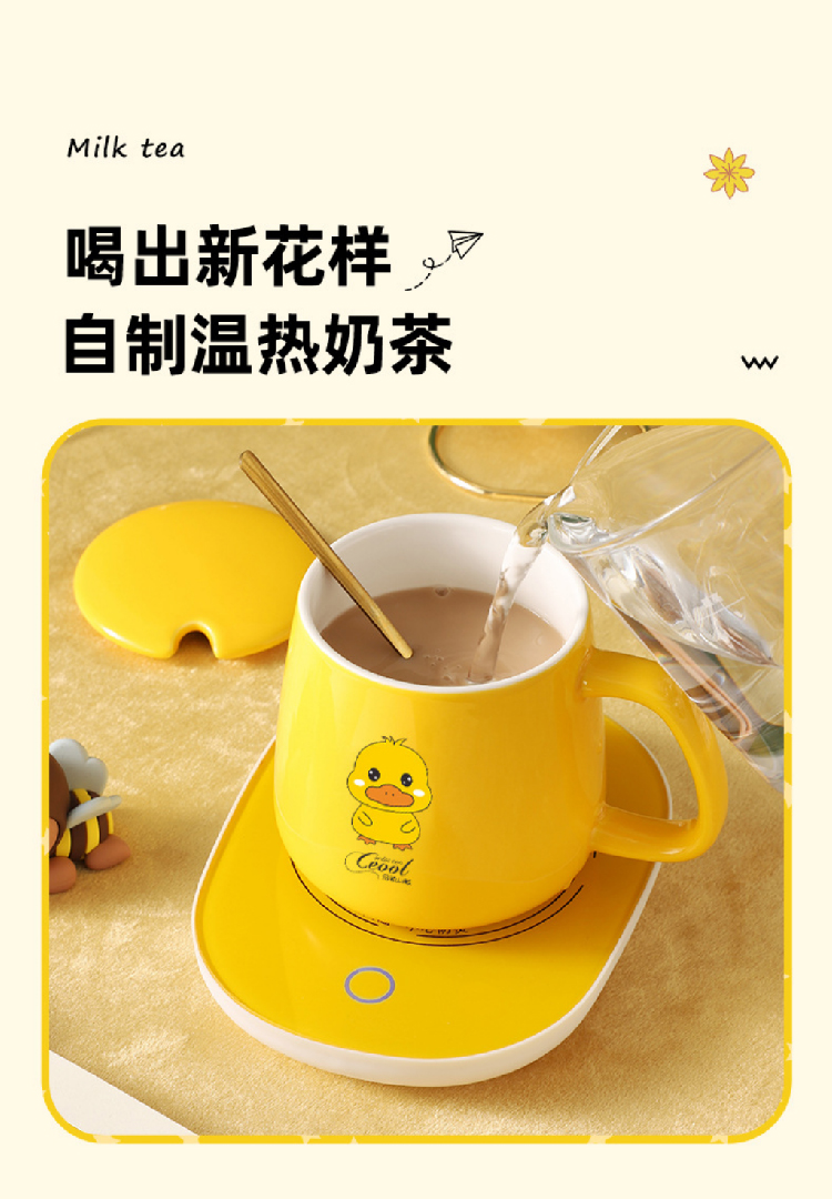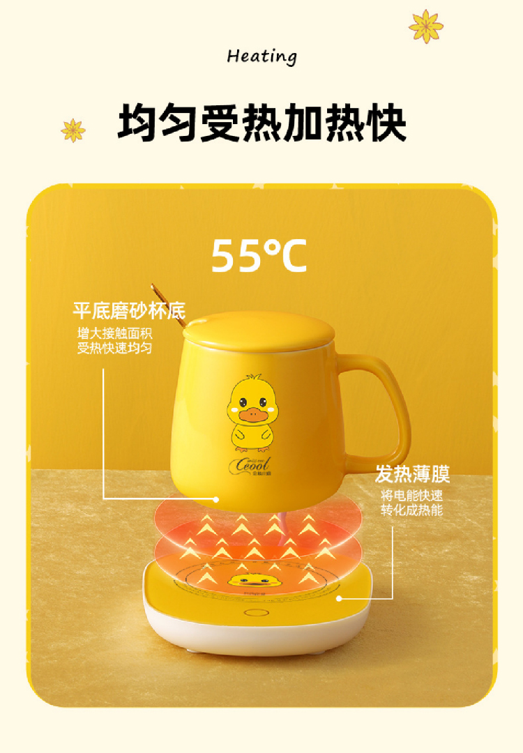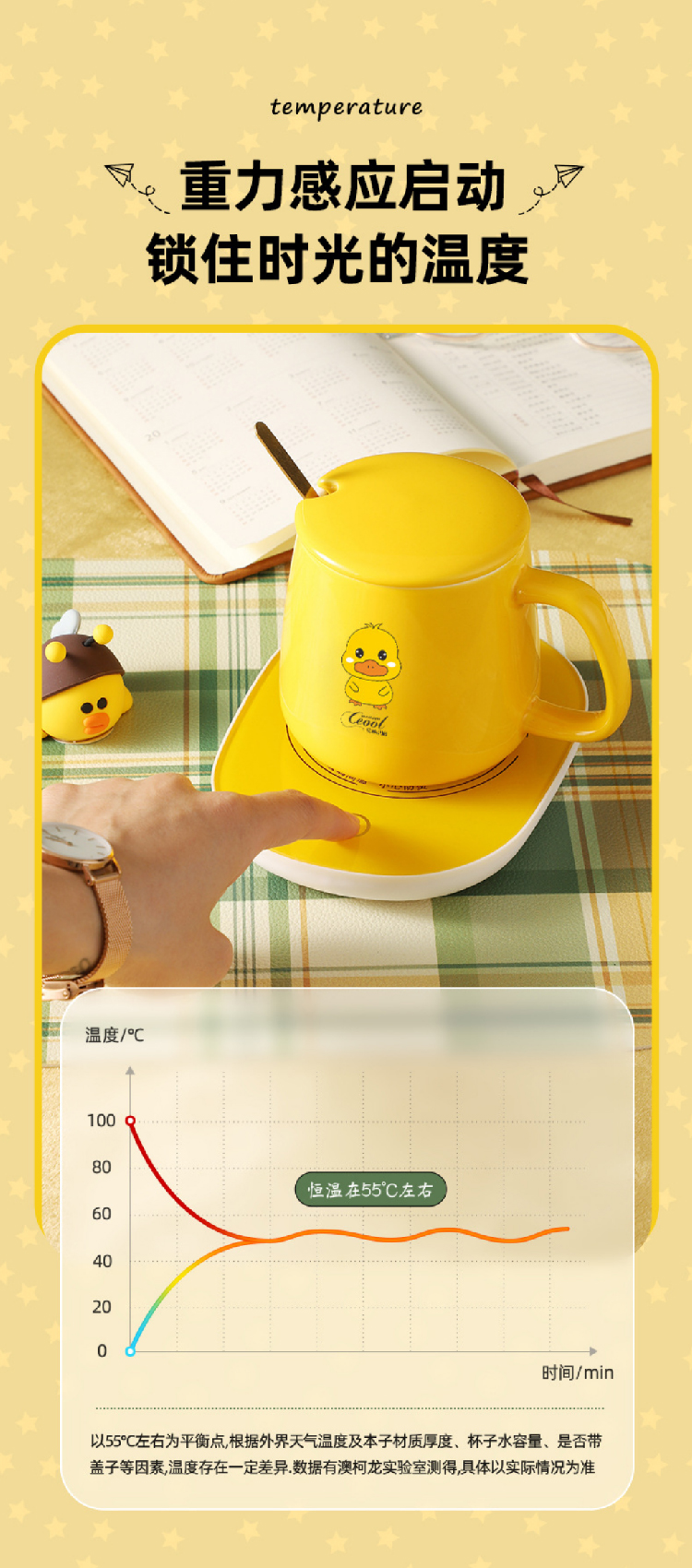 【小黄鸭杯垫+杯子+勺】55度卡通加热暖杯垫三件套礼盒装 恒温发热垫礼品套装