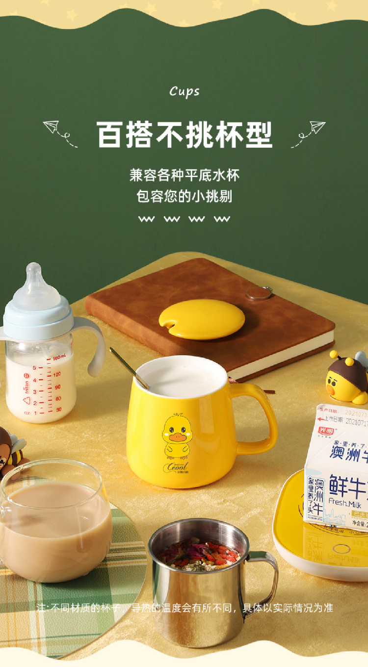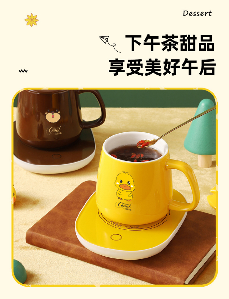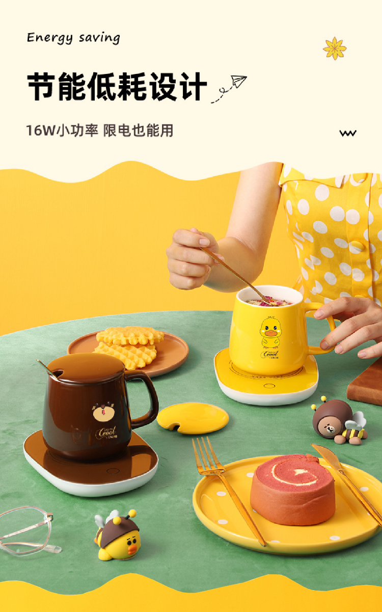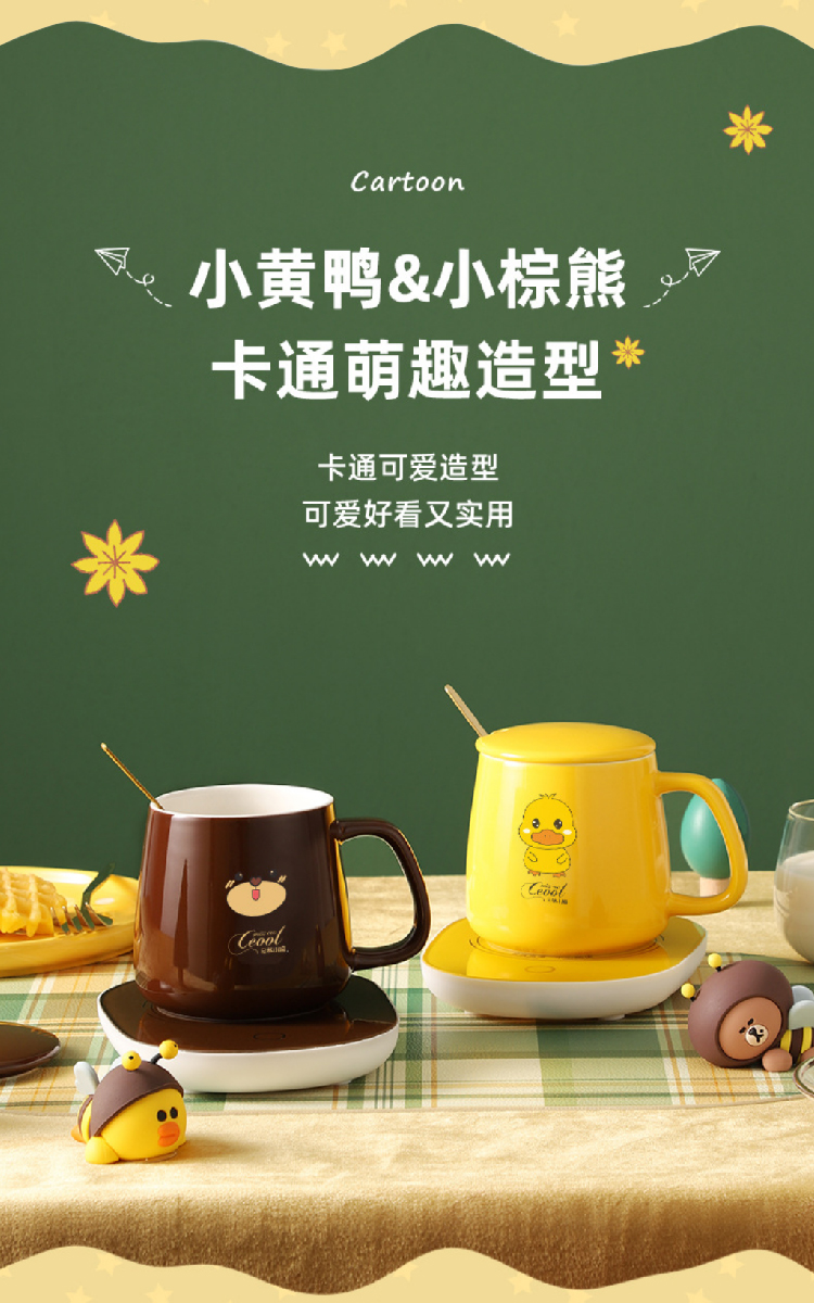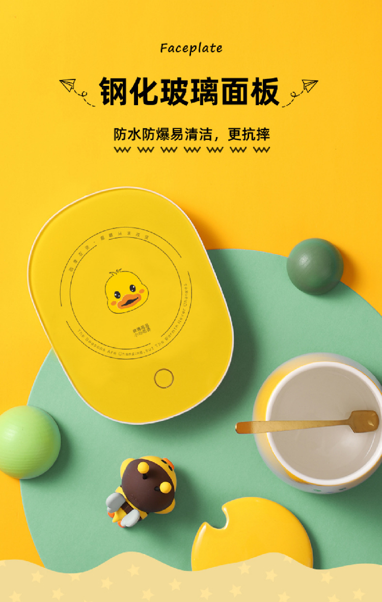【小黄鸭杯垫+杯子+勺】55度卡通加热暖杯垫三件套礼盒装 恒温发热垫礼品套装