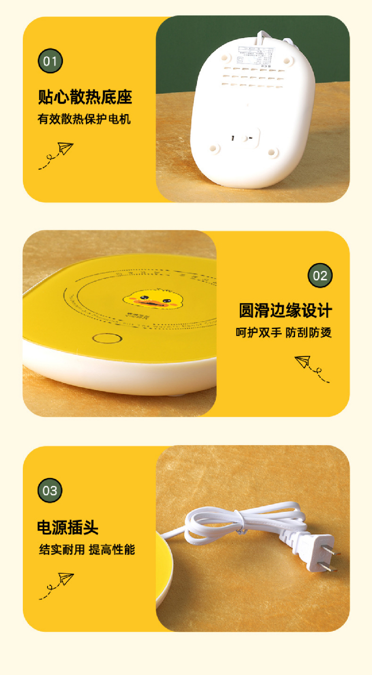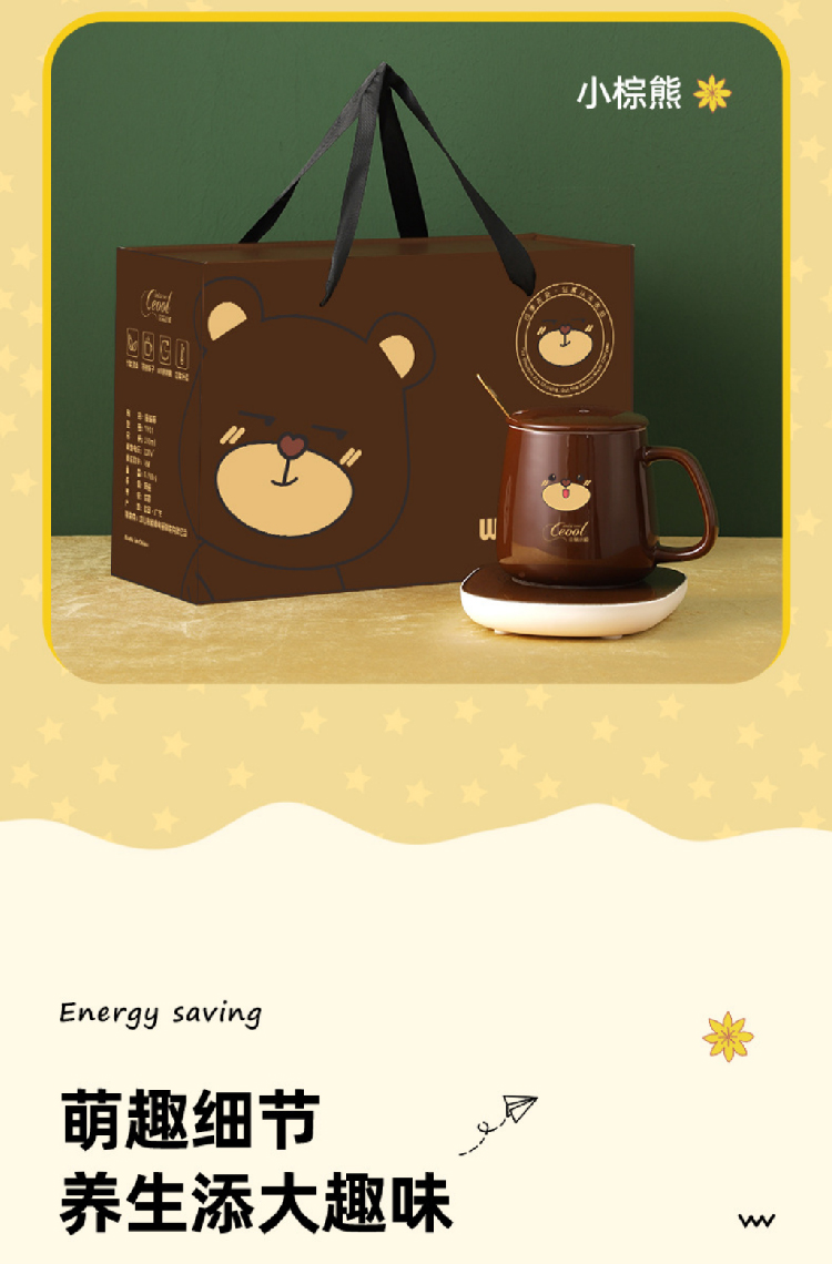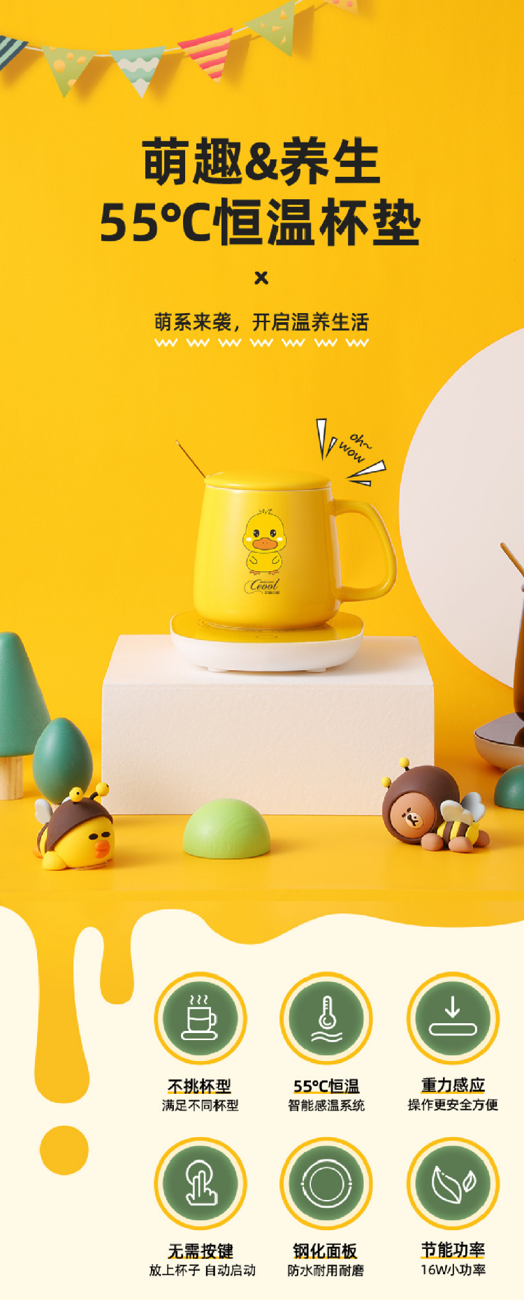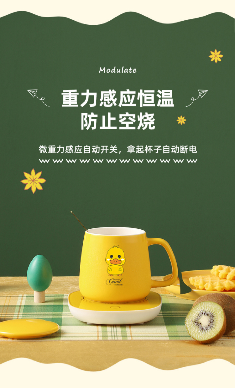 【小黄鸭杯垫+杯子+勺】55度卡通加热暖杯垫三件套礼盒装 恒温发热垫礼品套装