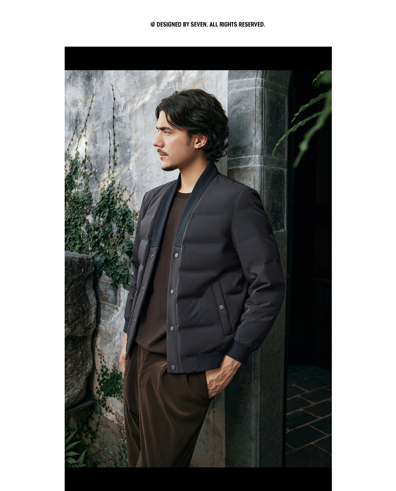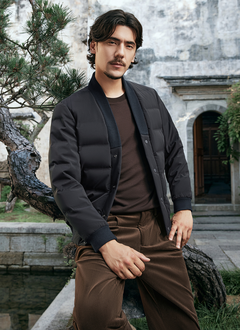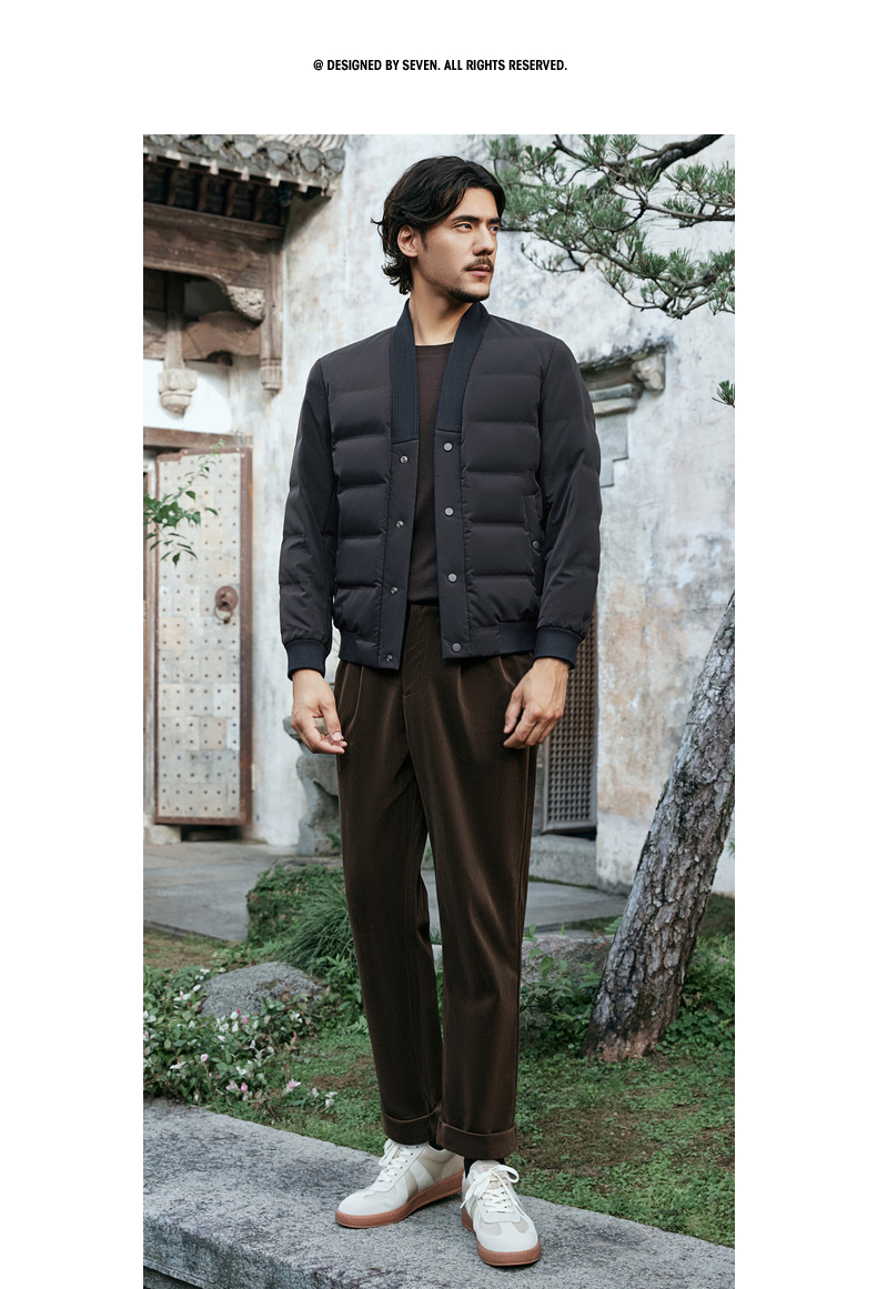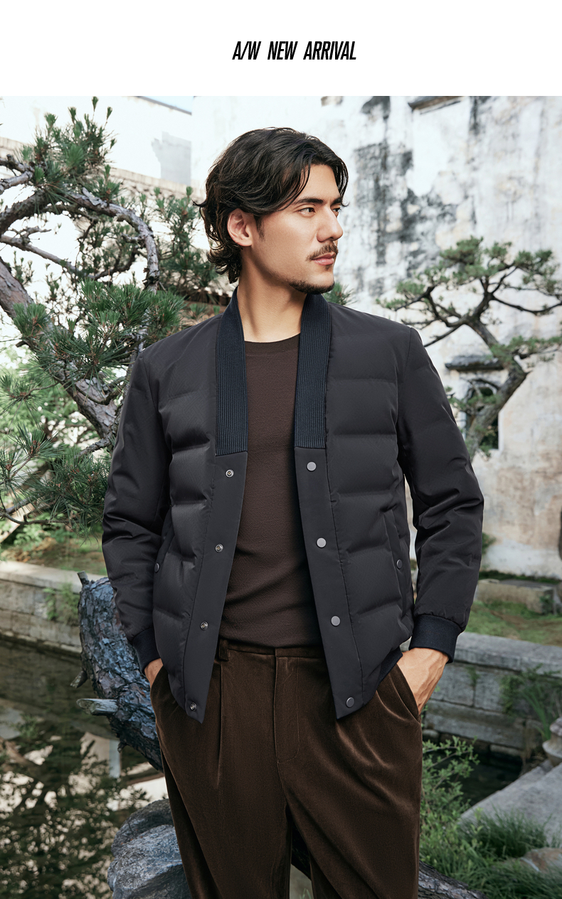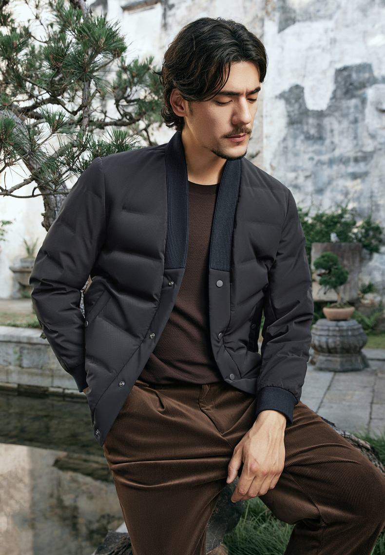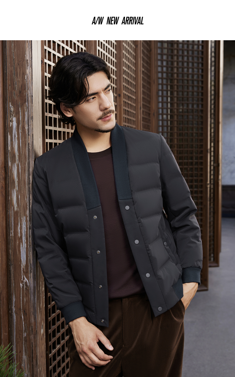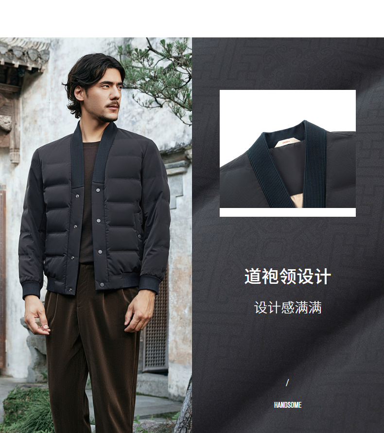 【国风新中式】柒牌男装2025冬季羽绒服道袍领满印保暖高端外套129E71250