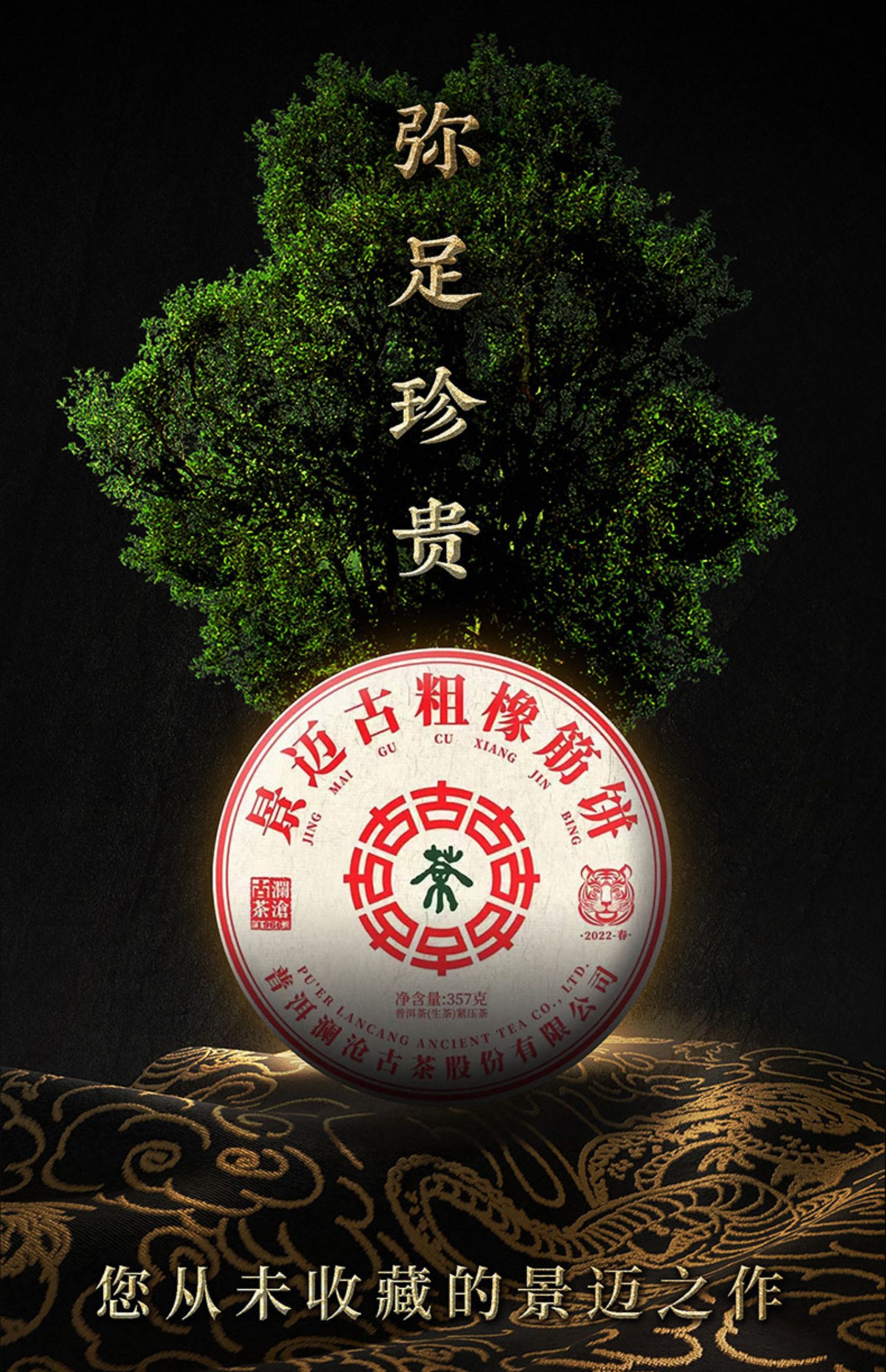 澜沧古茶2022年景迈古粗橡筋饼普洱茶生茶云南茶饼茶叶