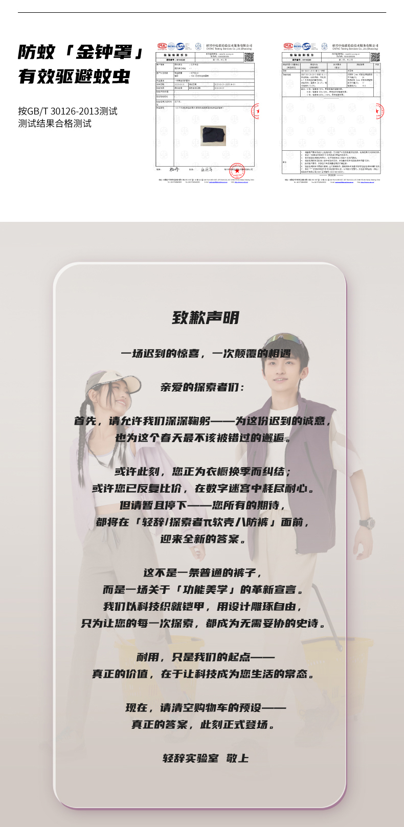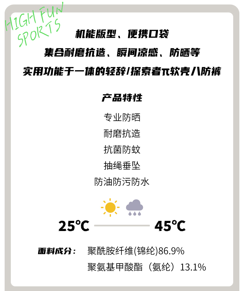 热卖!轻辞/探索者π软壳八防裤 男女同款 防水、防油、防污、防蚊、防晒、防起球、防异味、防静电 HNL25301款
