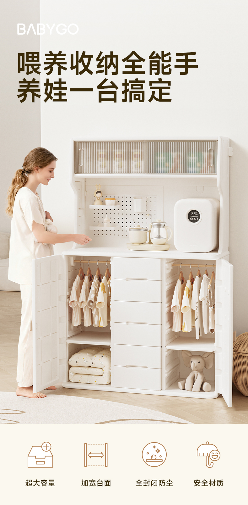 BABYGO儿童喂养台宝宝置物玩具收纳柜趣搭搭玩具收纳架儿童衣柜