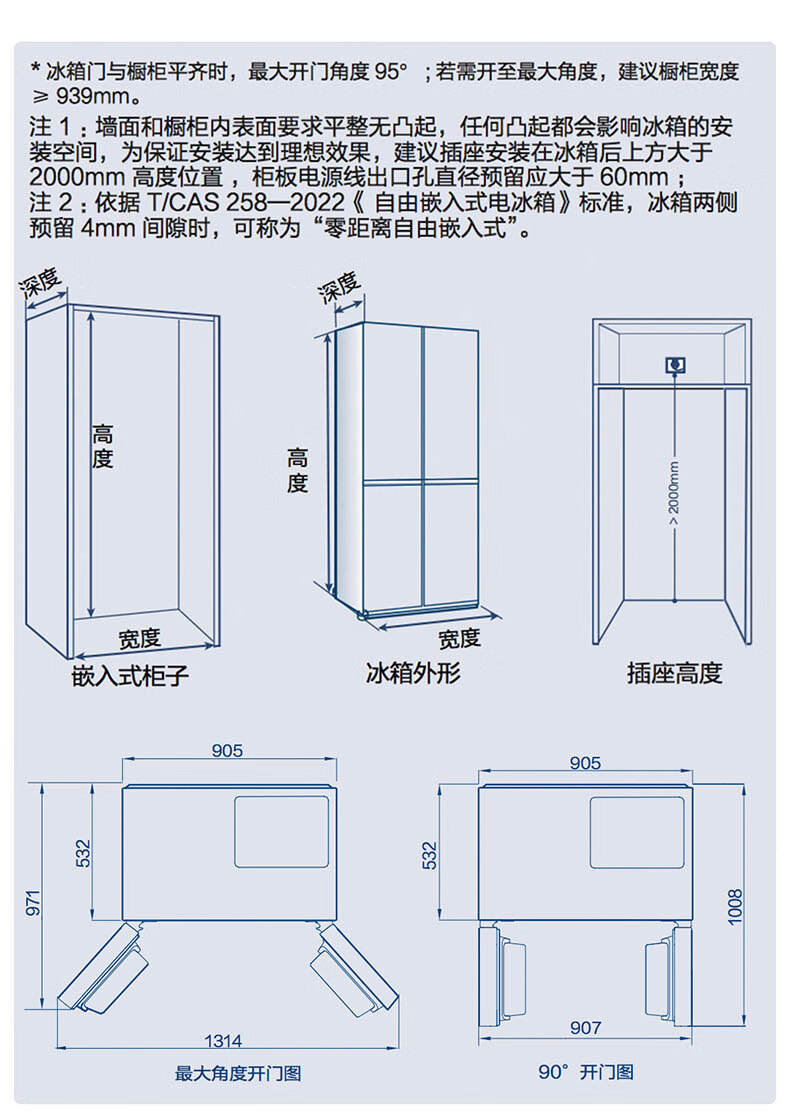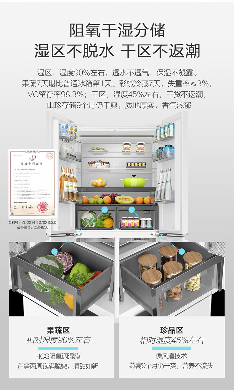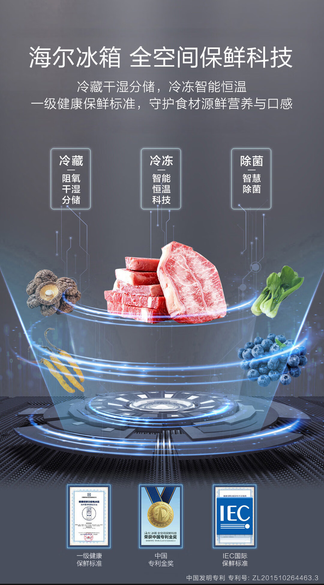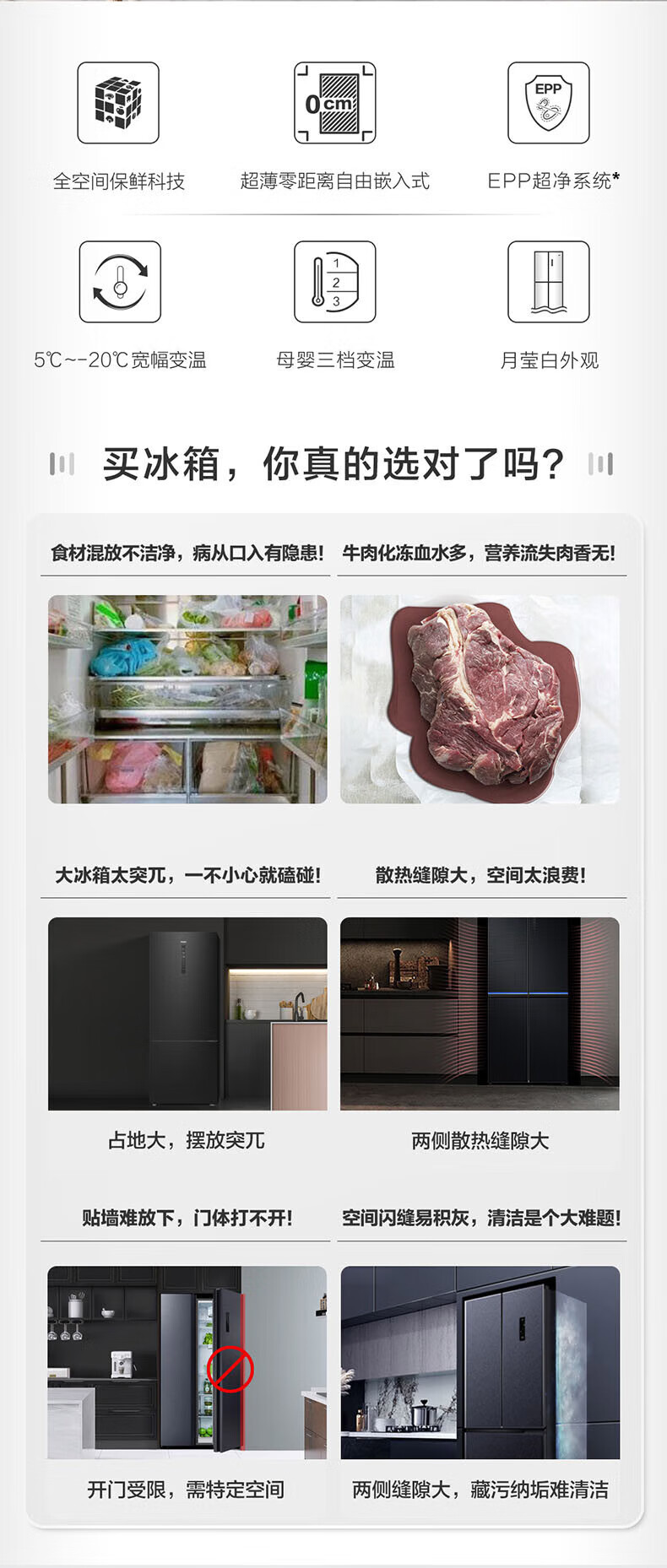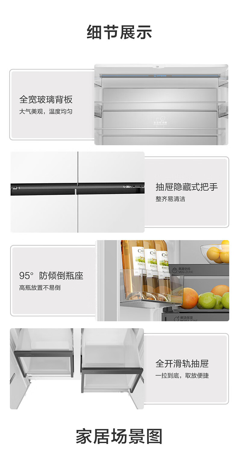 海尔517升超薄零距离自由嵌入式全空间保鲜科技十字对开门一级变频风冷无霜家用电冰箱 T型四门 BCD-517WGHTD1BW9U1