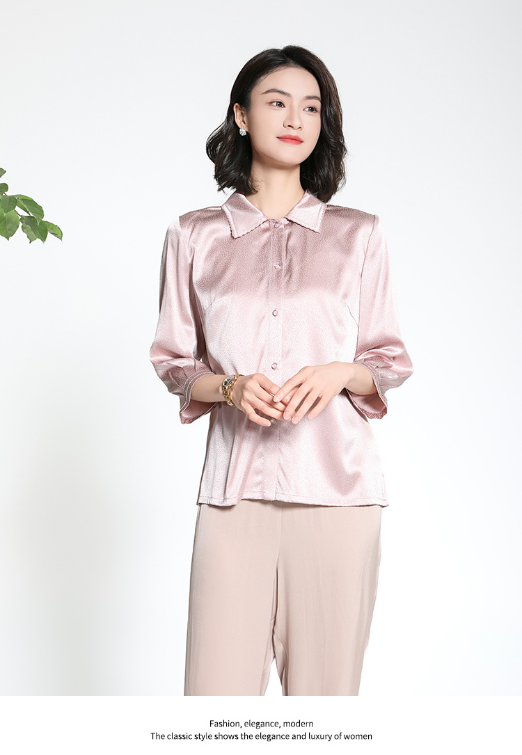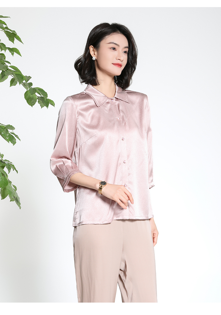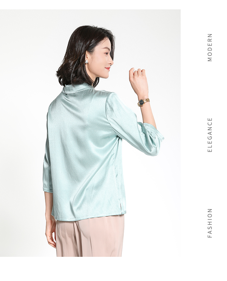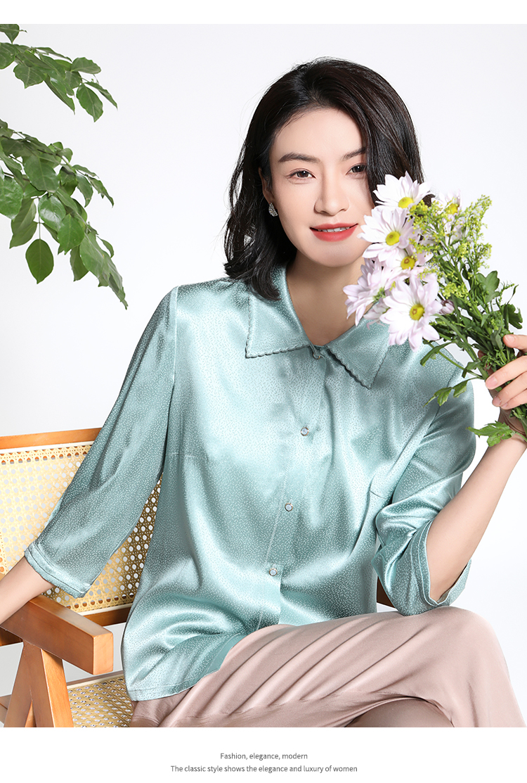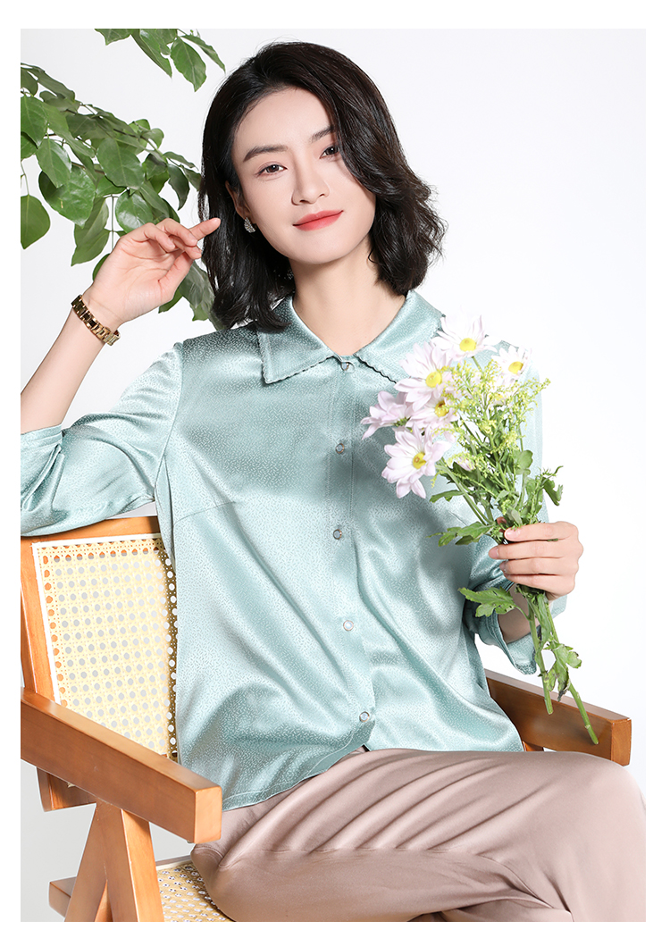 佐尔美夏季新款新中式国风时尚气质桑蚕丝长袖衬衣女M42CS41