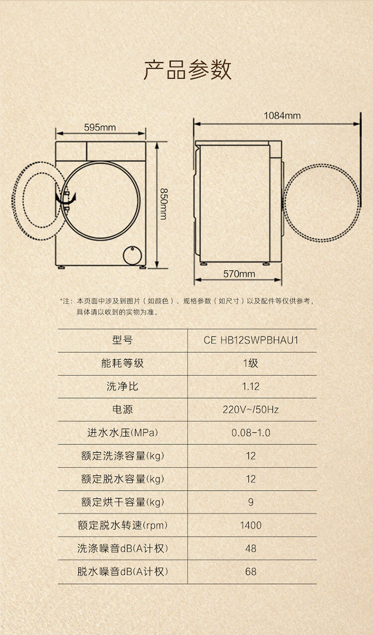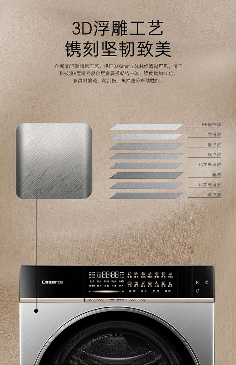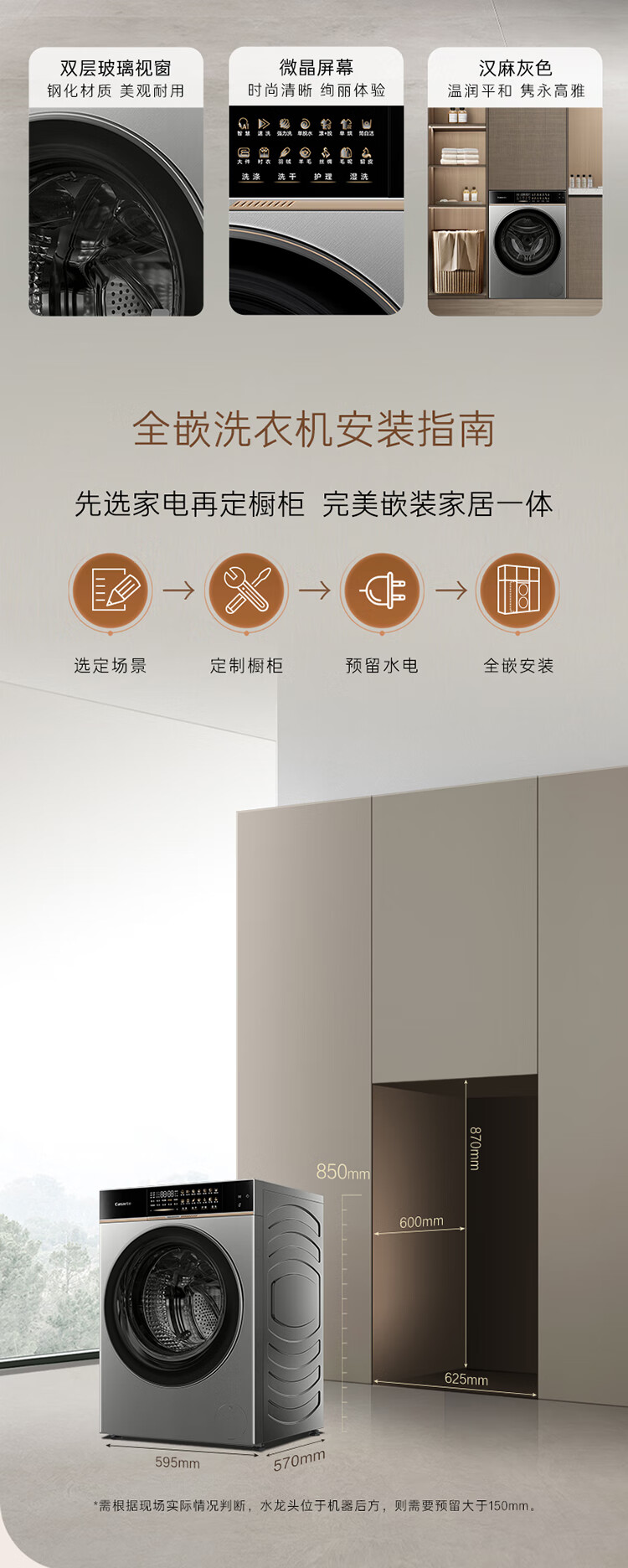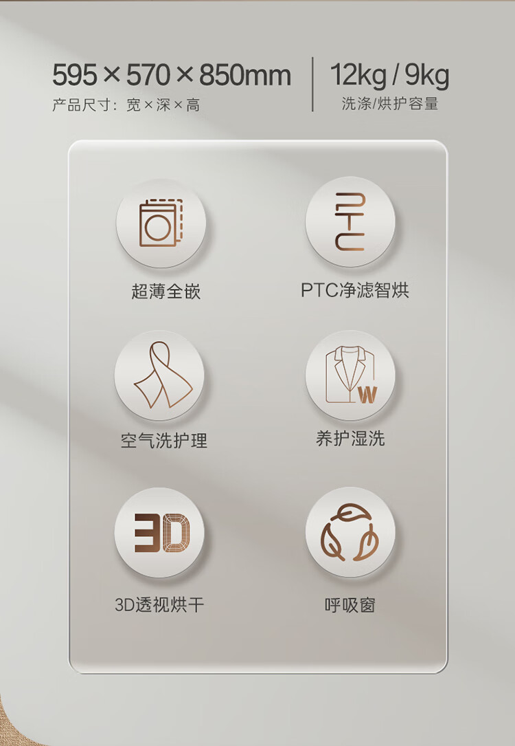 卡萨帝【国家补贴】12公斤 滚筒洗衣机 PTC洗烘一体机 养护湿洗 3D透视烘干 汉麻灰色 12公斤洗烘一体机