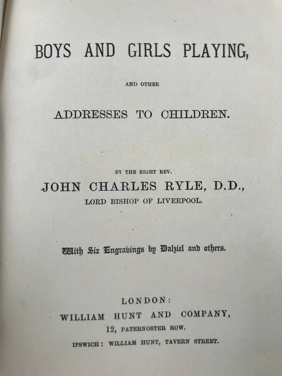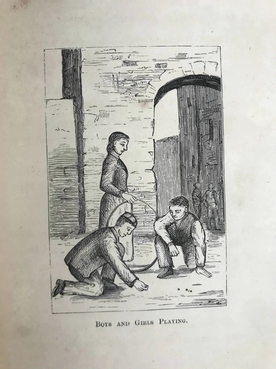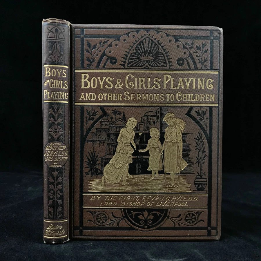 约19世纪后期 约翰·查尔斯·莱尔《男孩女孩一起玩与其他给孩子的演说》 6幅插图 漆布精装32开