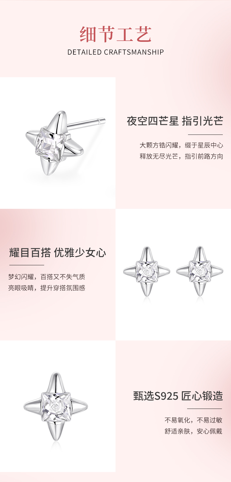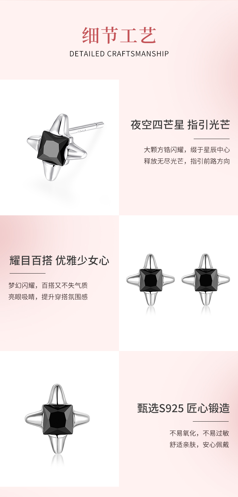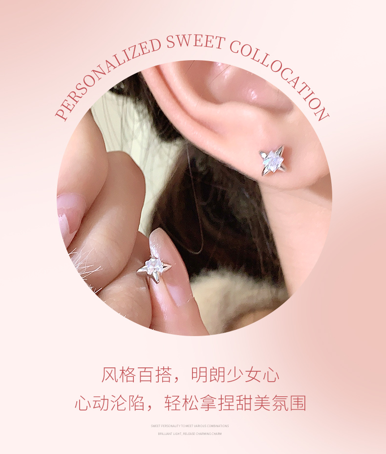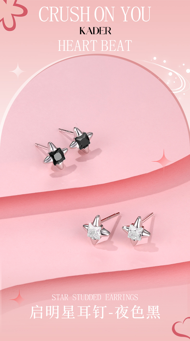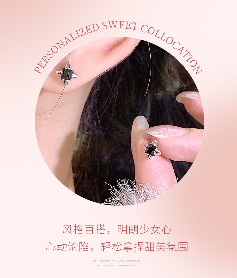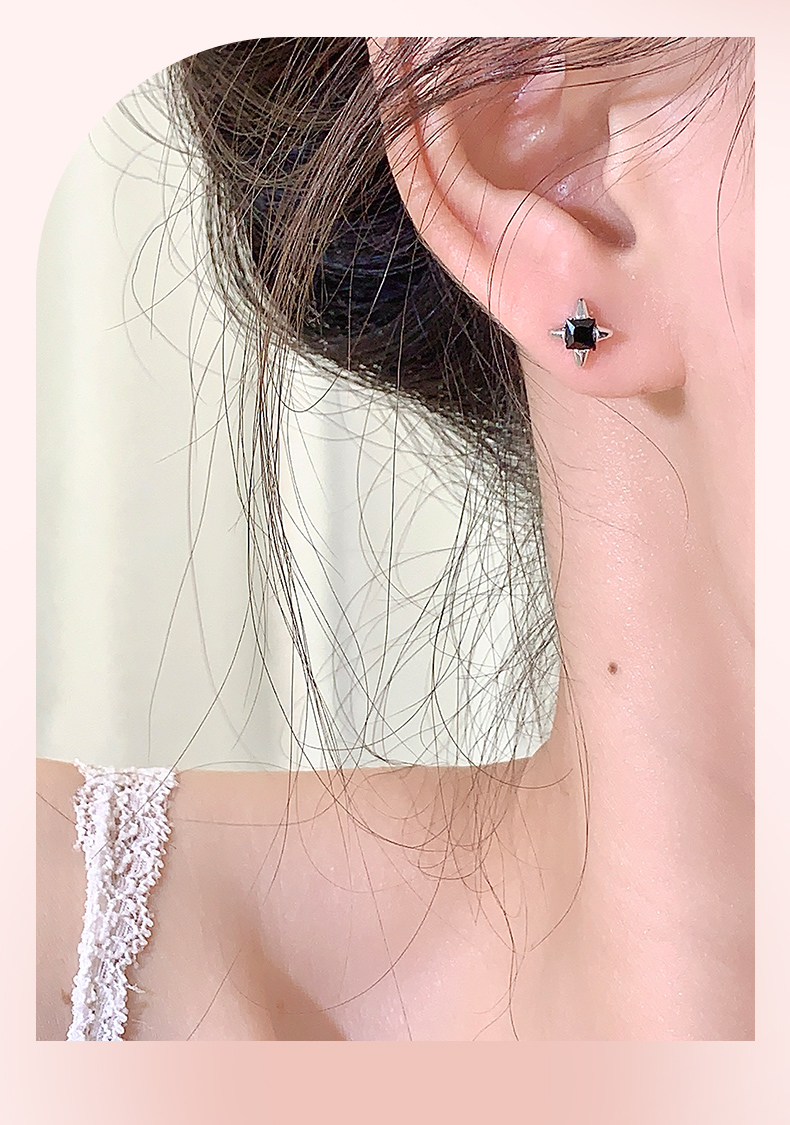 卡蒂罗/KADER 启明星耳钉 璀璨四芒星痞帅气质高街冷淡风纯银耳饰 甜酷个性大颗黑宝石原创设计亚比穿搭