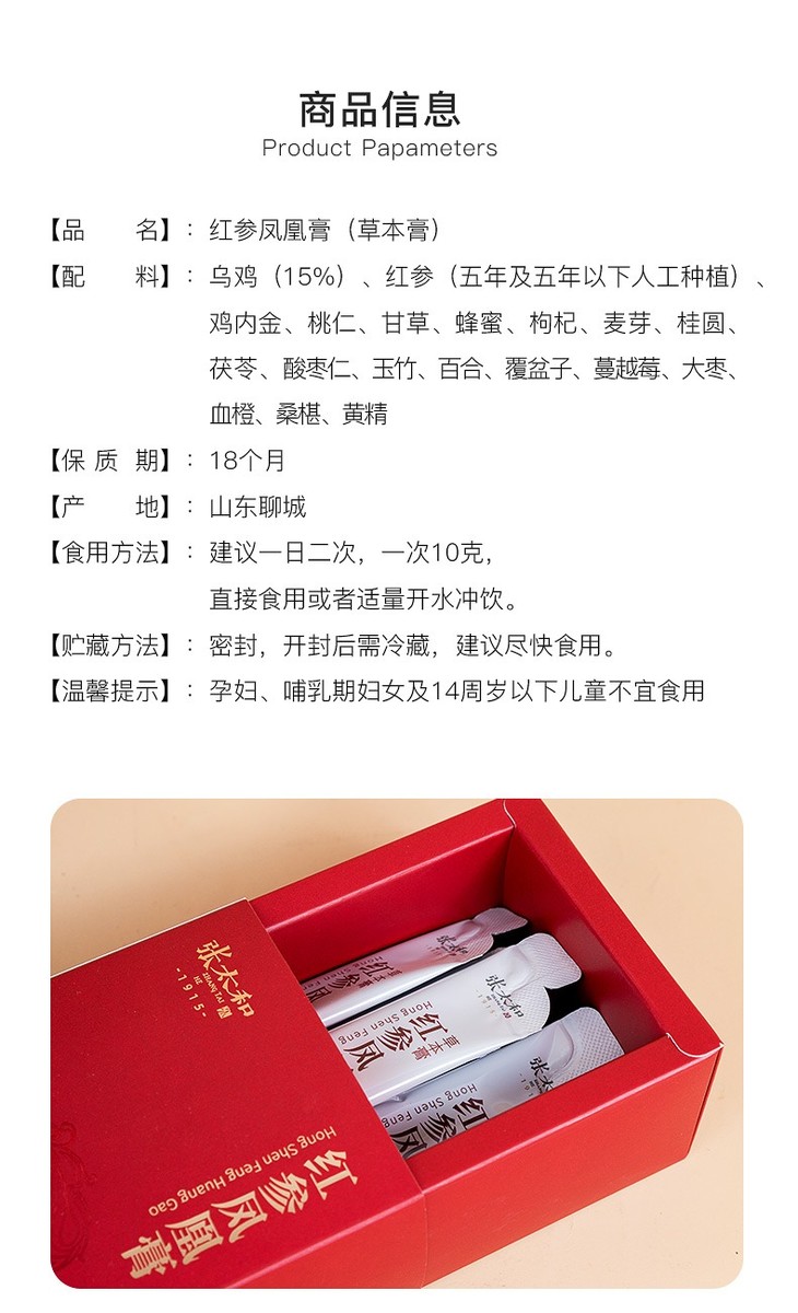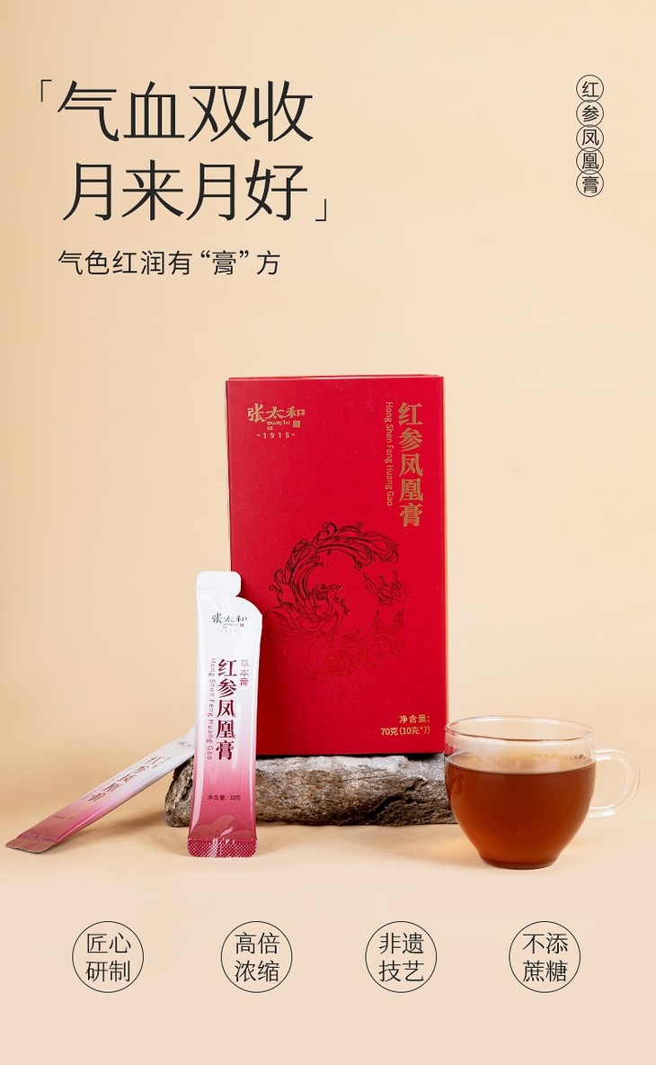 张太和红参凤凰膏 乌鸡人参膏滋补礼盒 70g/盒 10g*7条/盒