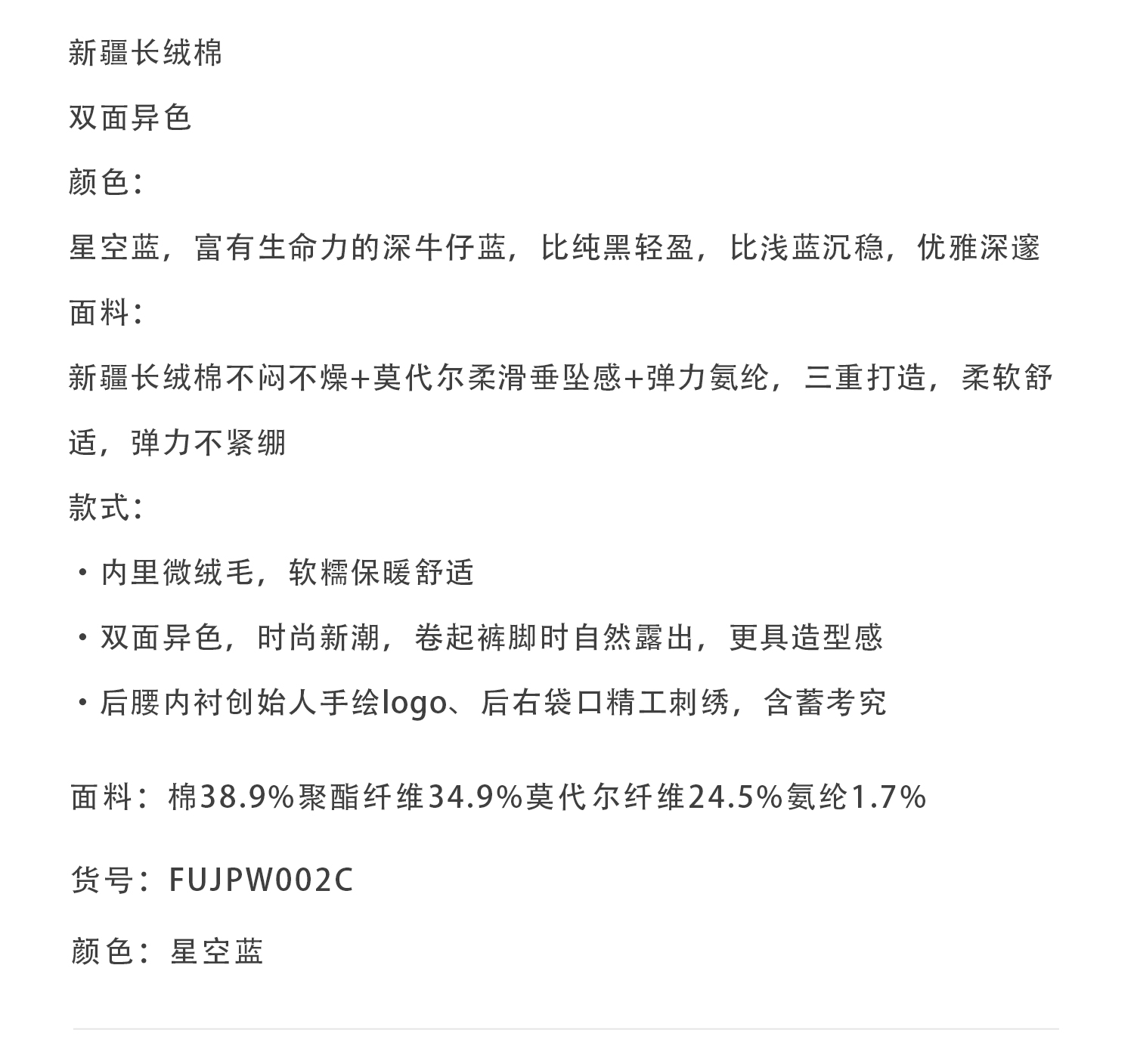 callisto星空蓝长绒棉牛仔裤