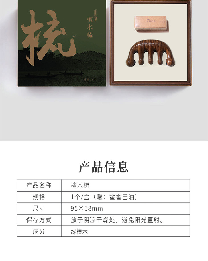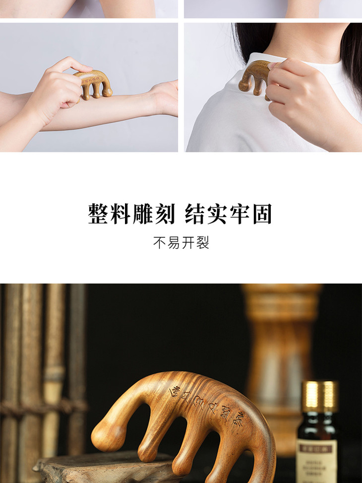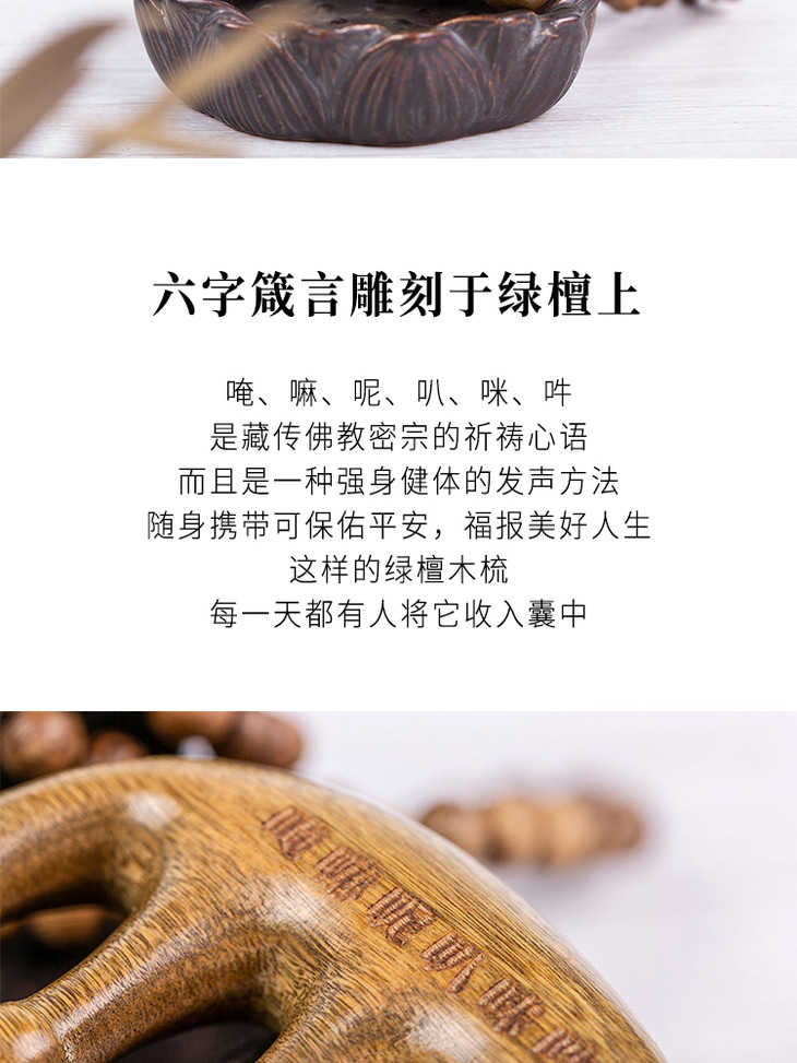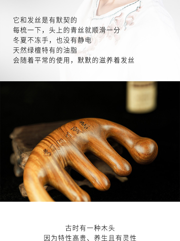 檀木梳 绿檀木整木制作点穴头颈经络按摩木梳