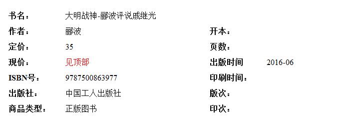 戚继光回答说:“儿当求增,何敢轻用。”( 《戚少保年谱耆编》)
