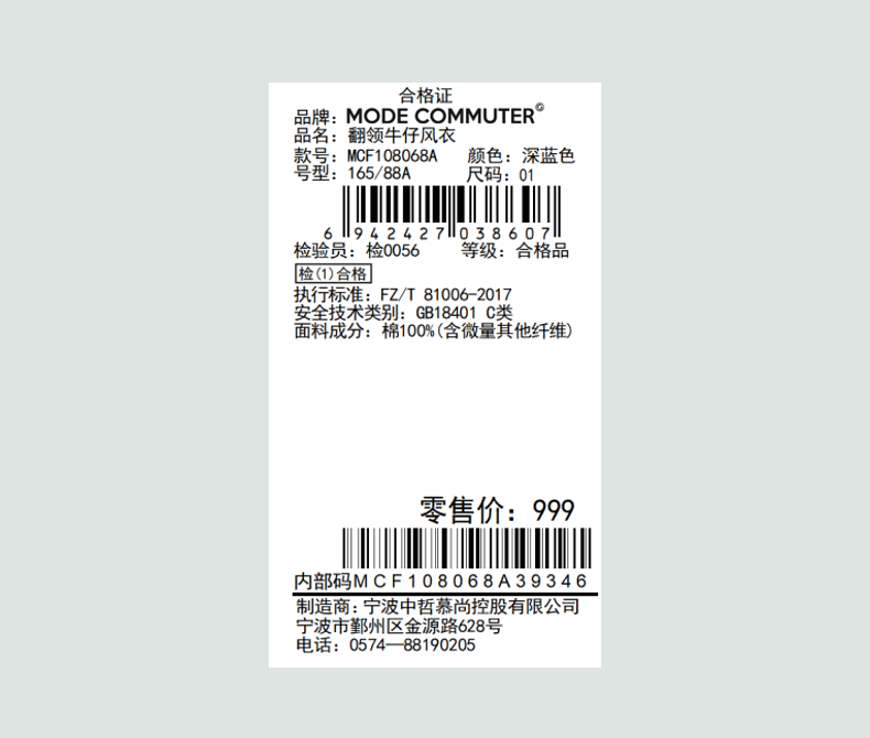 MODE COMMUTER | MC翻领牛仔风衣原牛牛仔风衣MCF108068A