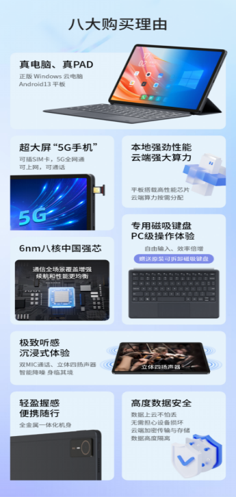 【权益包含】平板+4核8G云电脑+休闲娱乐网吧+移动高清电视+手机五合一功能+设备一套(含pad+磁吸键盘+鼠标+保护套)
