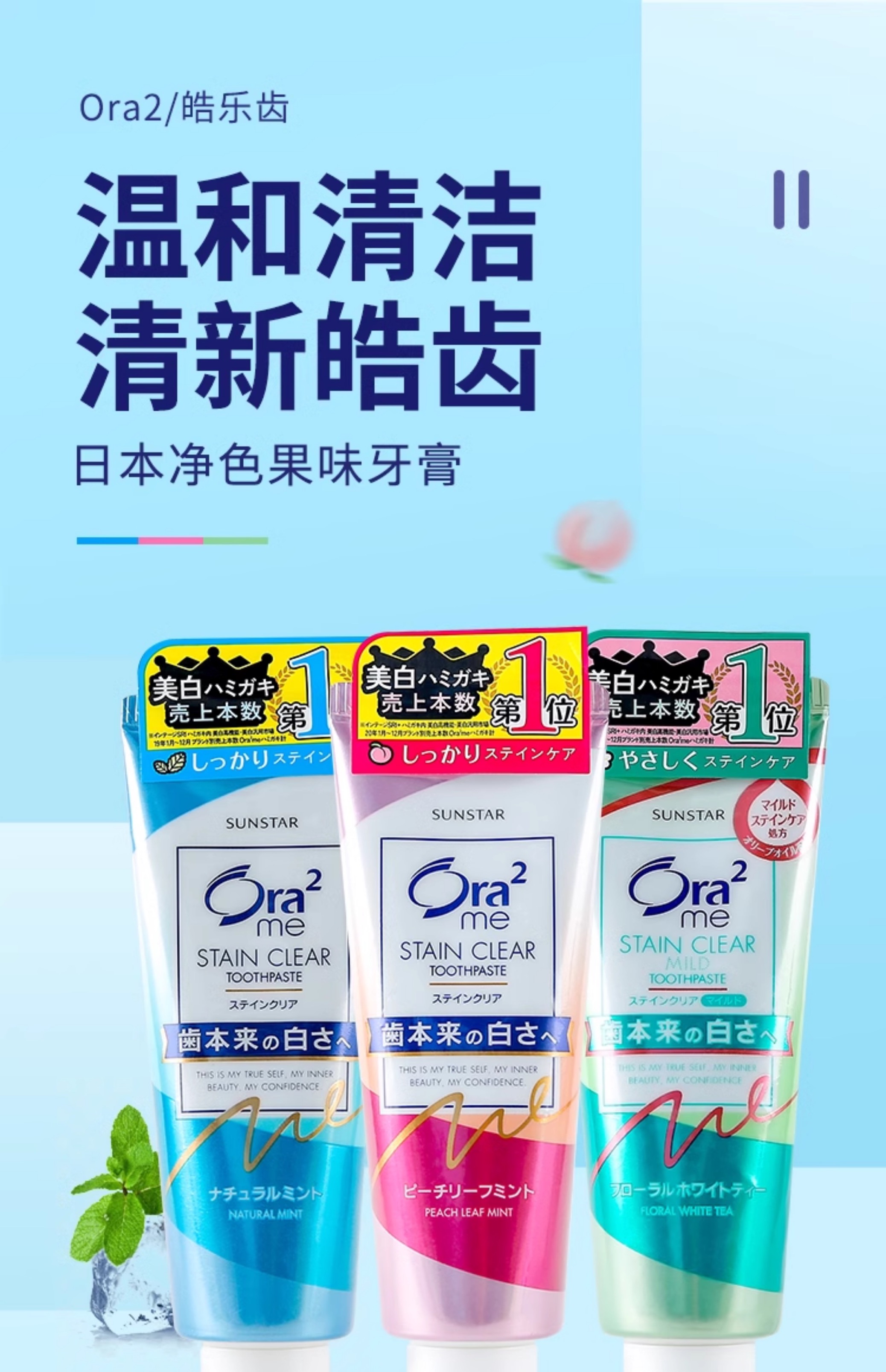 日本ora2皓乐齿牙膏含氟亮白净色净齿去黄去牙渍男女士专用去口臭130g