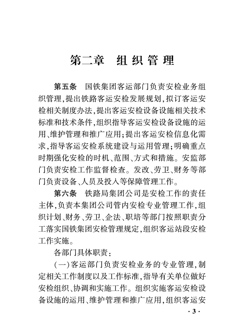 中国国家铁路集团有限公司发布《铁路旅客运输安全检查管理规则》(铁客[2022]124号),本规则适用于国家铁路以及委托铁路局集团公司运输管理的合资铁路和地方铁路的安检工作。本规则所称安检是指所属铁路运输企业在客运车站、旅客列车对旅客和其他进站、乘车人员及其随身携带品、托运的行包快件进行禁止和限制物品检查的活动。 本规则自2022年10月15日起施行。前发《中国铁路总公司关于规范站车安检查获危险品存放和处理的通知》(铁总公安电﹝2018﹞37号)、《关于严格落实禁止和限制携带品目录的通知》(客管电〔2019〕92号)、《关于规范旅客安检查危查获物品管理的通知》(铁客电〔2019〕7号)同时废止。