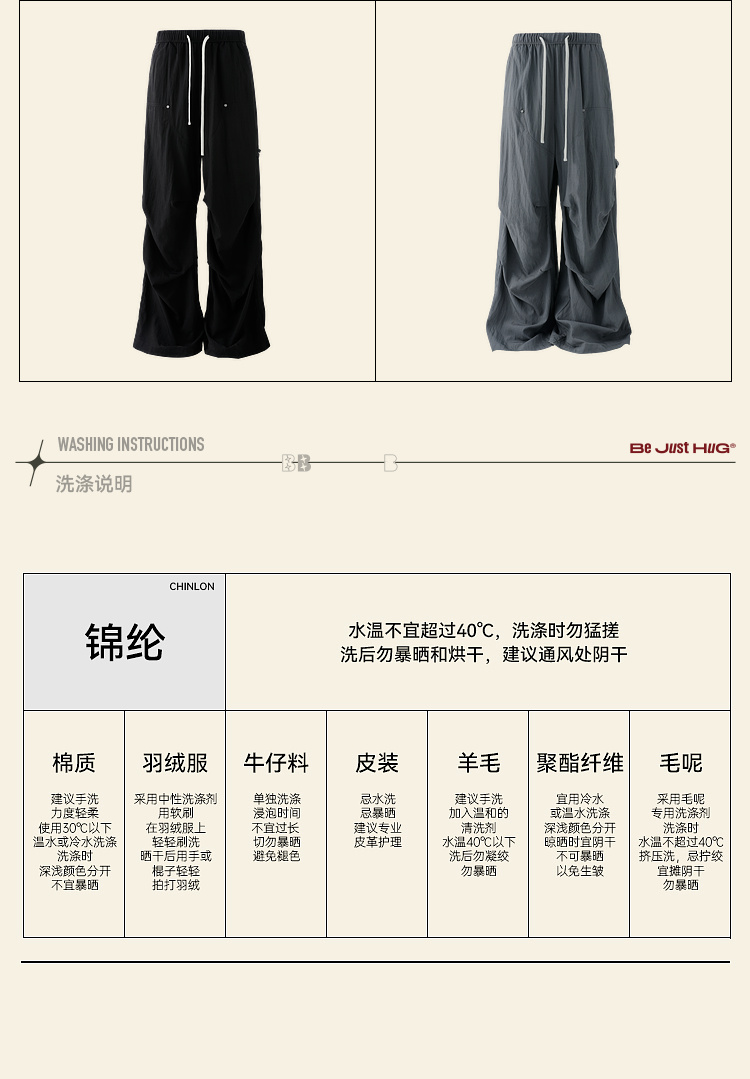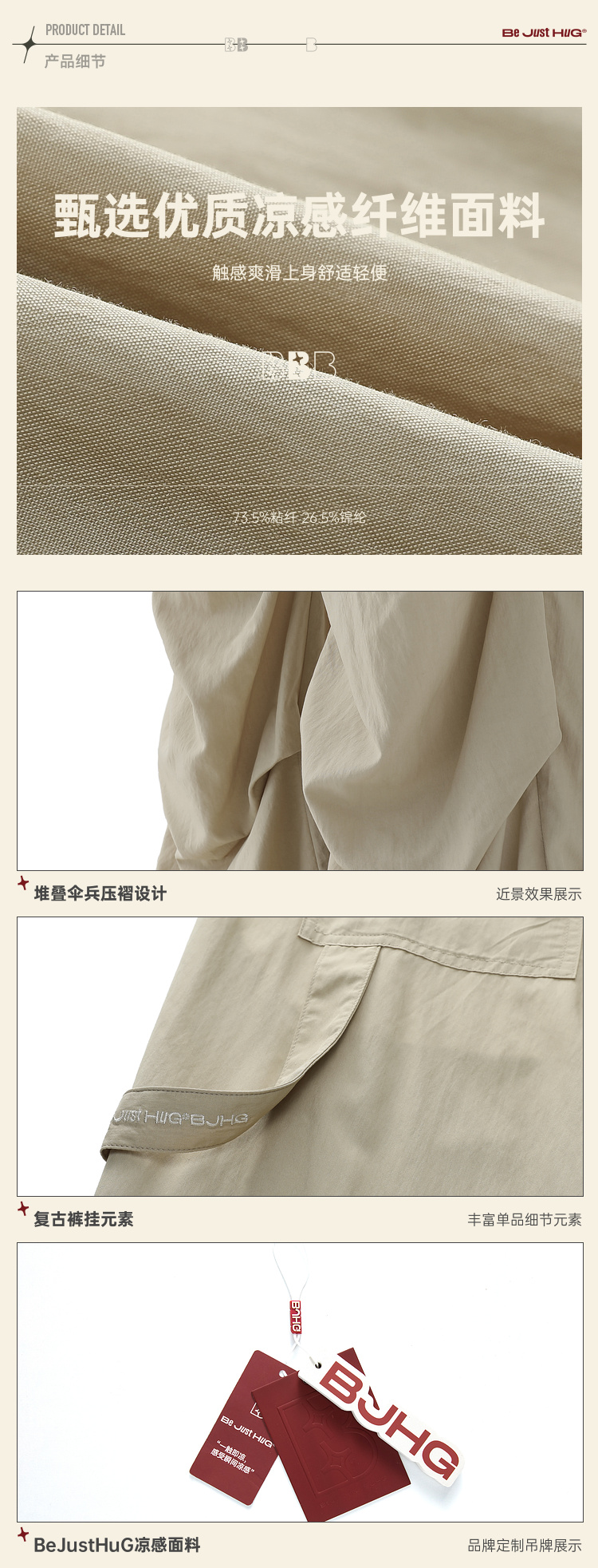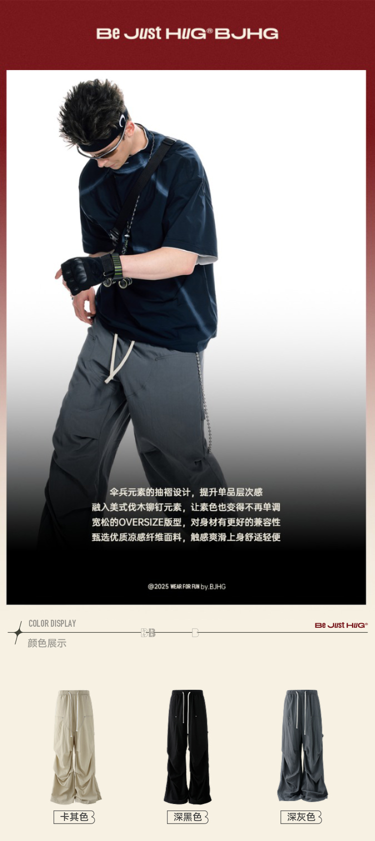 BJHG不计后果美式凉感伞兵工装裤男款夏季新品阔腿轻薄垂感运动裤