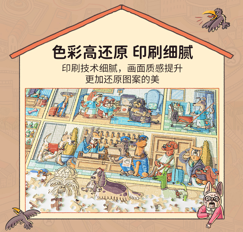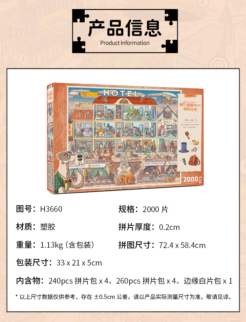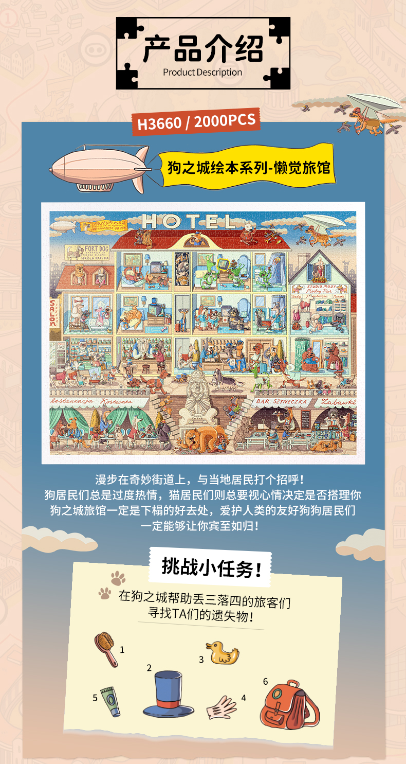 【折扣商品 不退不换】2000片 平面塑料拼图 H3660 Nikola Kucharska-狗之城绘本系列-懒觉旅馆