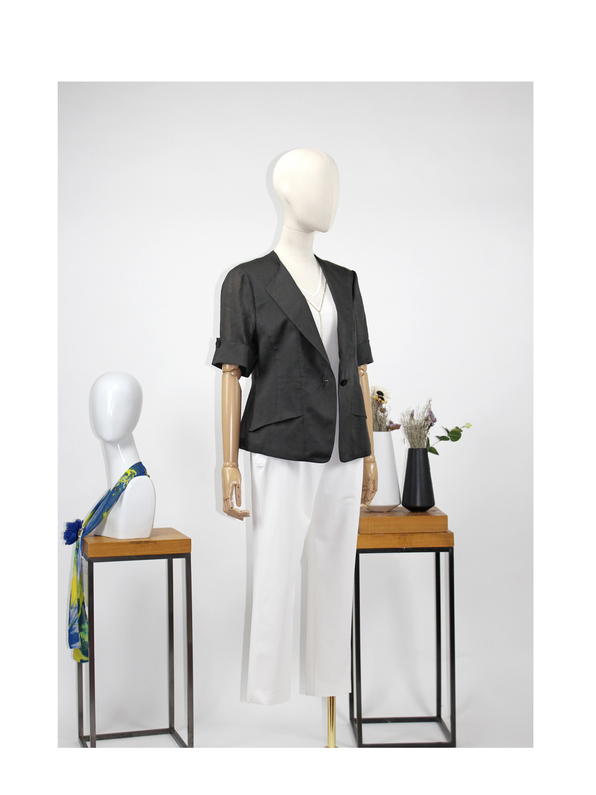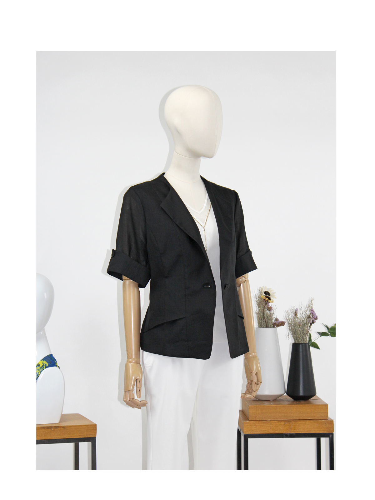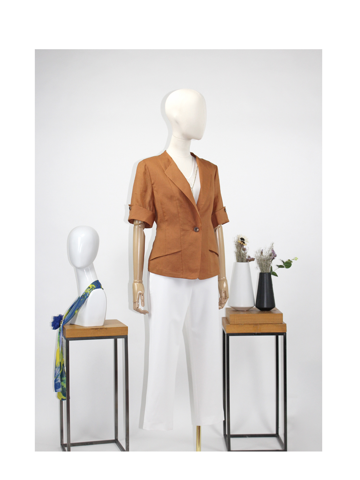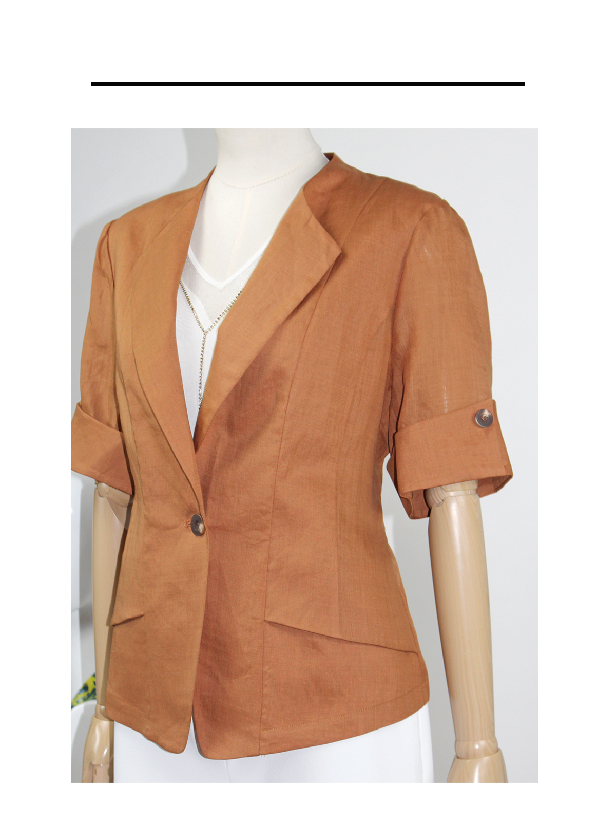 FOCALS福柯斯夏季新款半袖一粒扣纯色修身休闲西服外套FRRBB176