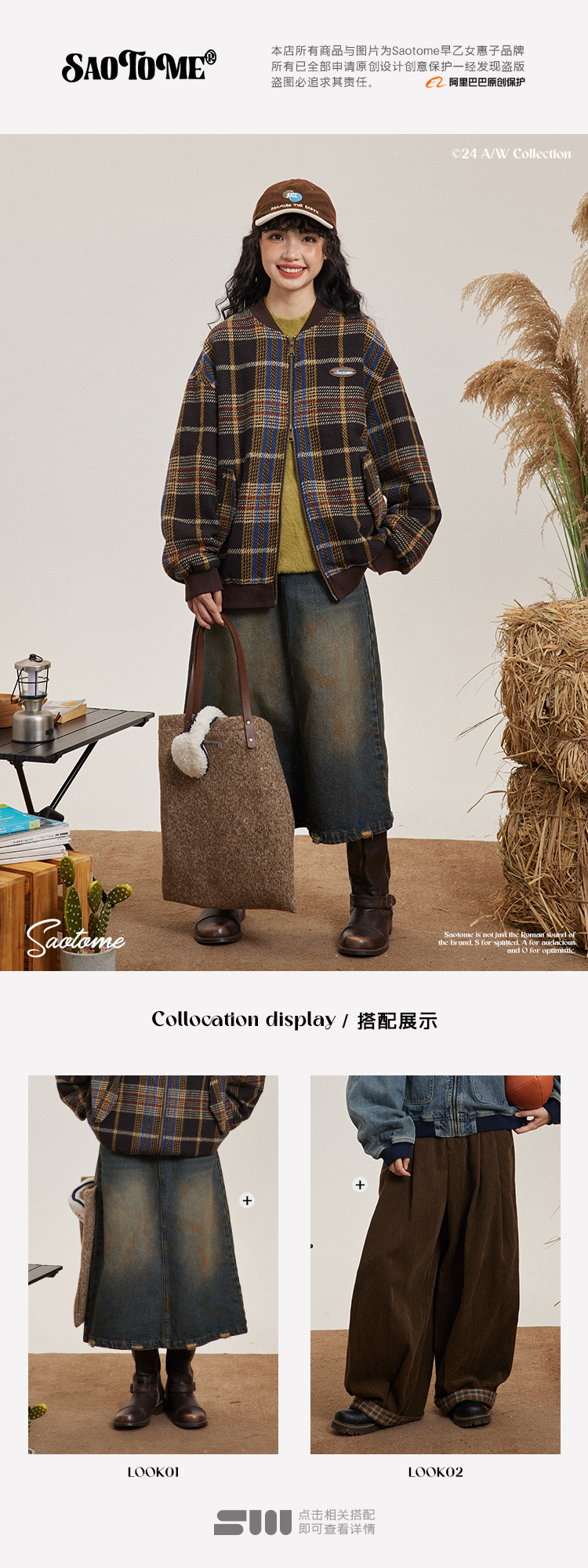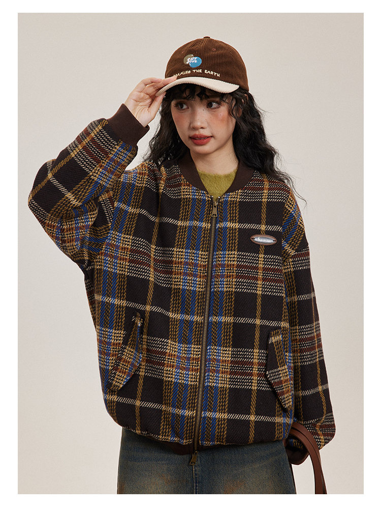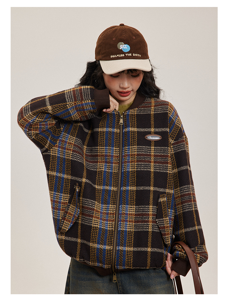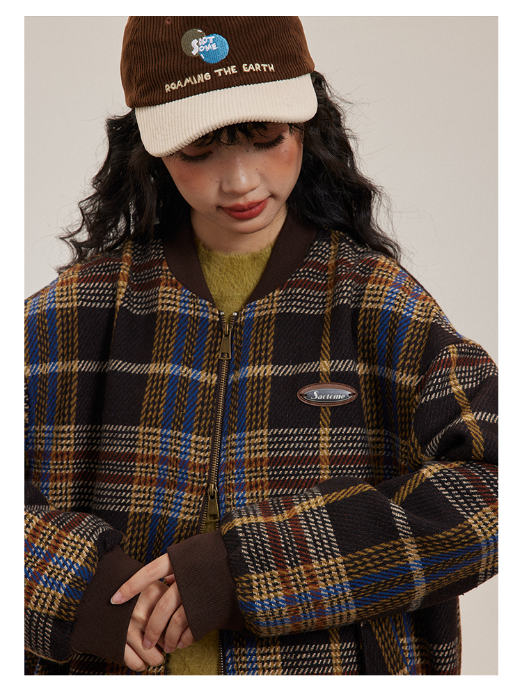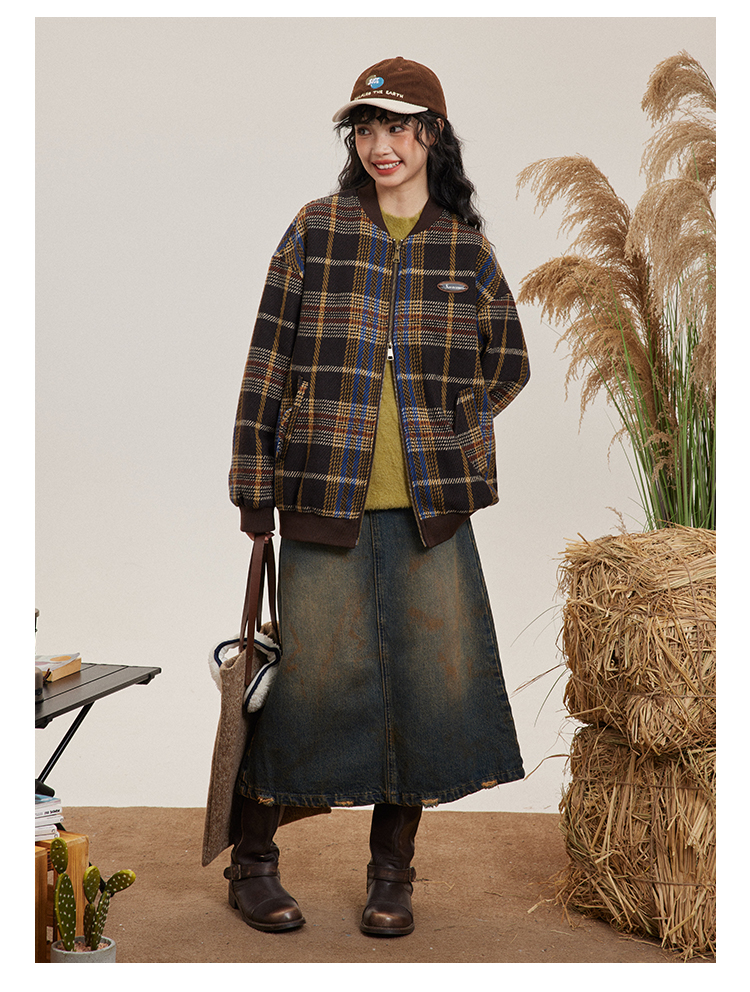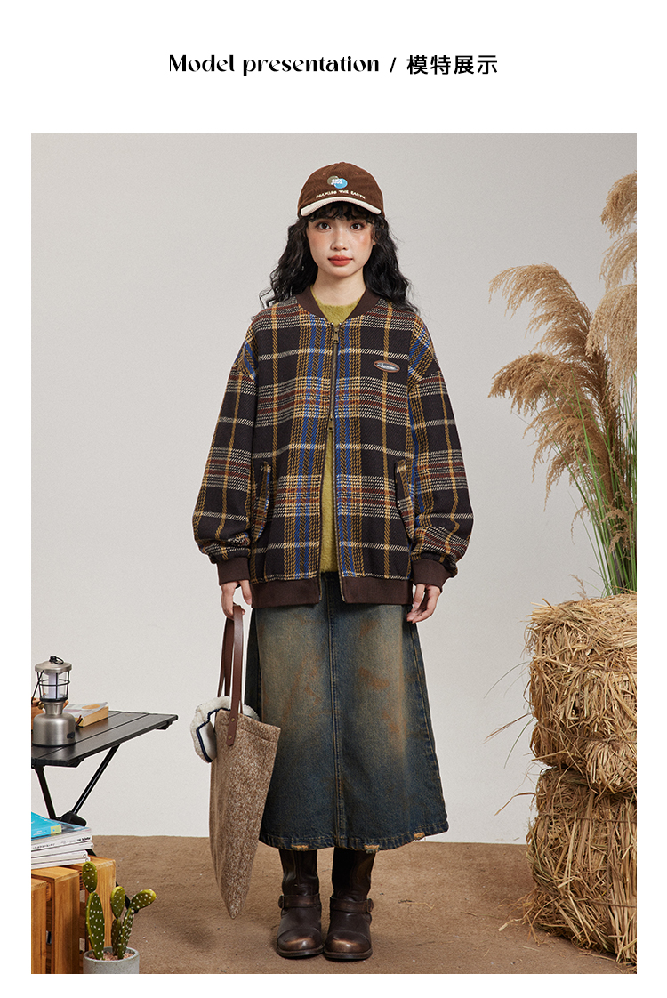 早乙女惠子saotome/STMWT243247/复古格纹棒球服夹克