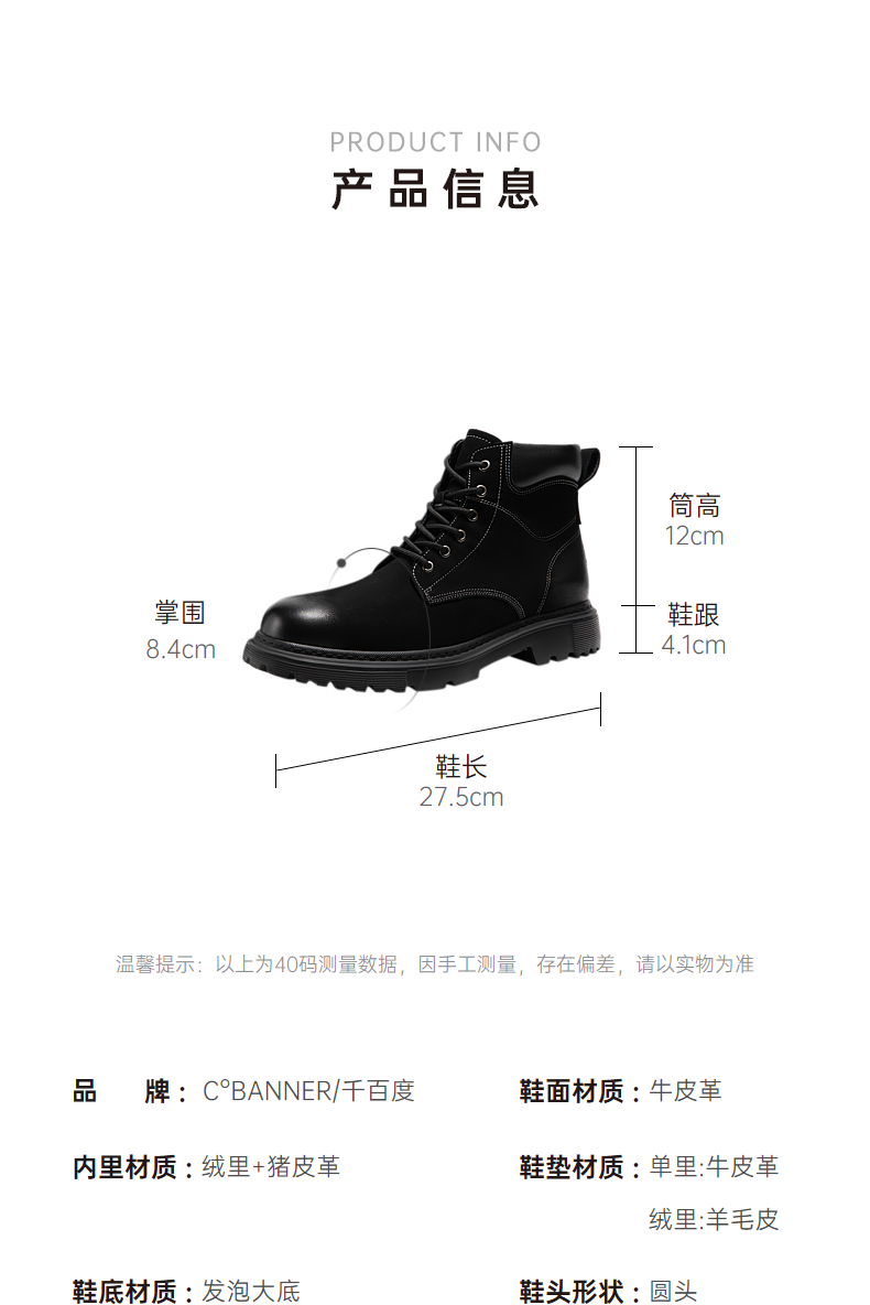 千百度 冬季 马丁靴 A24646296