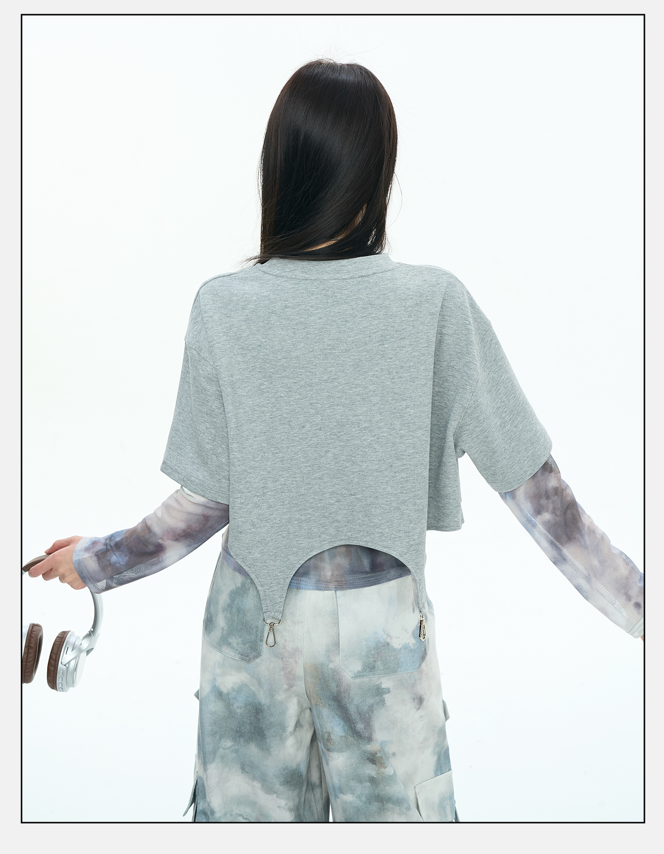 P&X设计师女装2025秋季T恤套头两件套短款上衣825315175X 灰色