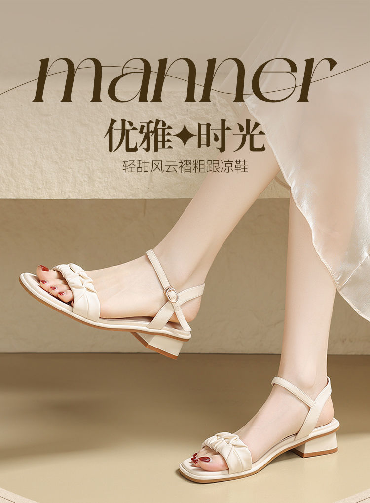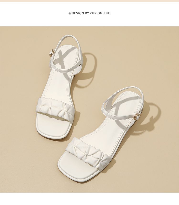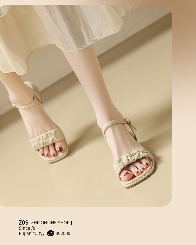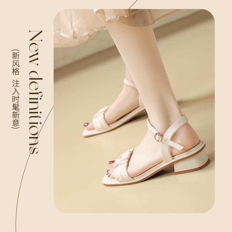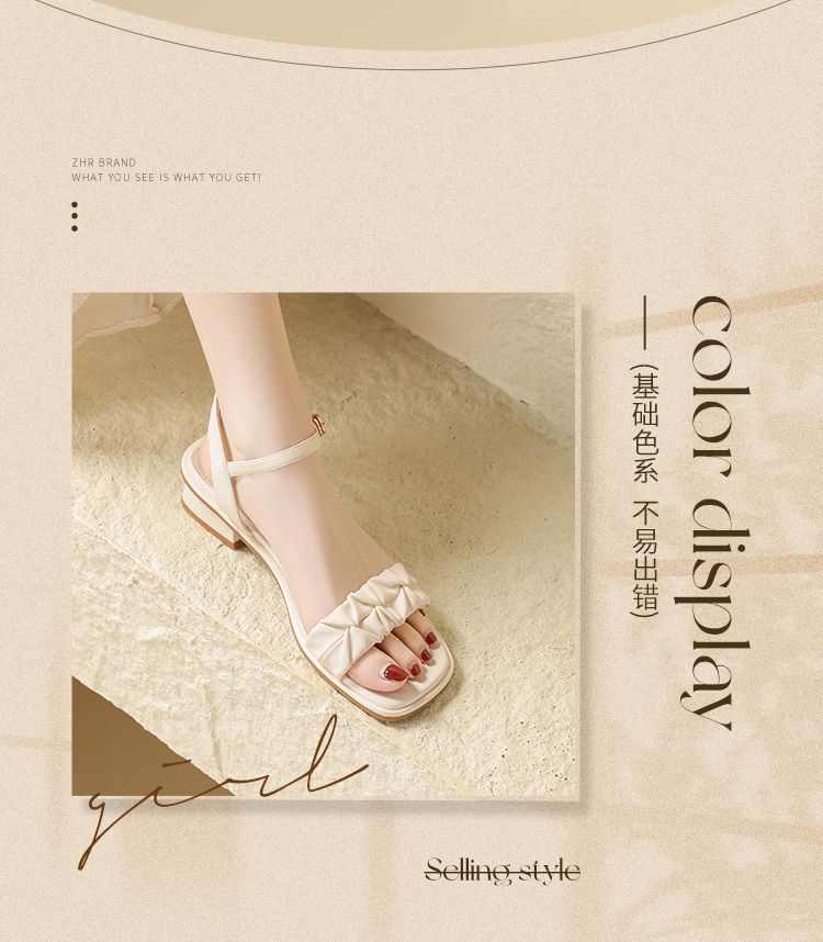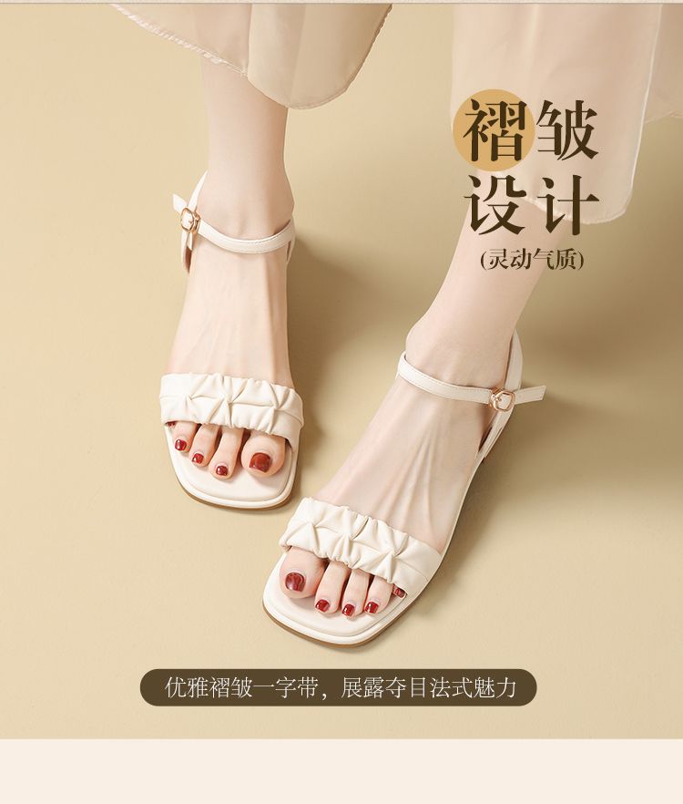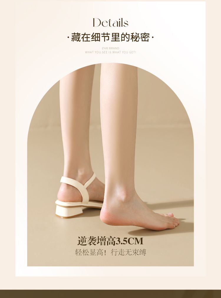 ZHR则则凉鞋女2024新款夏季一字带中跟鞋网红ins公主风粗跟凉鞋女