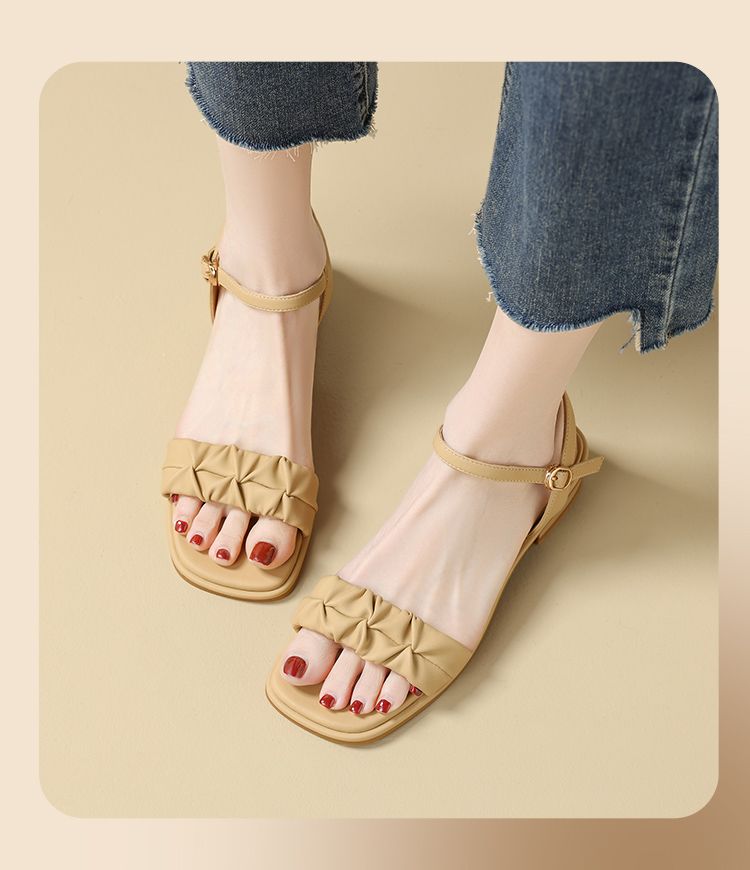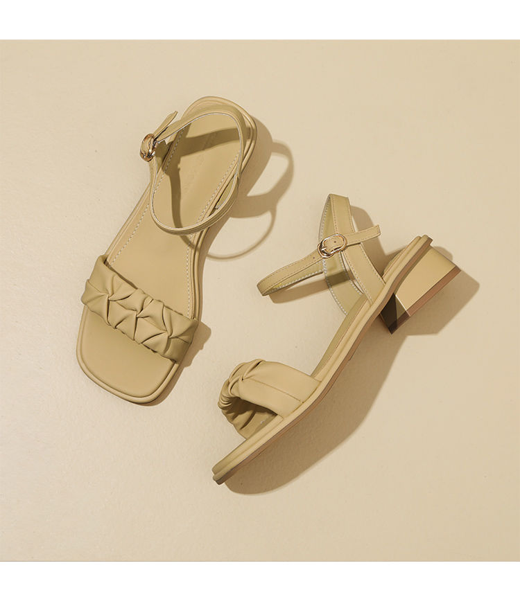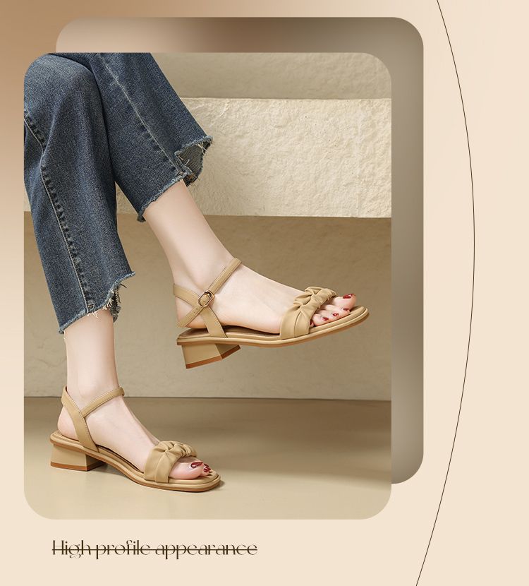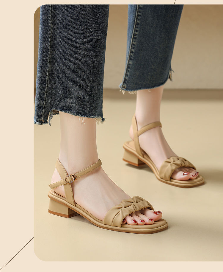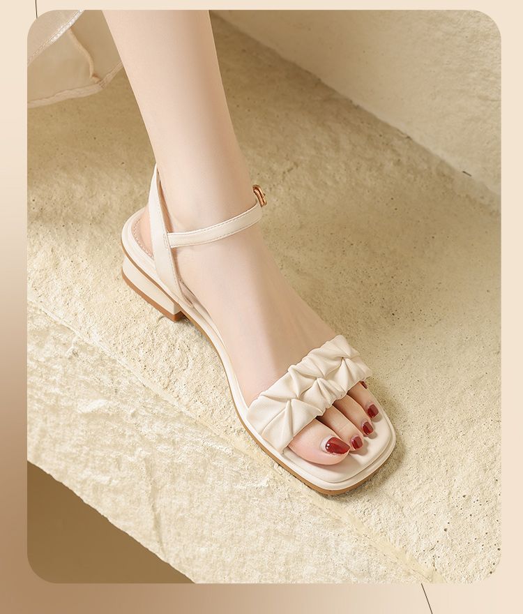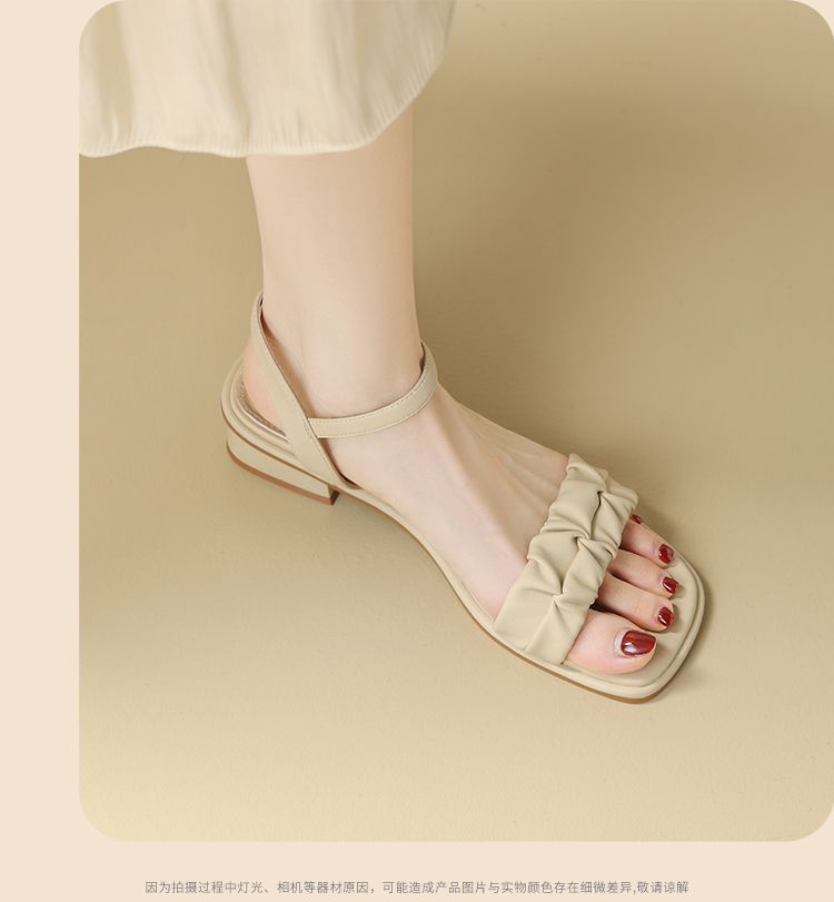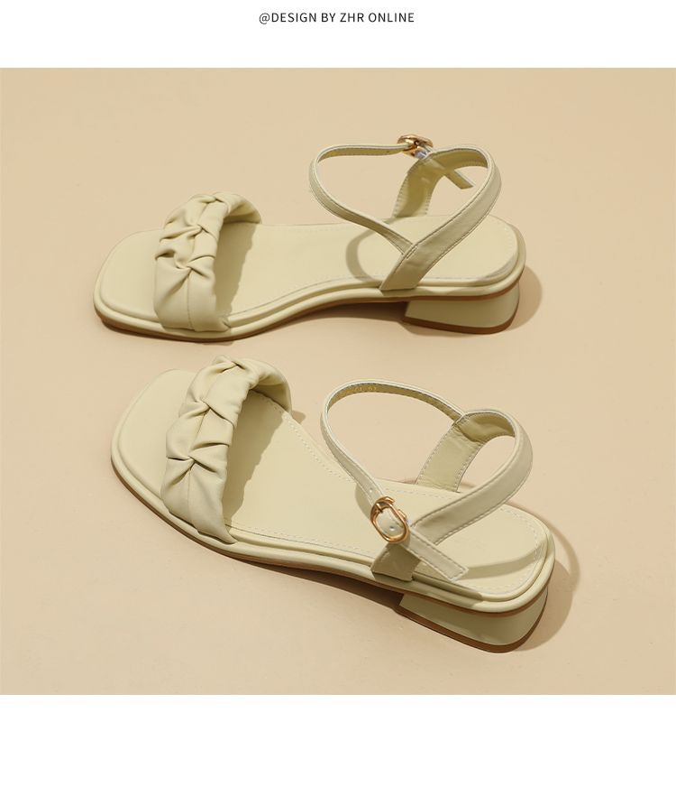 ZHR则则凉鞋女2024新款夏季一字带中跟鞋网红ins公主风粗跟凉鞋女
