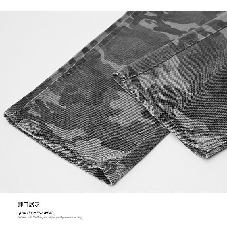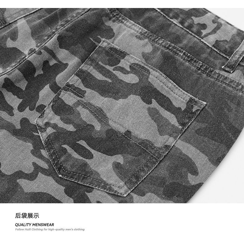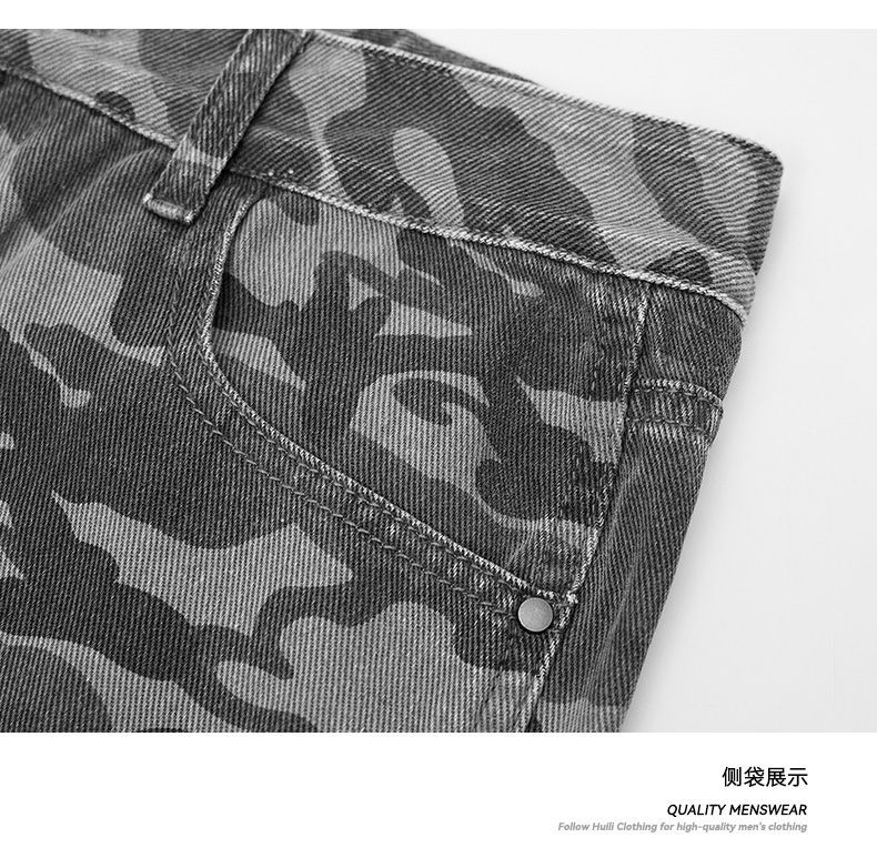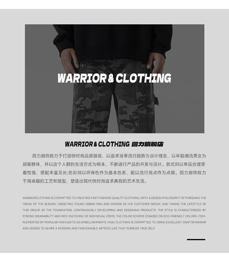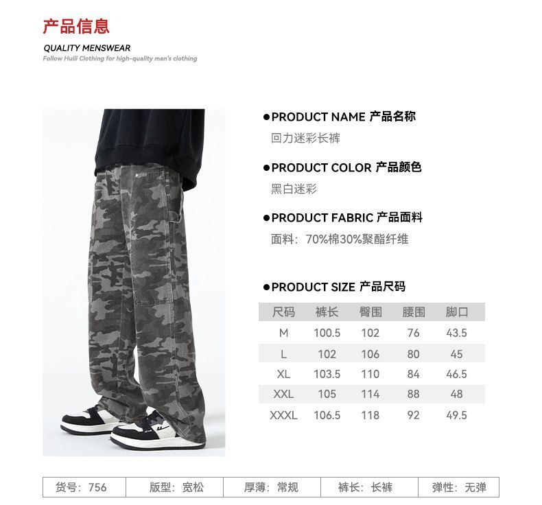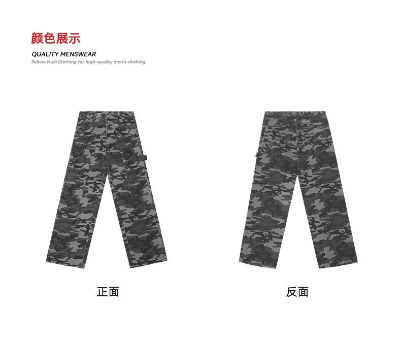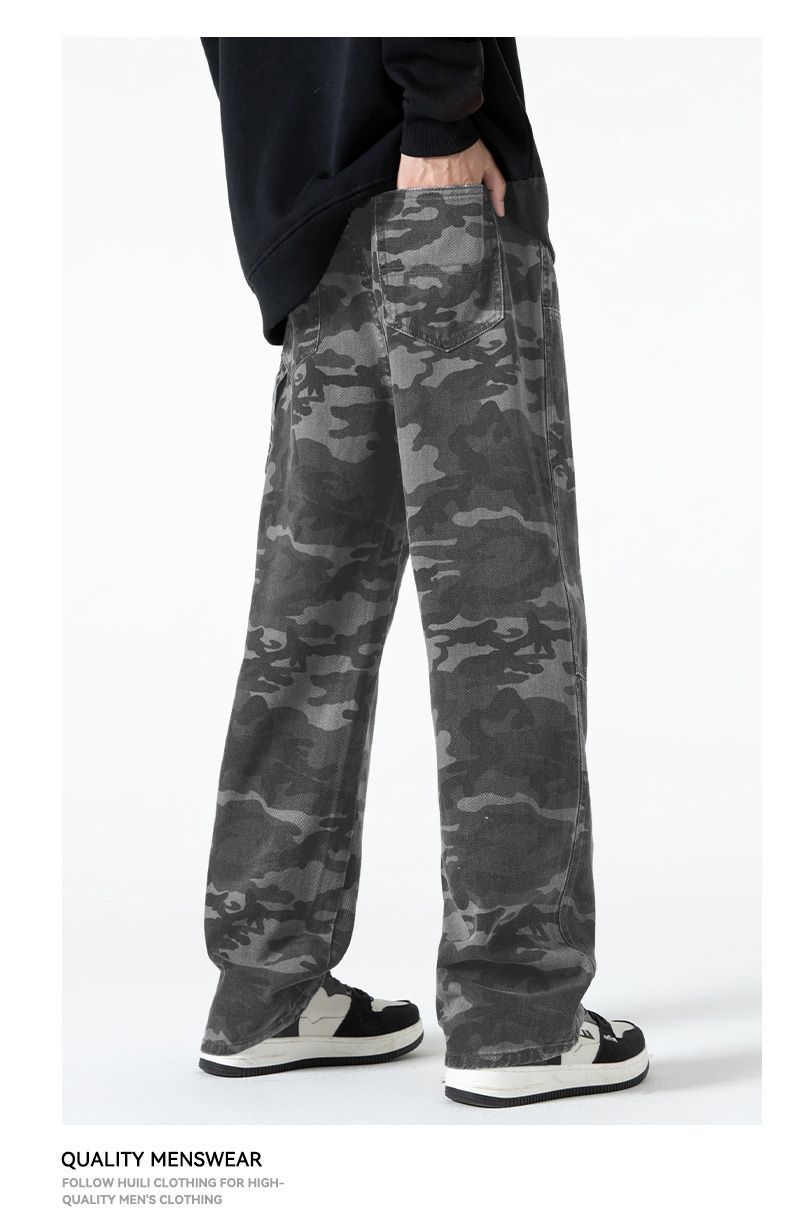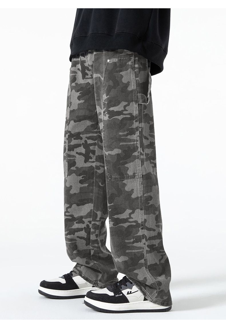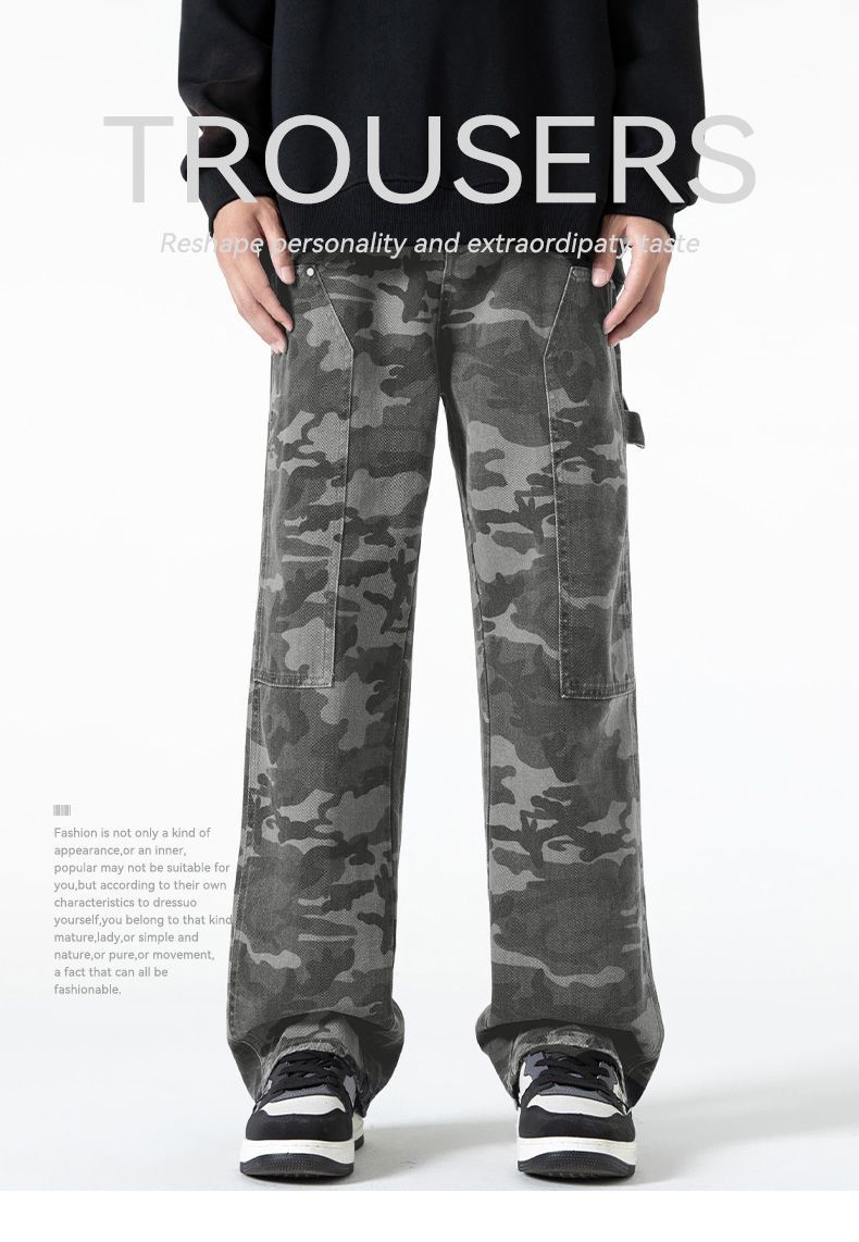 回力工装迷彩裤子男春秋季新款高街直筒美式风牛仔裤子宽松阔腿裤
