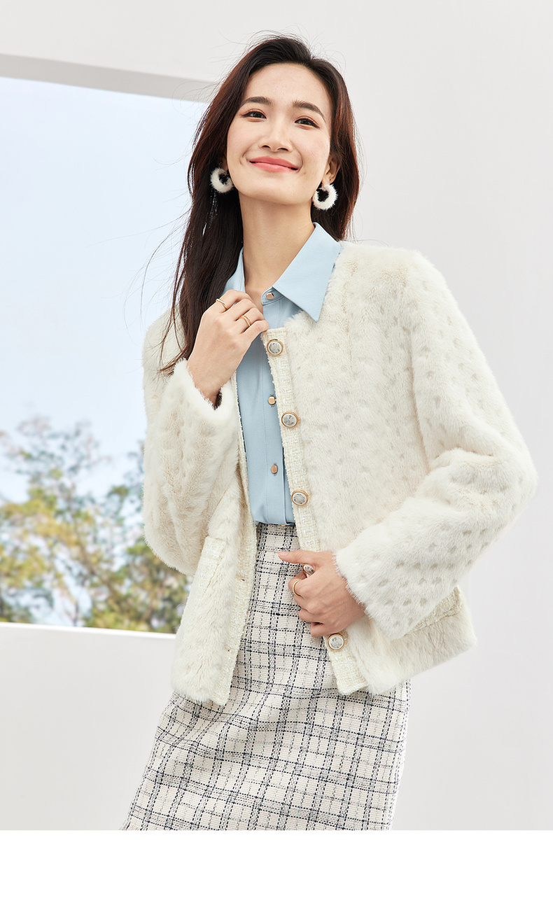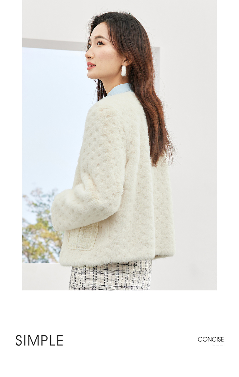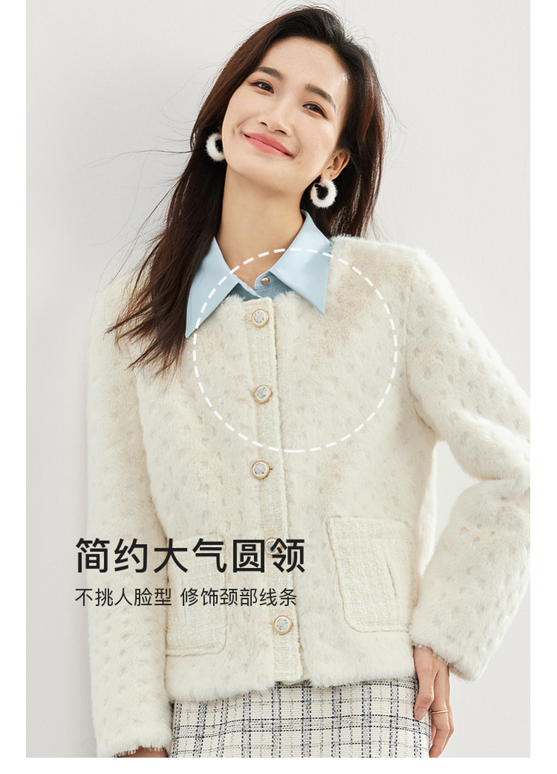 【内购】【保暖颗粒绒皮草】2024秋冬新百搭毛绒女外套短款小香风上衣-W54PB4902X